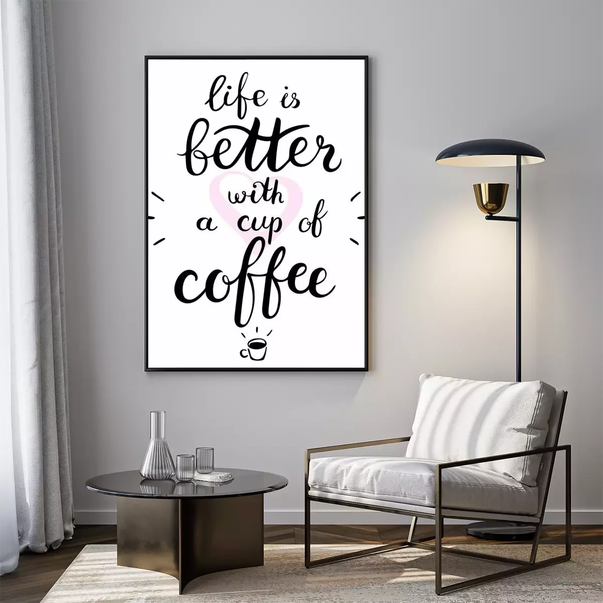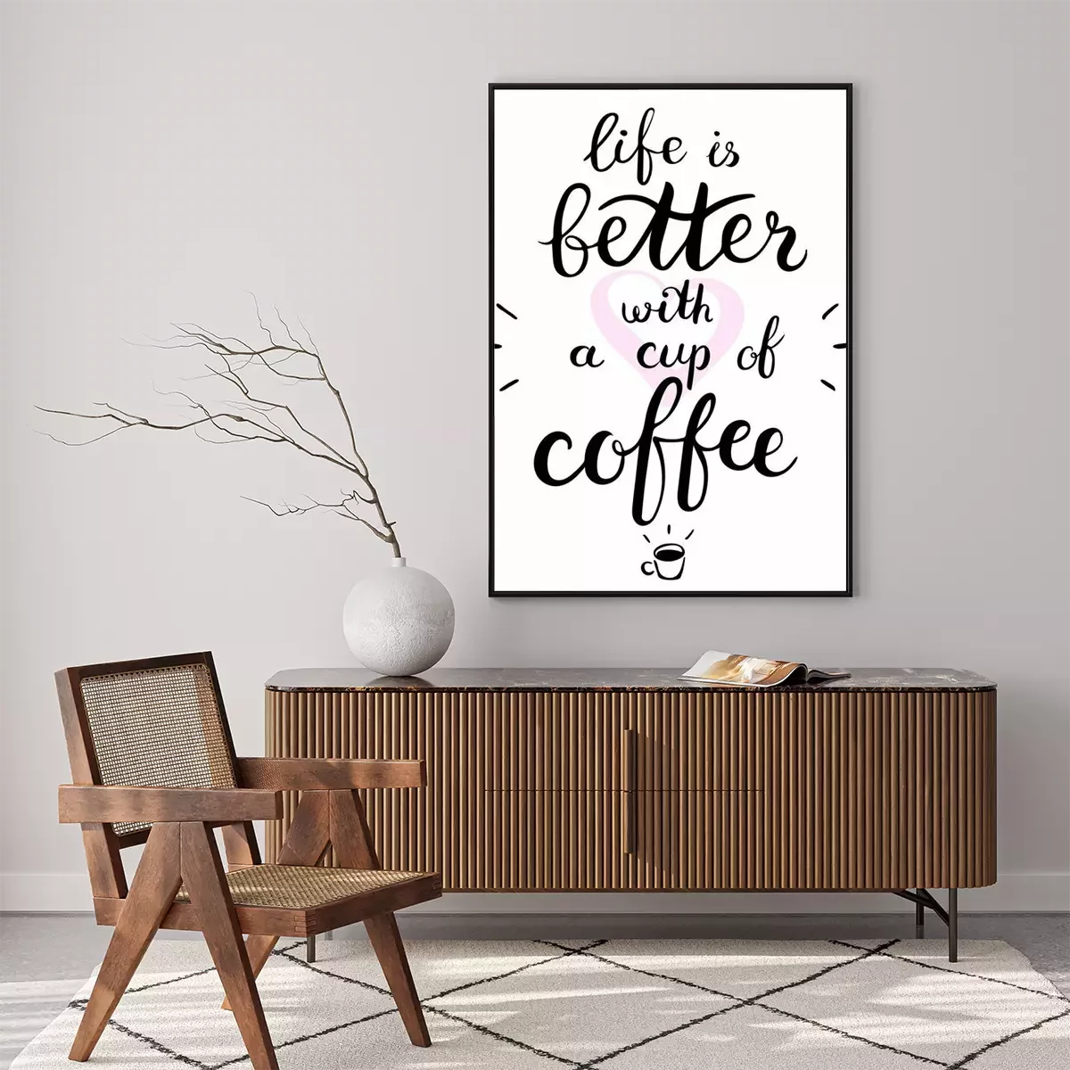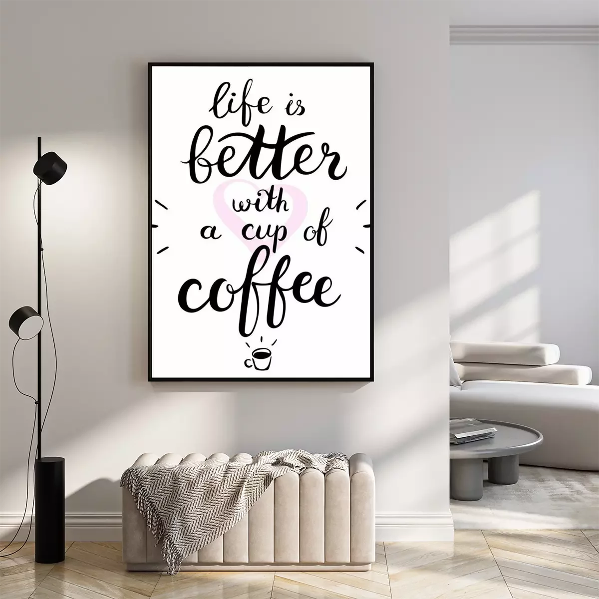 Poster  La vie est meilleure avec une tasse de texte de café. Brosse stylo lettrage. Illustration vectorielle