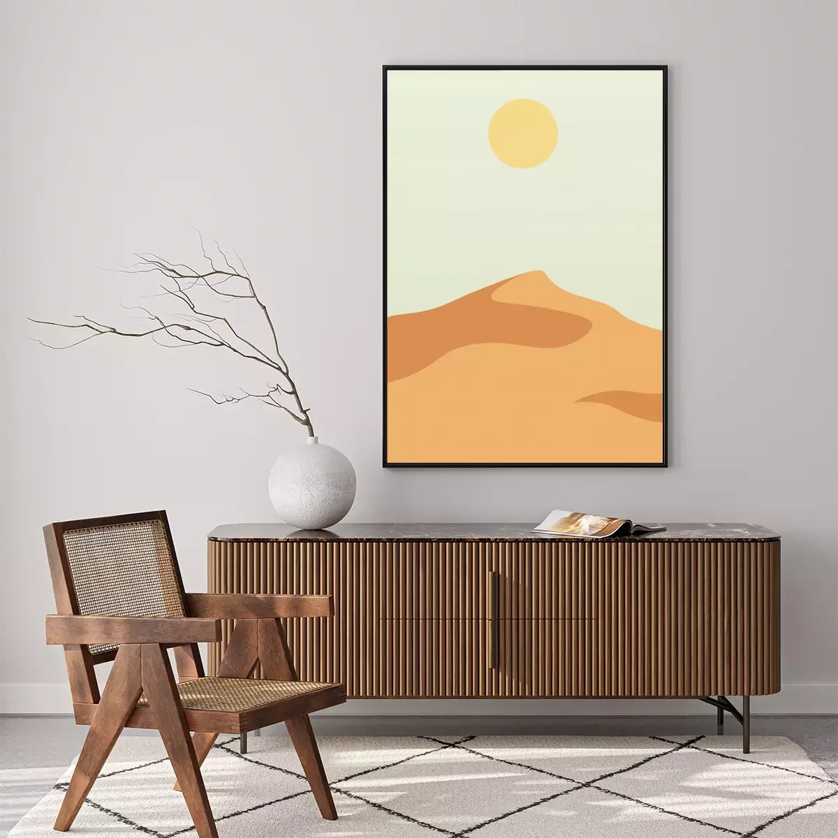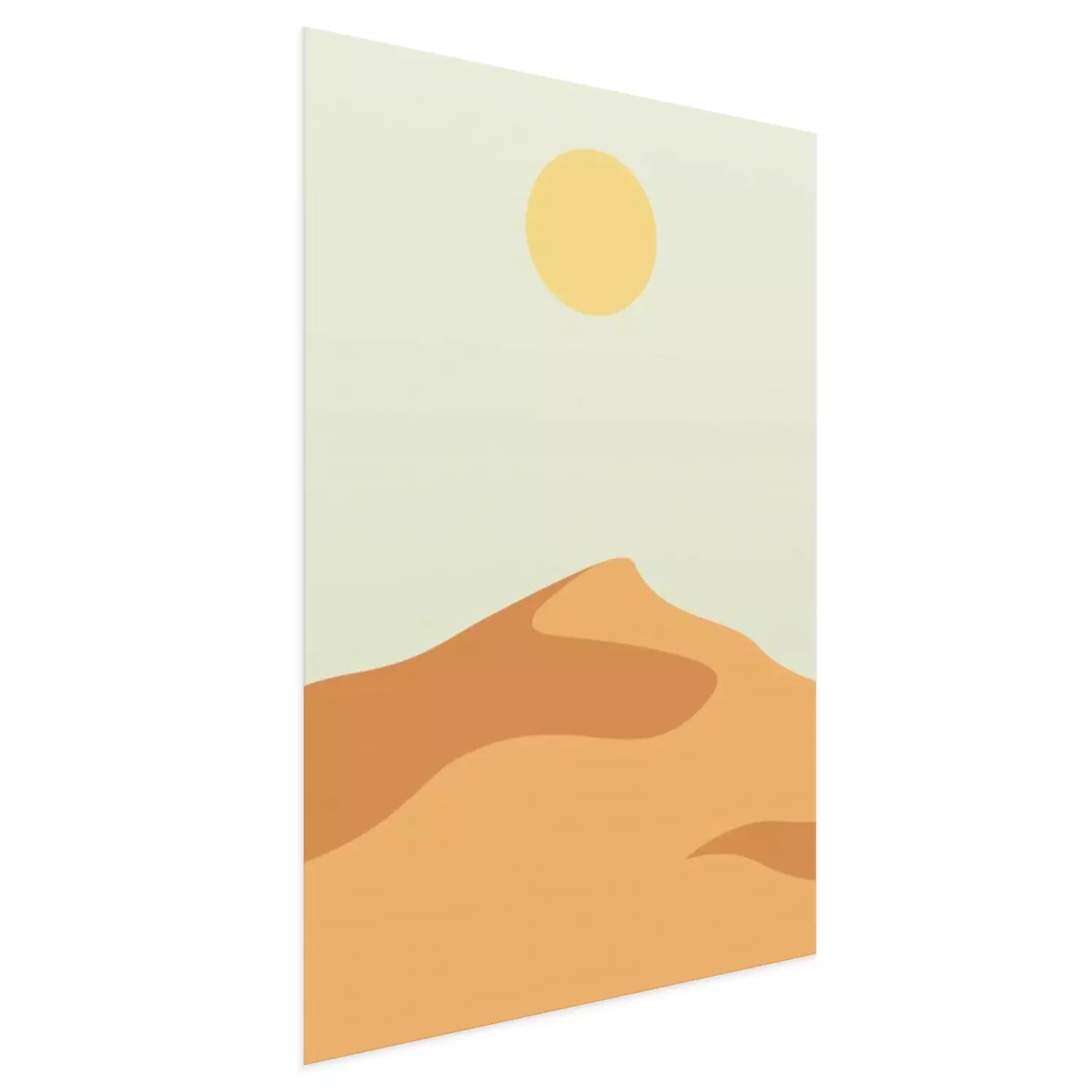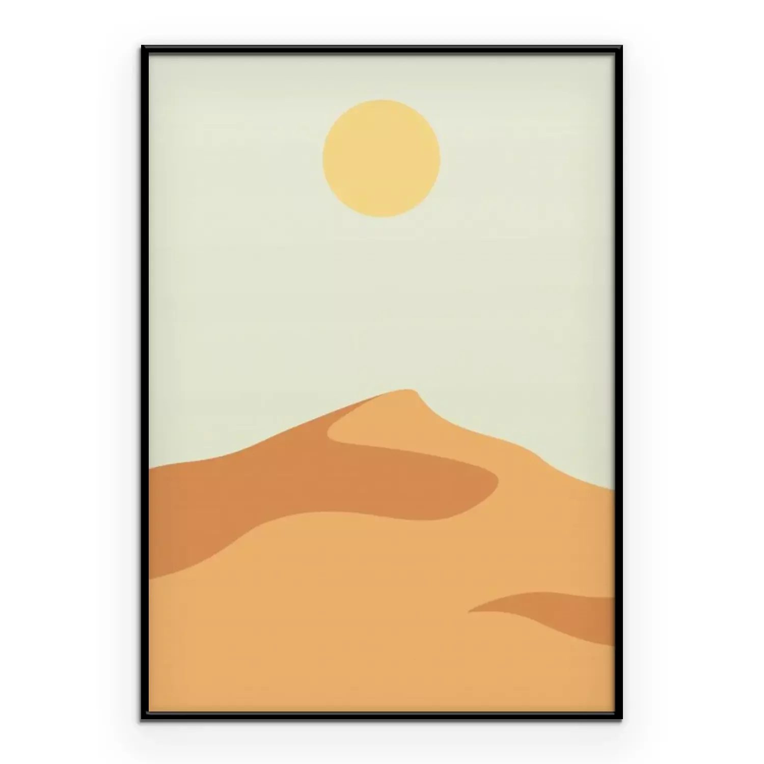 Poster  Landscape poster with desert sand hills. Nature abstract wavy shapes. Sunset backdrop. Vector illustration.