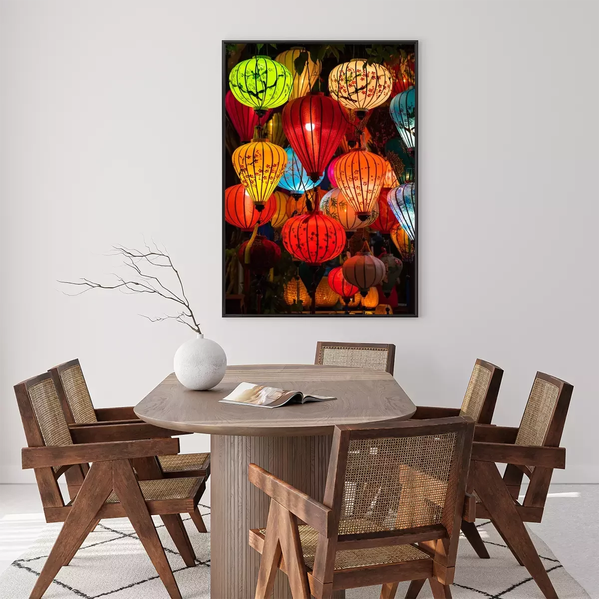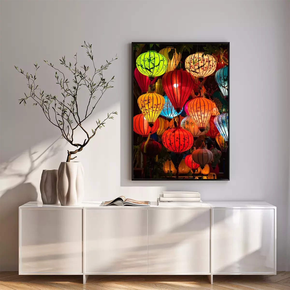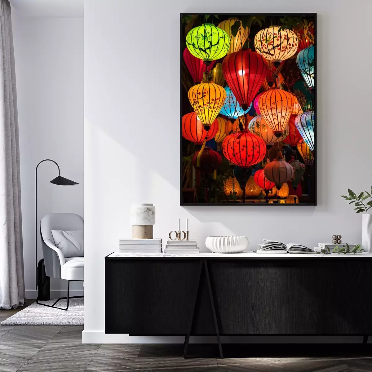 Colorful traditional Chinese lantern or light lamp to decorate street at night, there are famous things of Hoi An - the heritage ancient city of Vietnam.