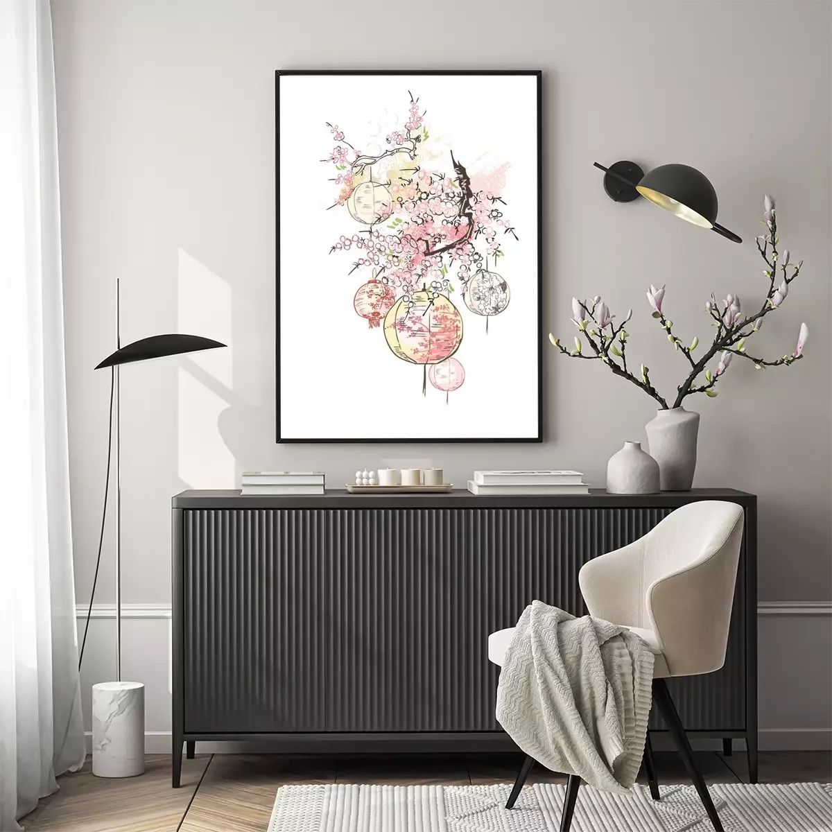 Poster : Lanternes en papier sur une branche