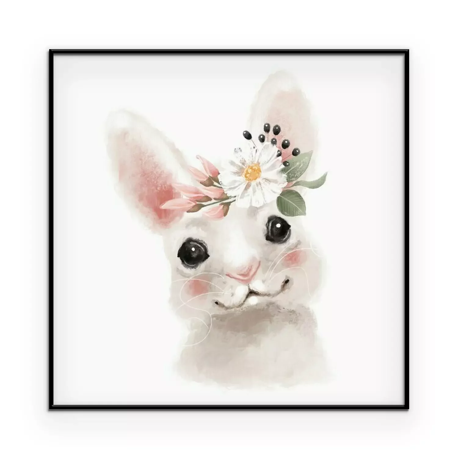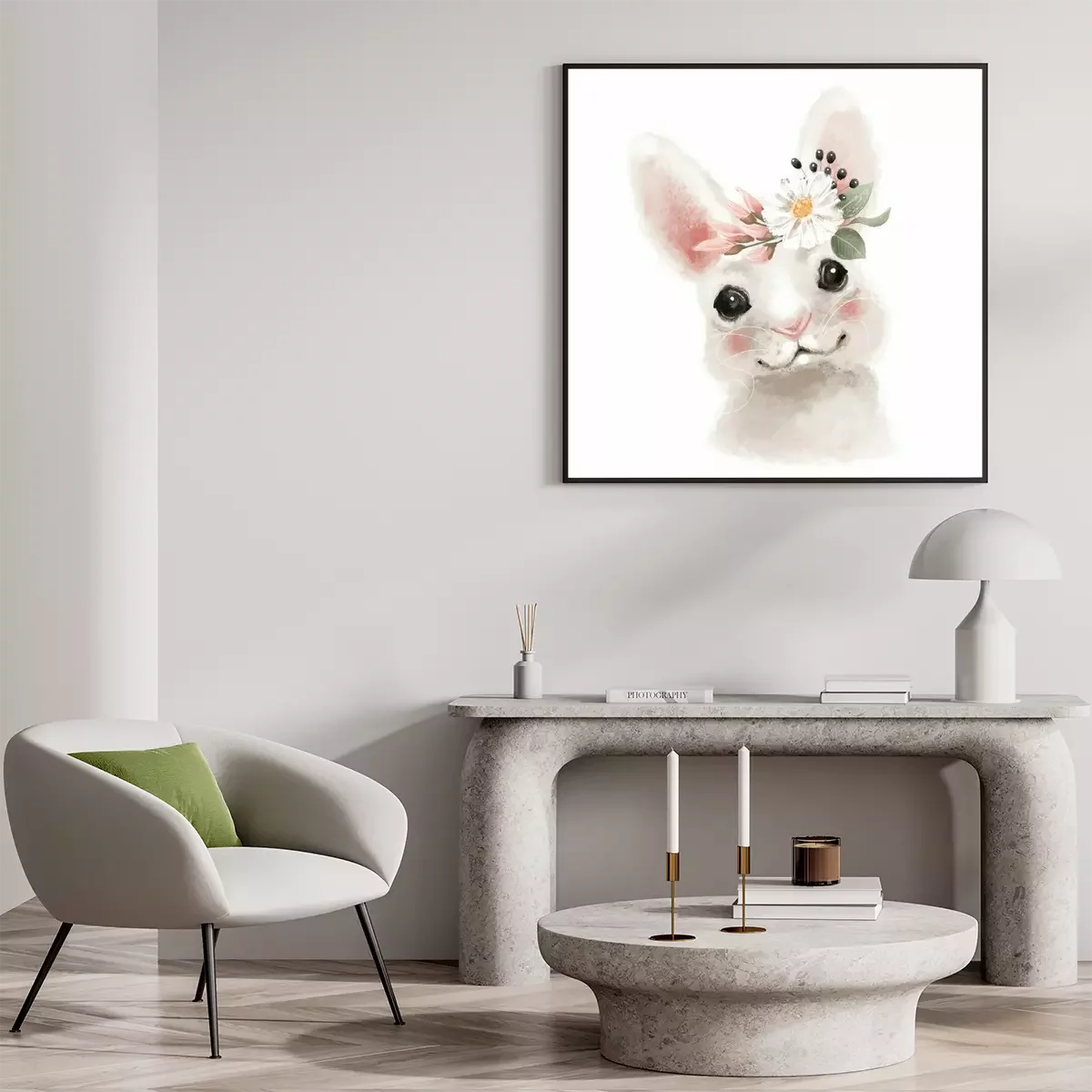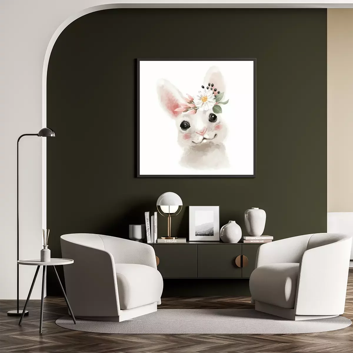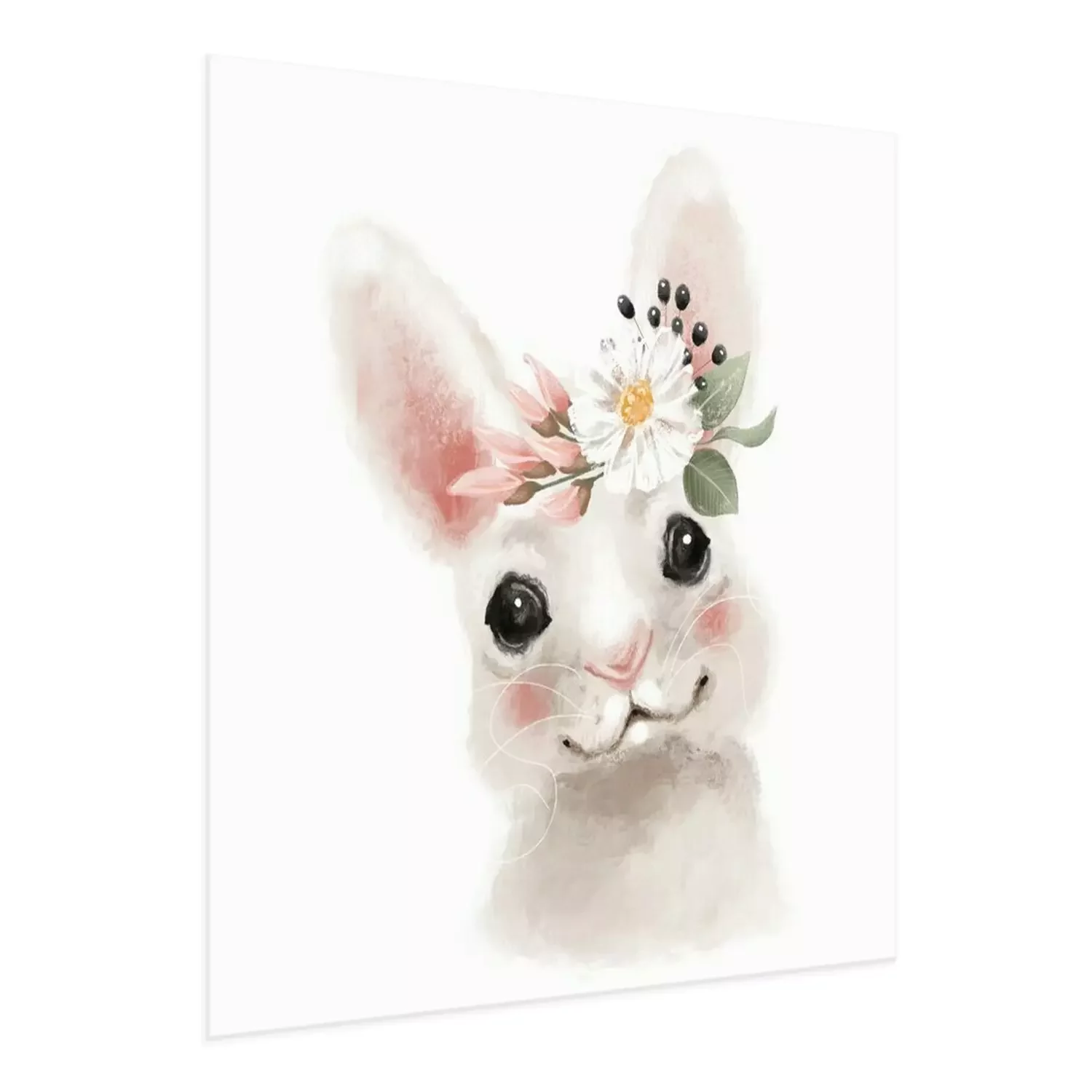 Poster  Lapin aquarelle avec une fleur sur la tête