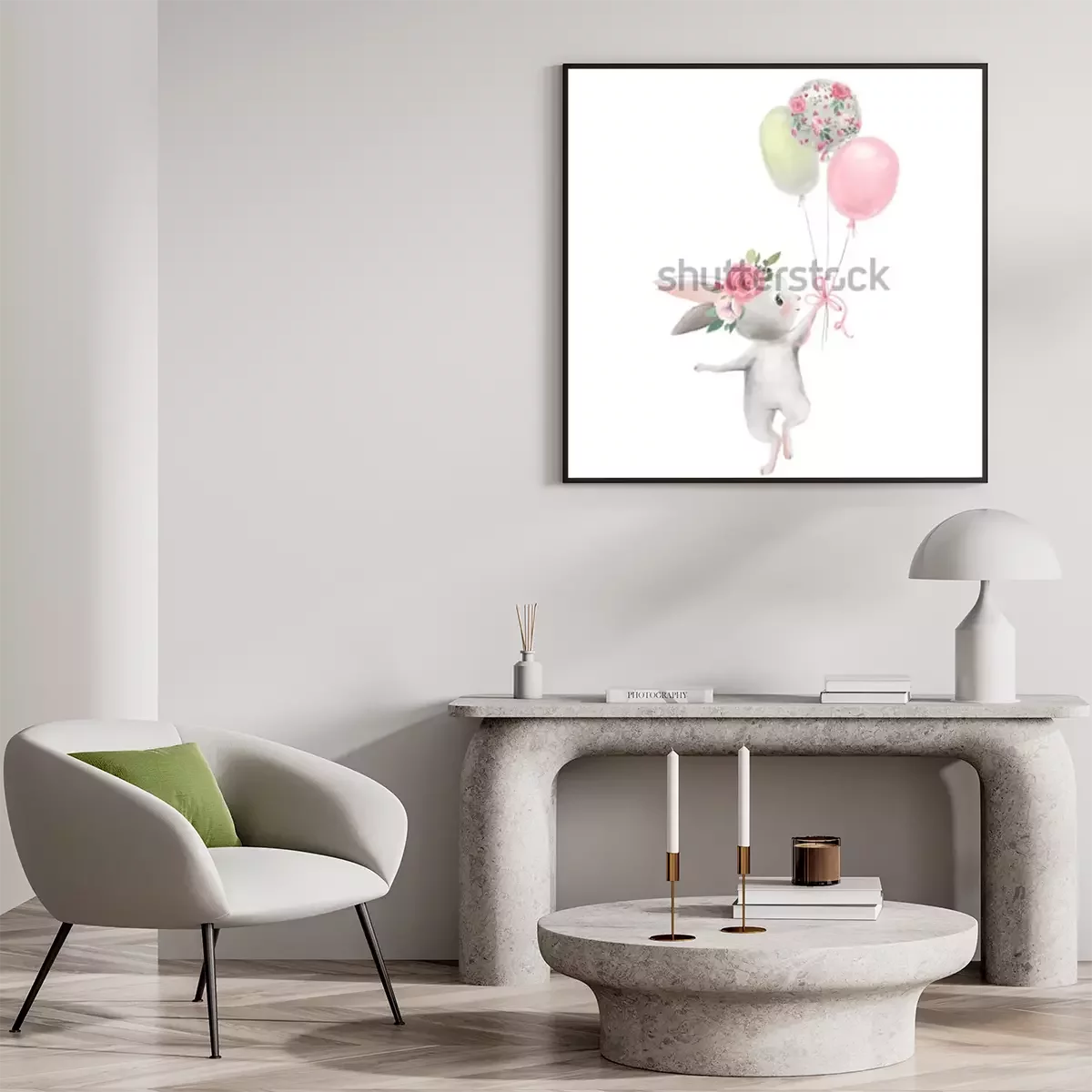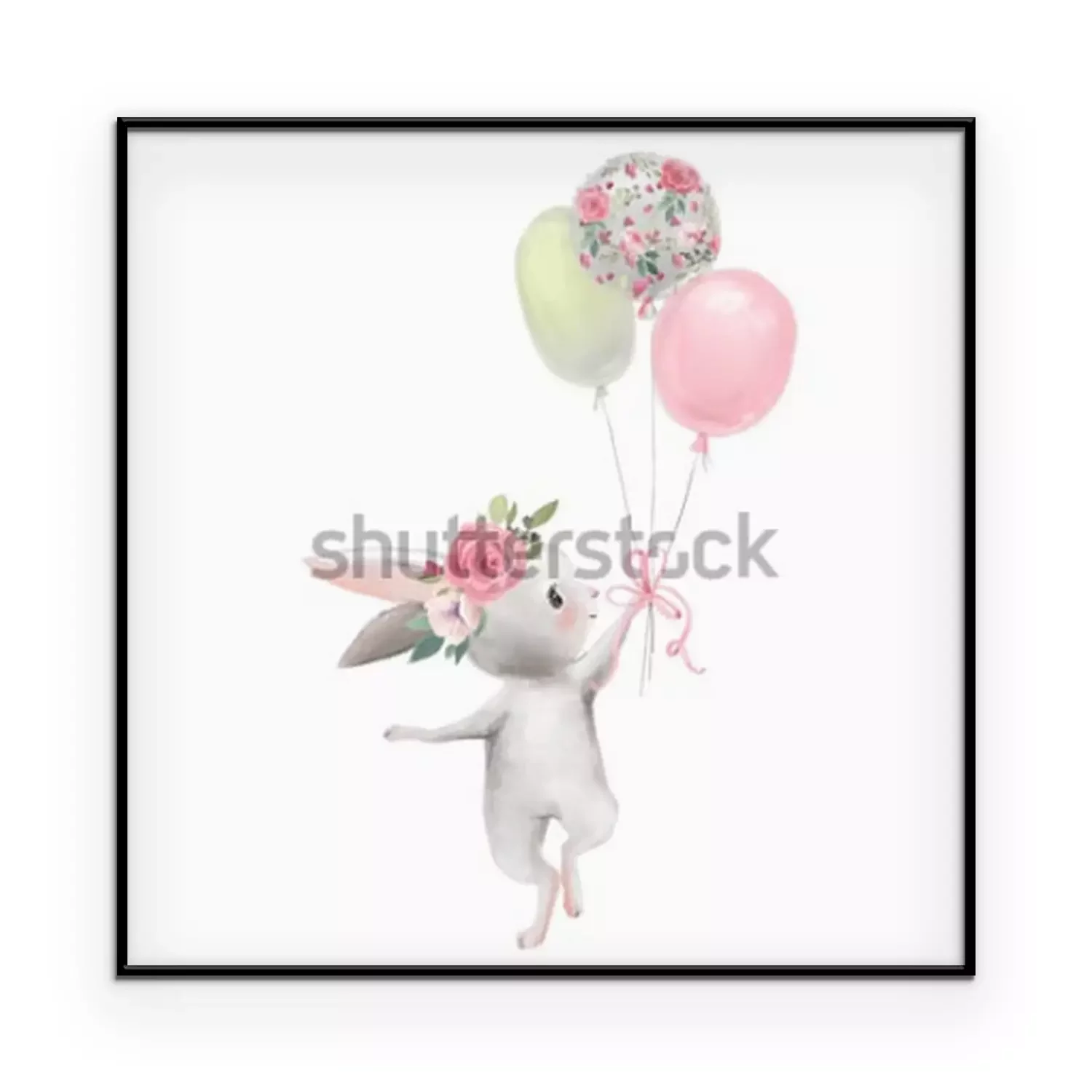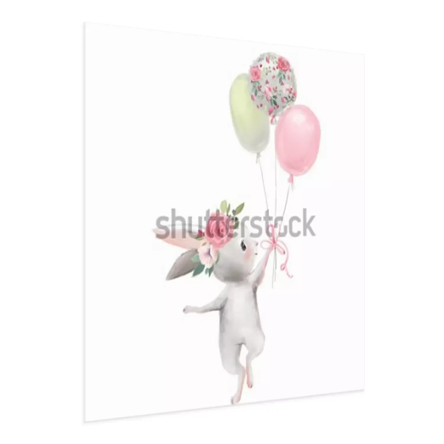 Poster : Lapin avec trois ballons colorés