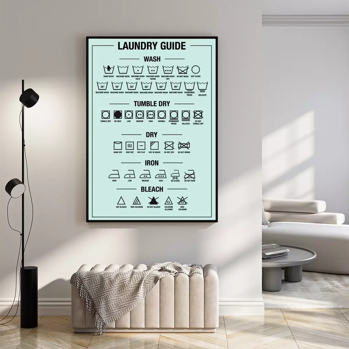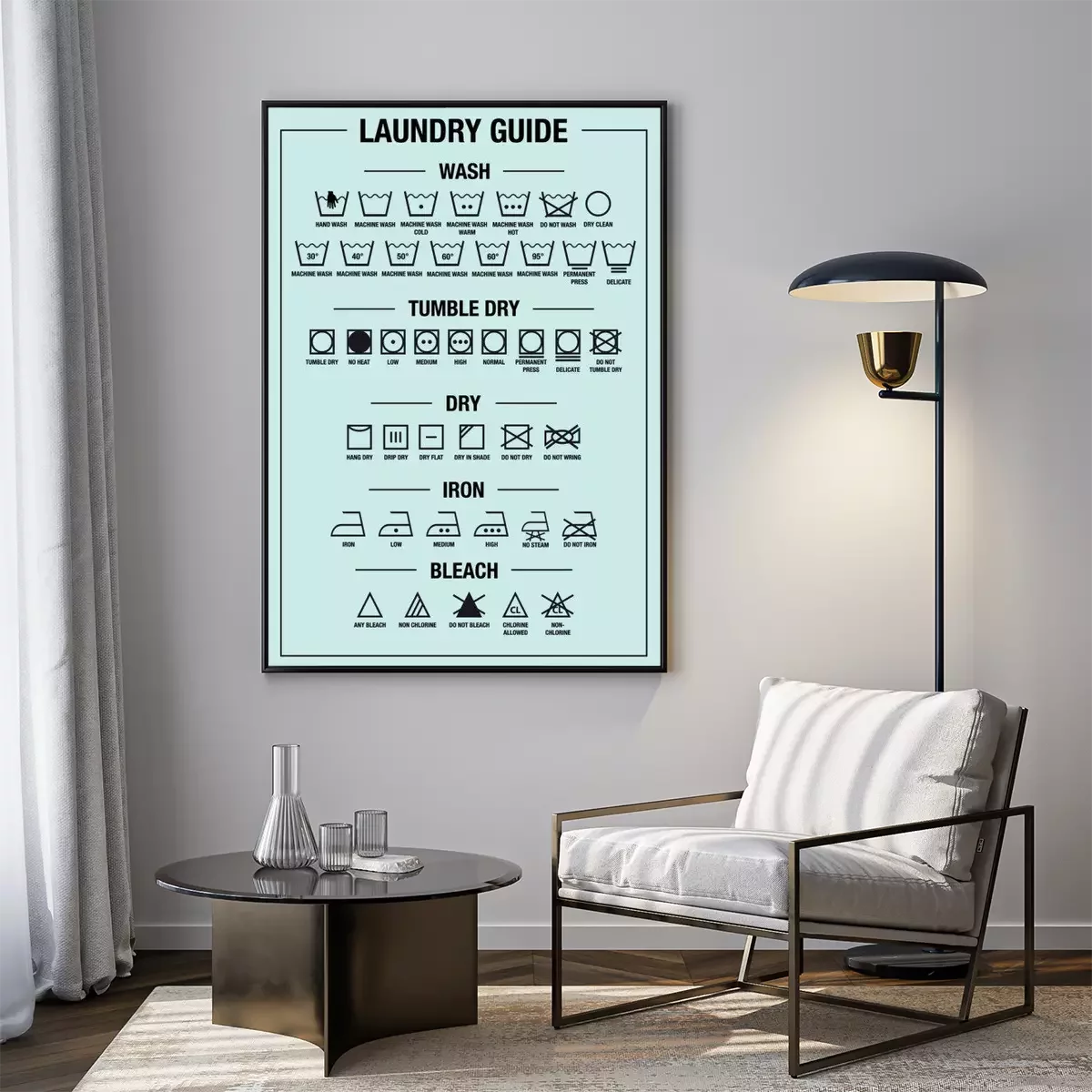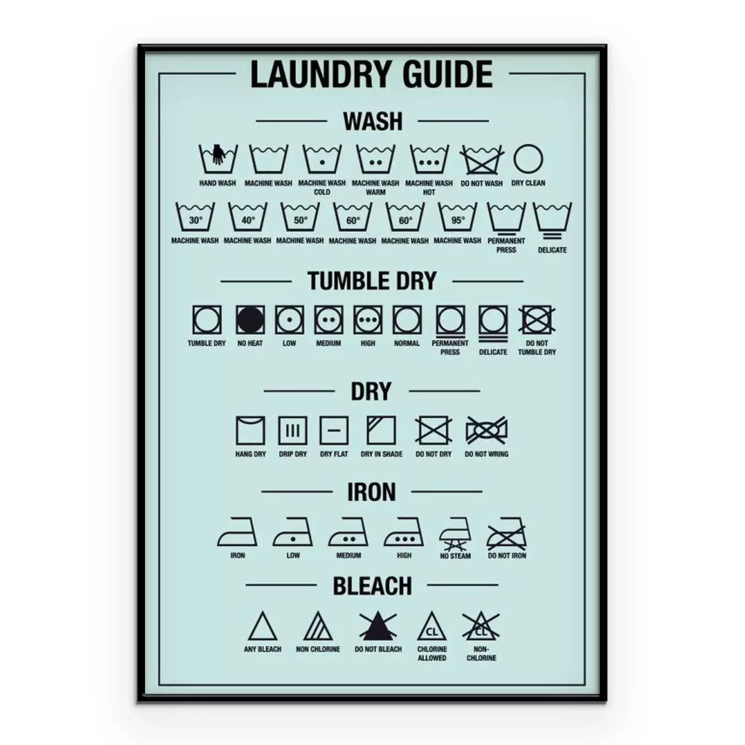 Poster  laundry guide, washing, care signs, textile symbols, vector graphic design elements