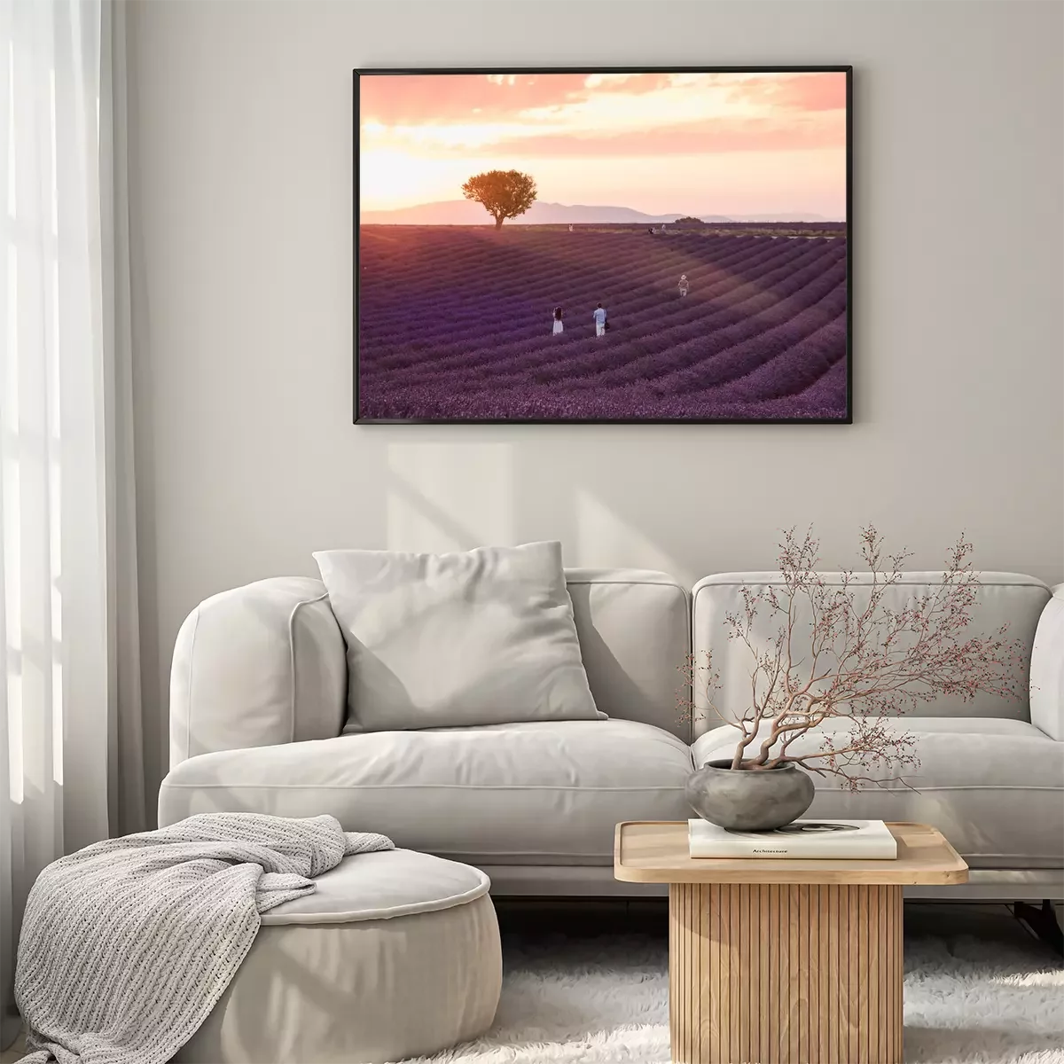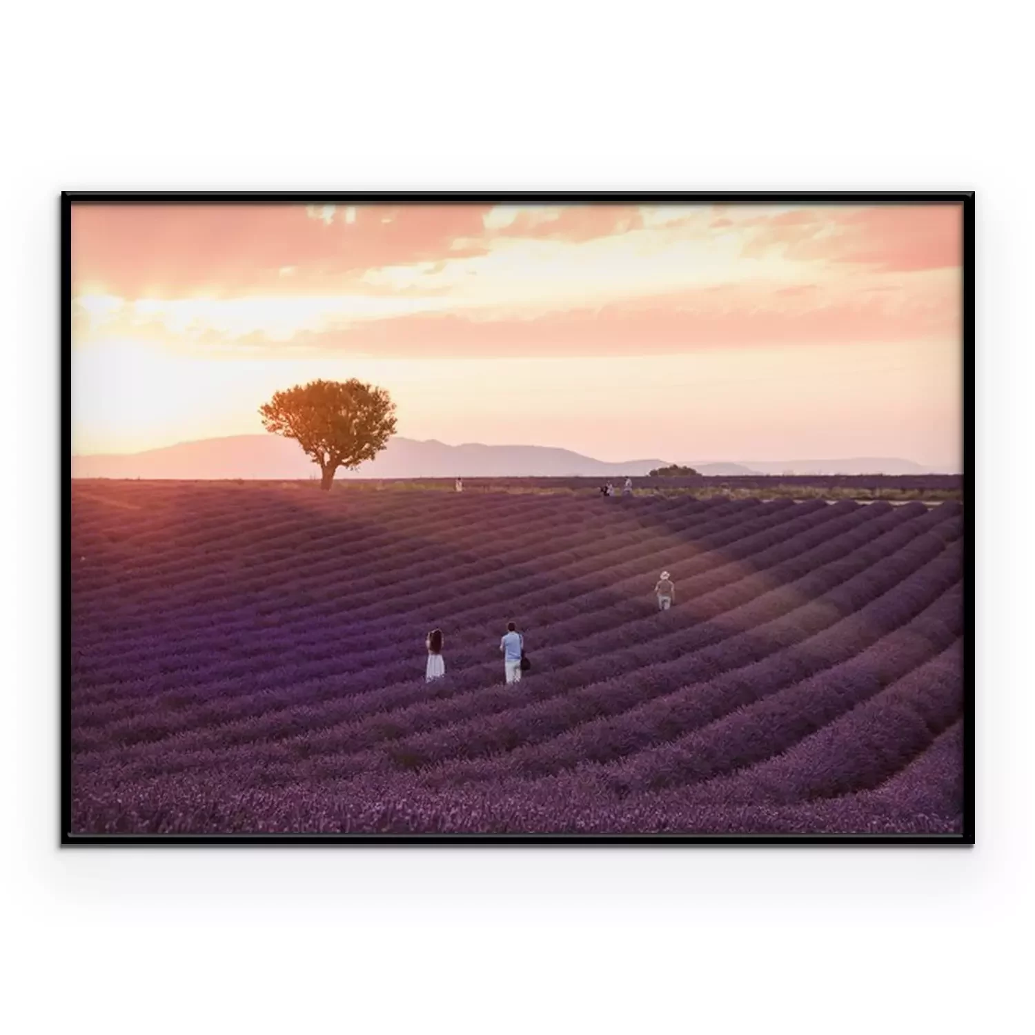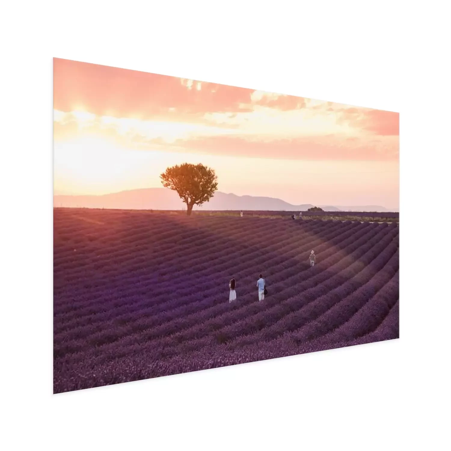 Poster : Lavender rows lines at sunset, Provence fields landscape, France.