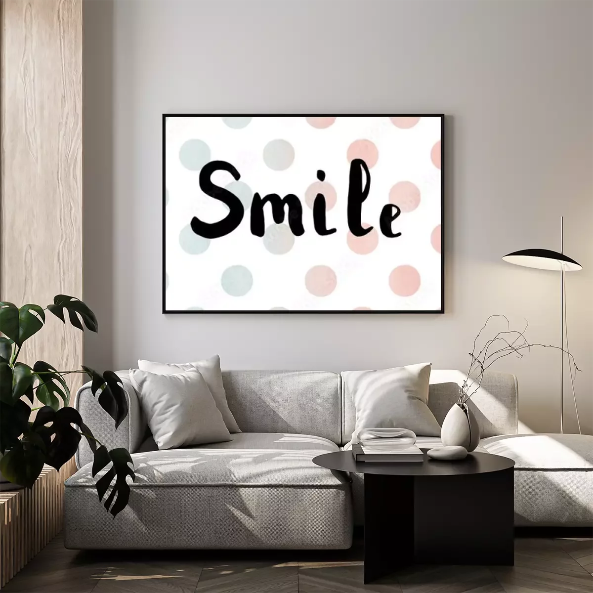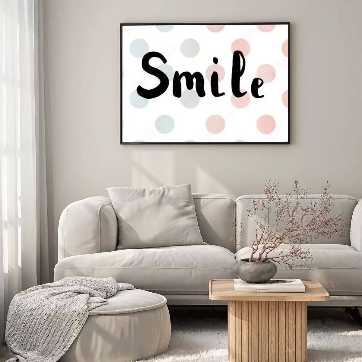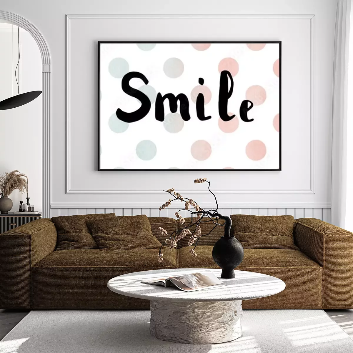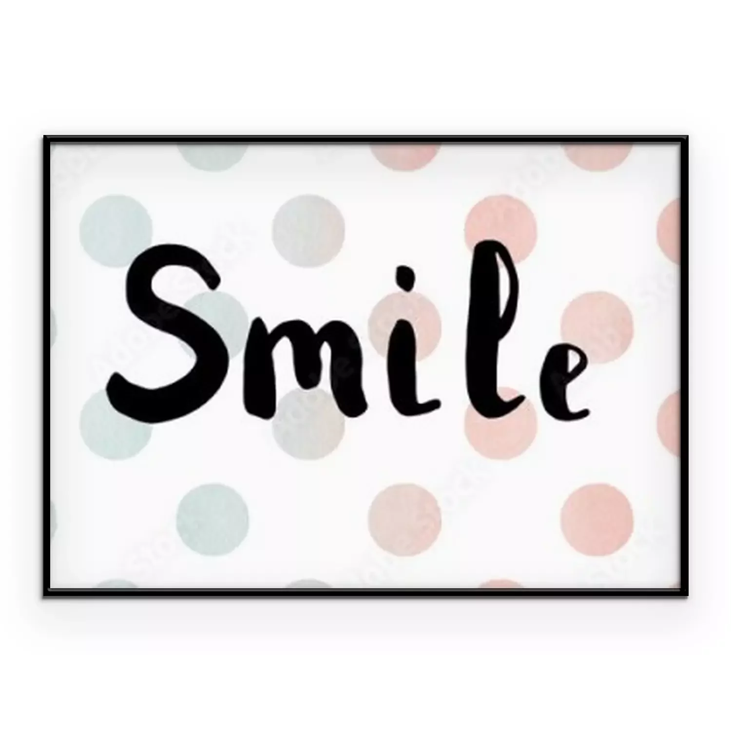 Poster : Le mot sourire. Caractères. Calligraphie au pinceau.