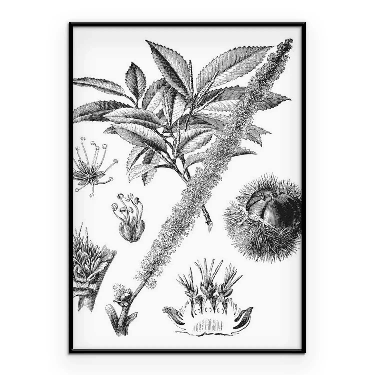 Poster  Le motif de feuilles et de fruits de châtaignier