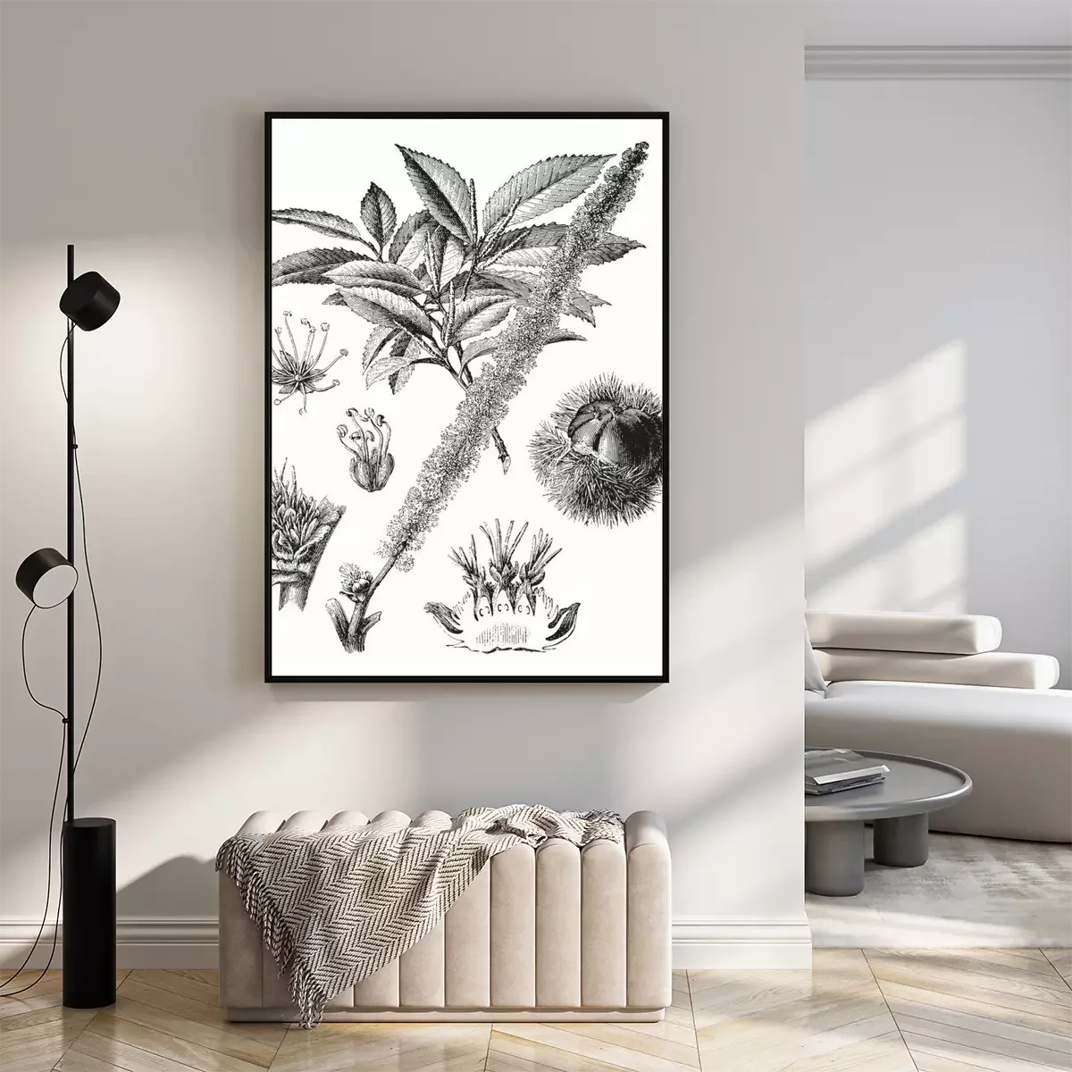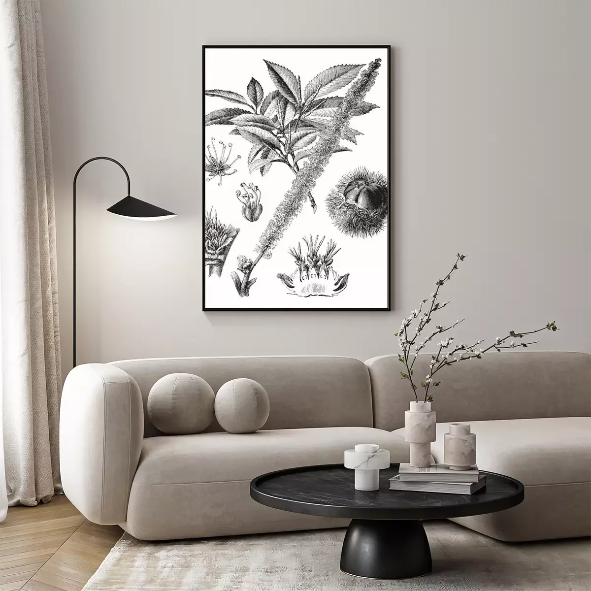 Poster : Le motif de feuilles et de fruits de châtaignier