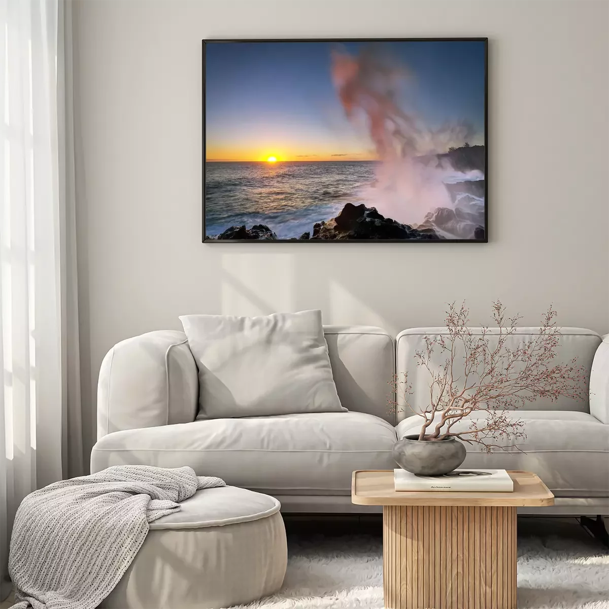 Poster : Le soleil couchant sur fond de mer ondulée