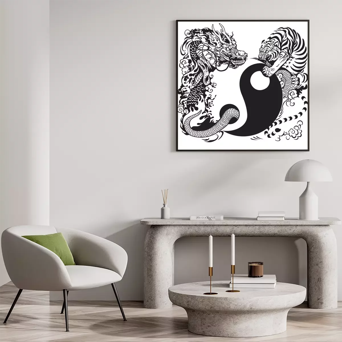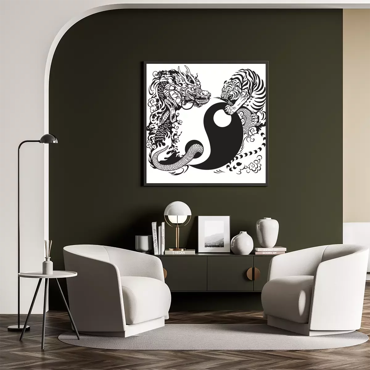 Un tigre combattant un dragon