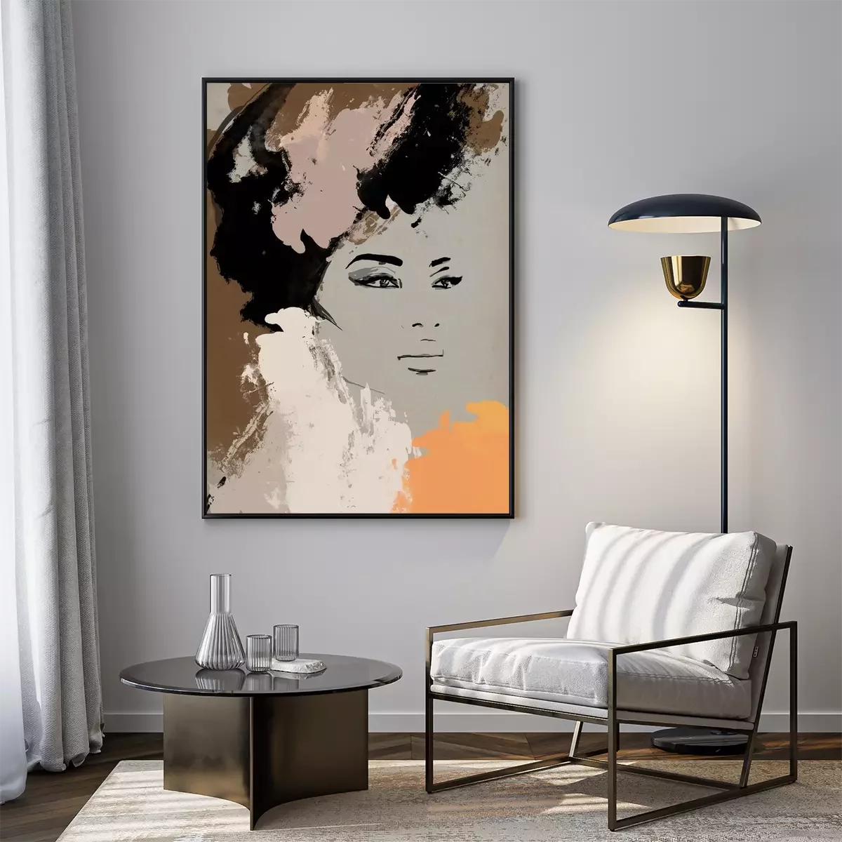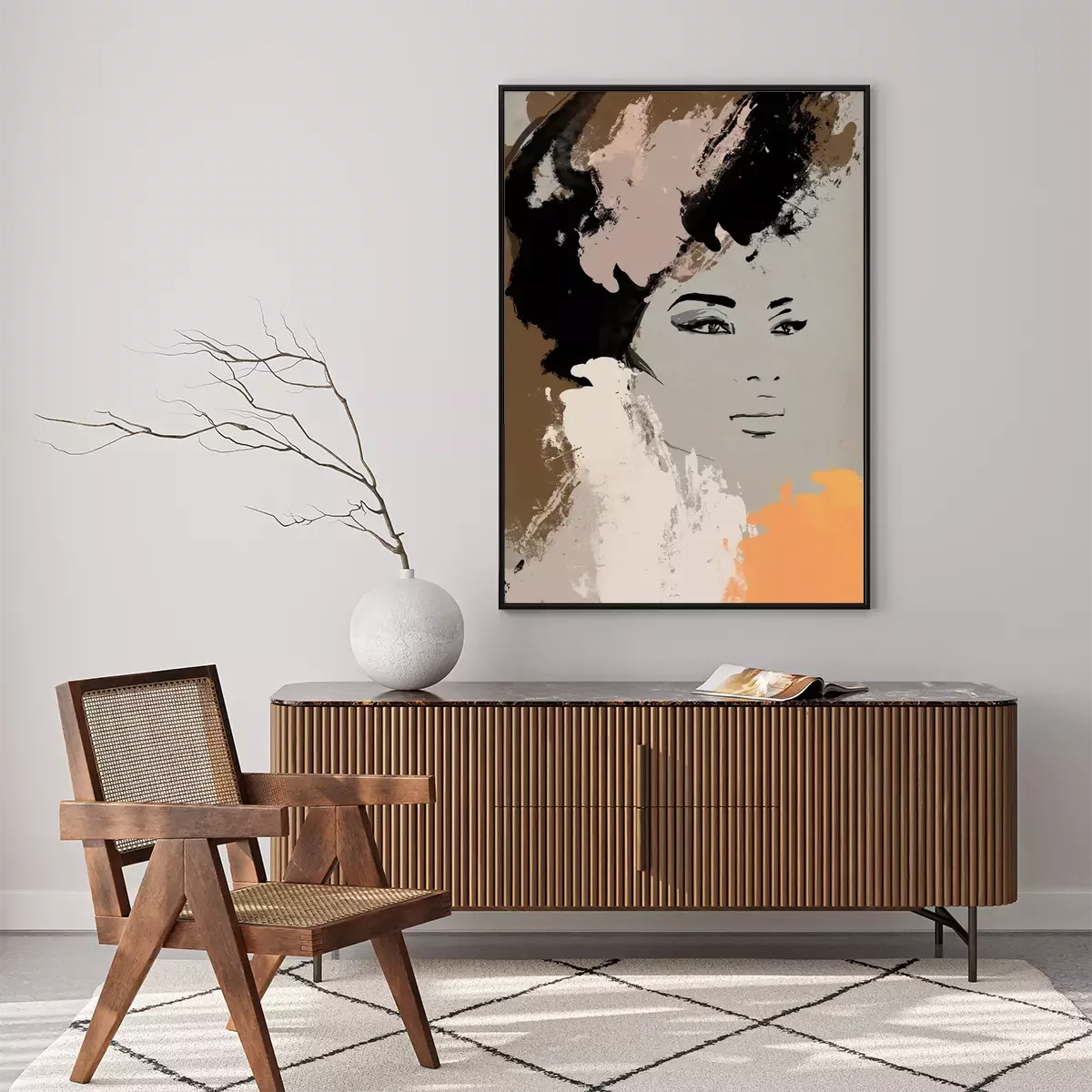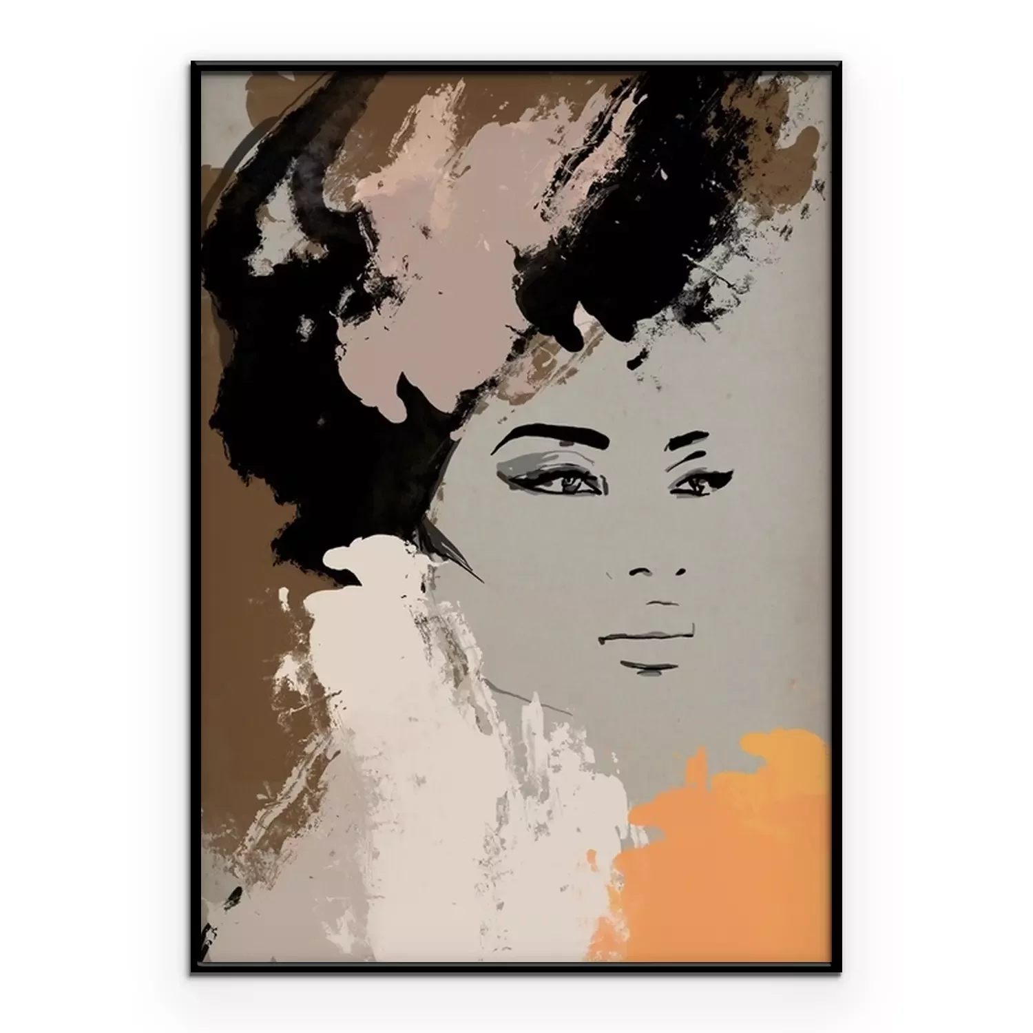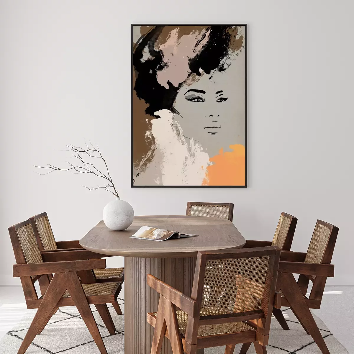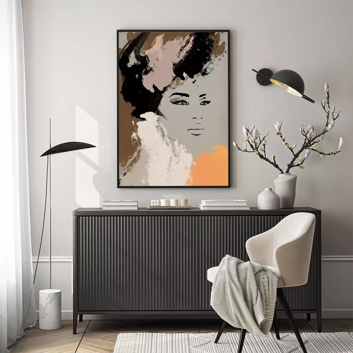 African American illustration for fashion banner. Trendy woman model background. Afro hair style girl