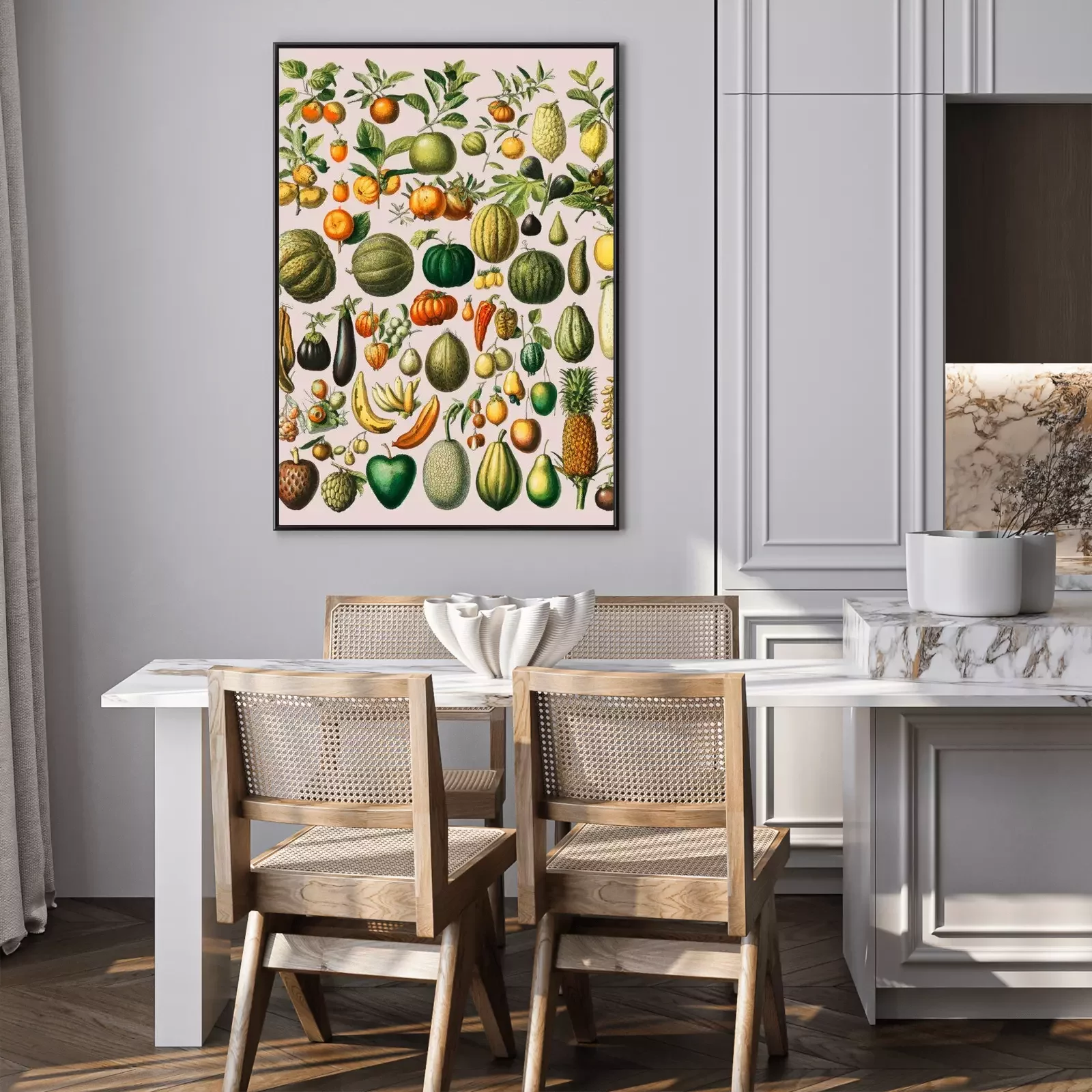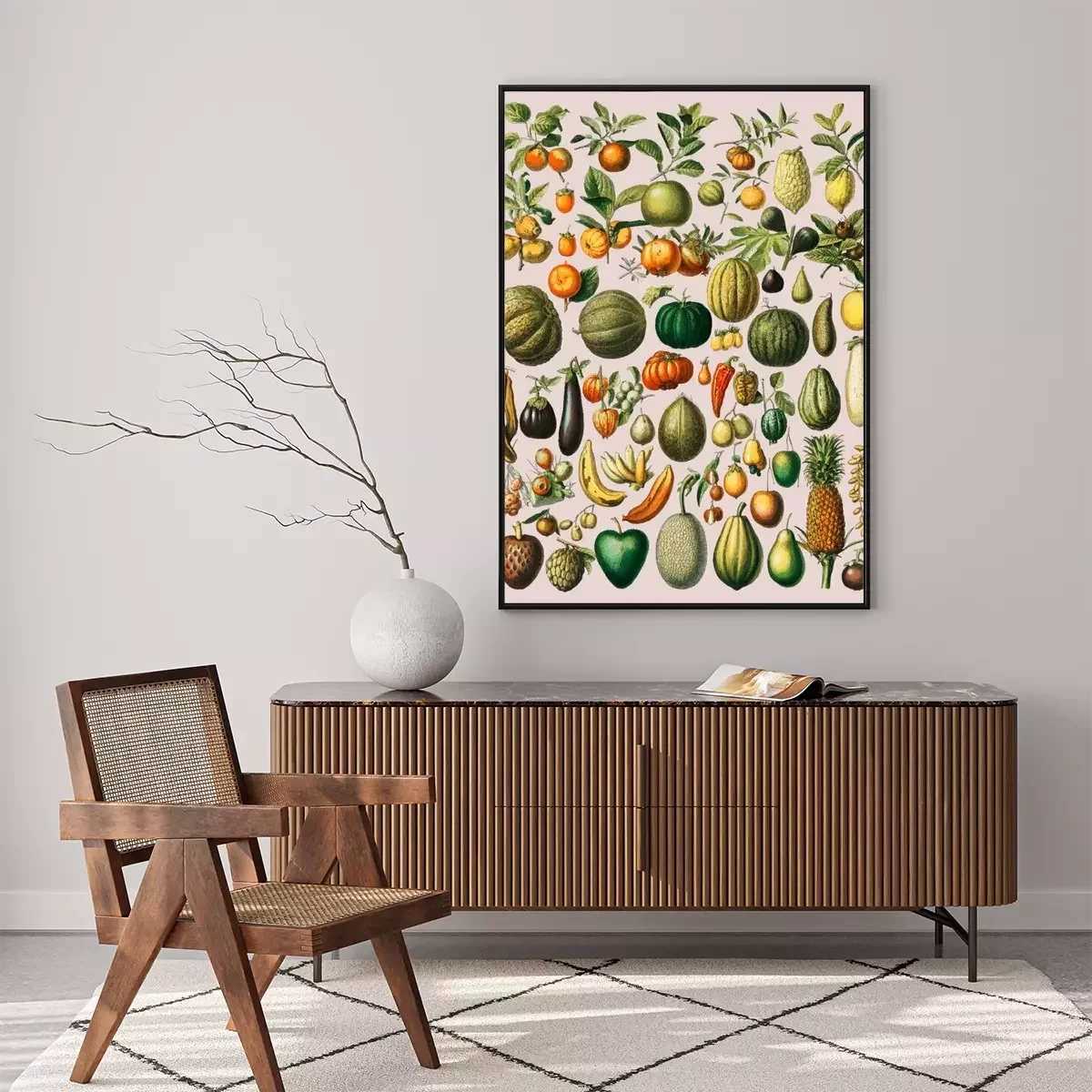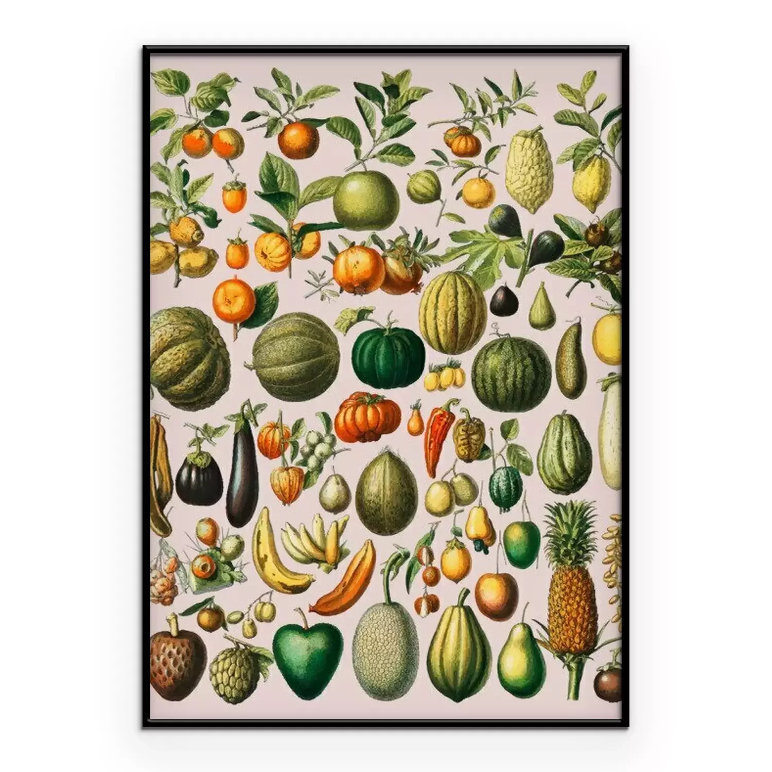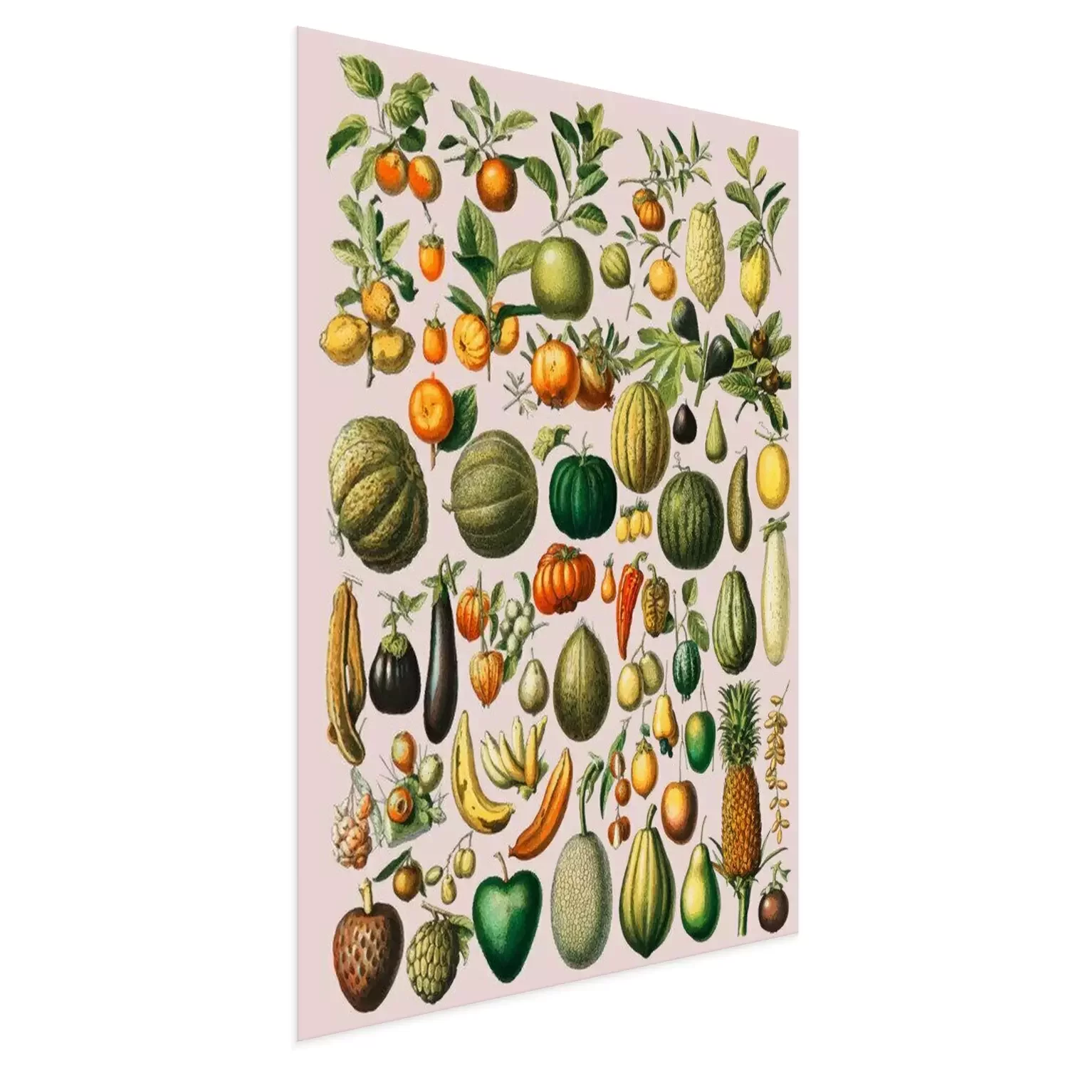 Poster : Légumes et fruits sur illustration vintage