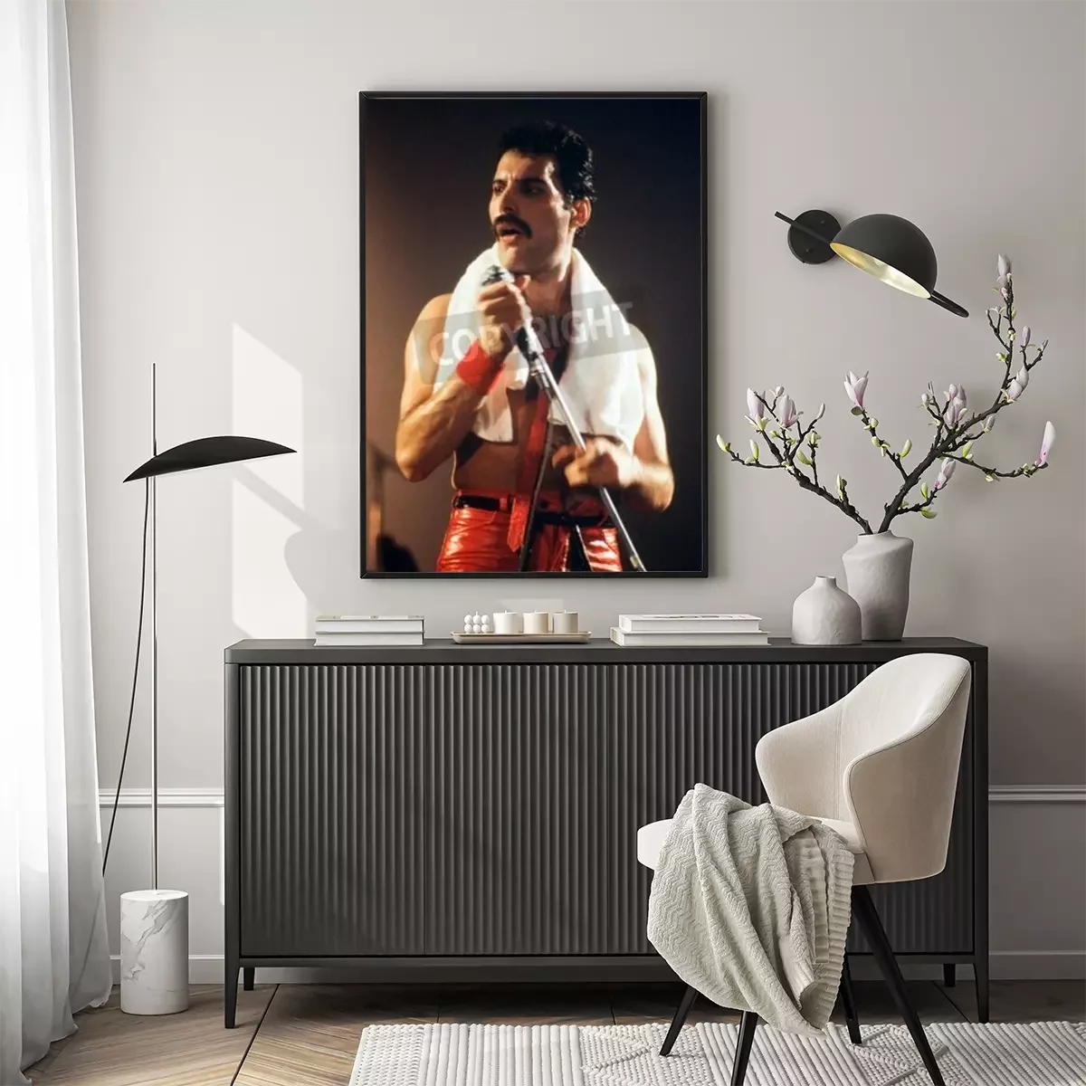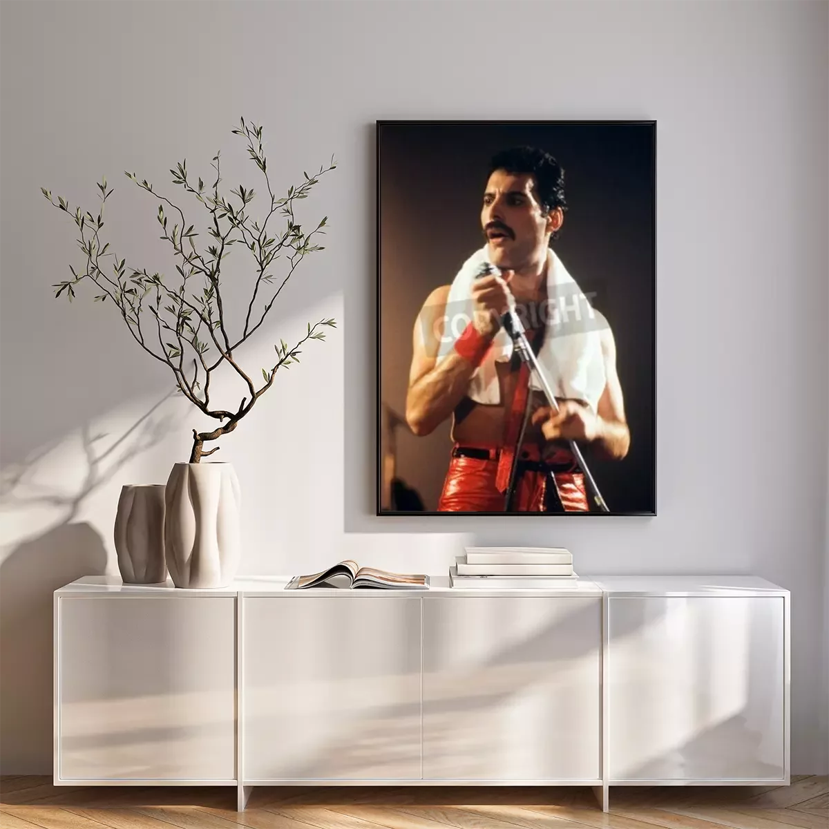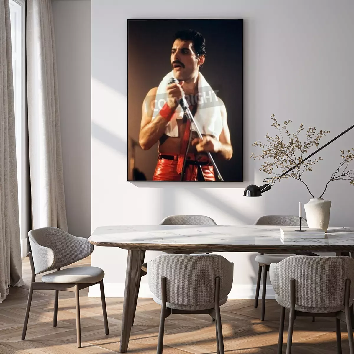 Poster  LEIDEN, PAYS-BAS - 27 NOVEMBRE 1980: Freddy Mercury chanteur de la bande britannique Queen lors d'un concert au Groenoordhallen à Leiden aux Pays-Bas