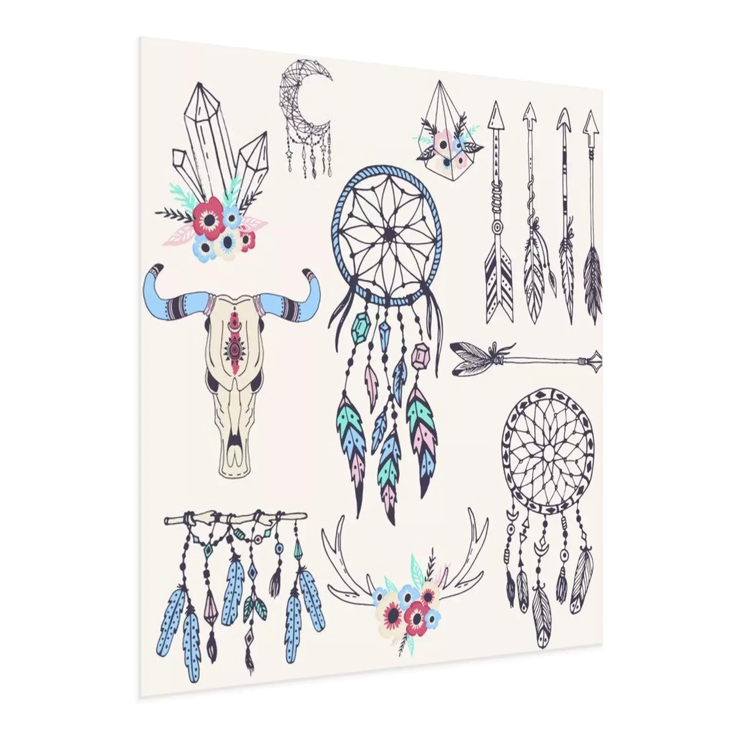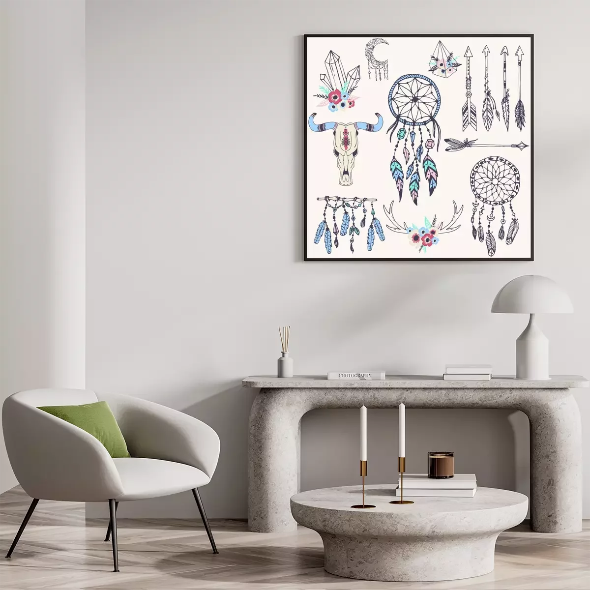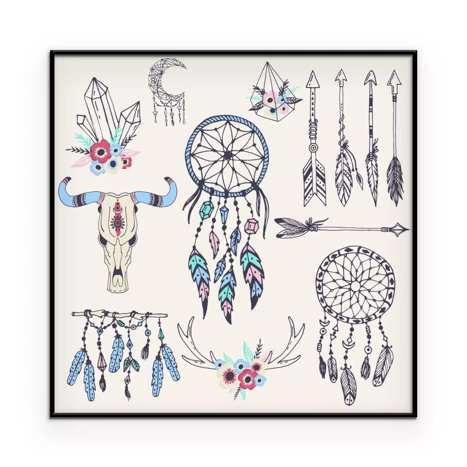 Poster  Les cadres Creative Boho style mady ethniques plumes flèches et éléments floraux illustration vectorielle.