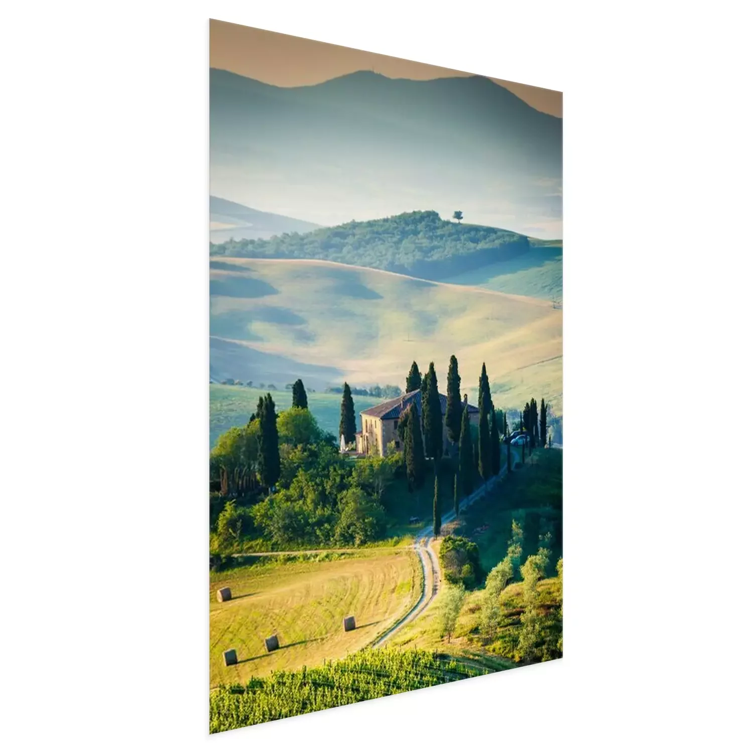 Toscane, Paysage et ferme dans les collines du Val d'Orcia