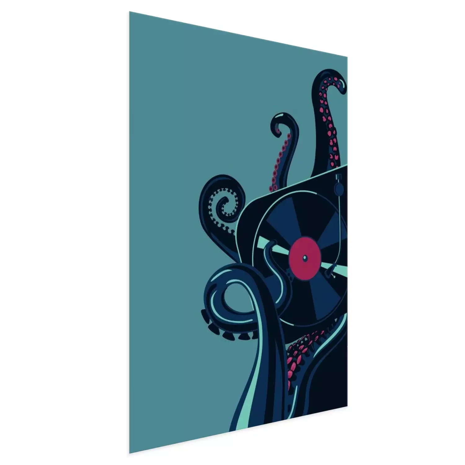 Poster  Les tentacules d'Octopus avec plateau tournant vinyle. Modèle d'affiche de fête.