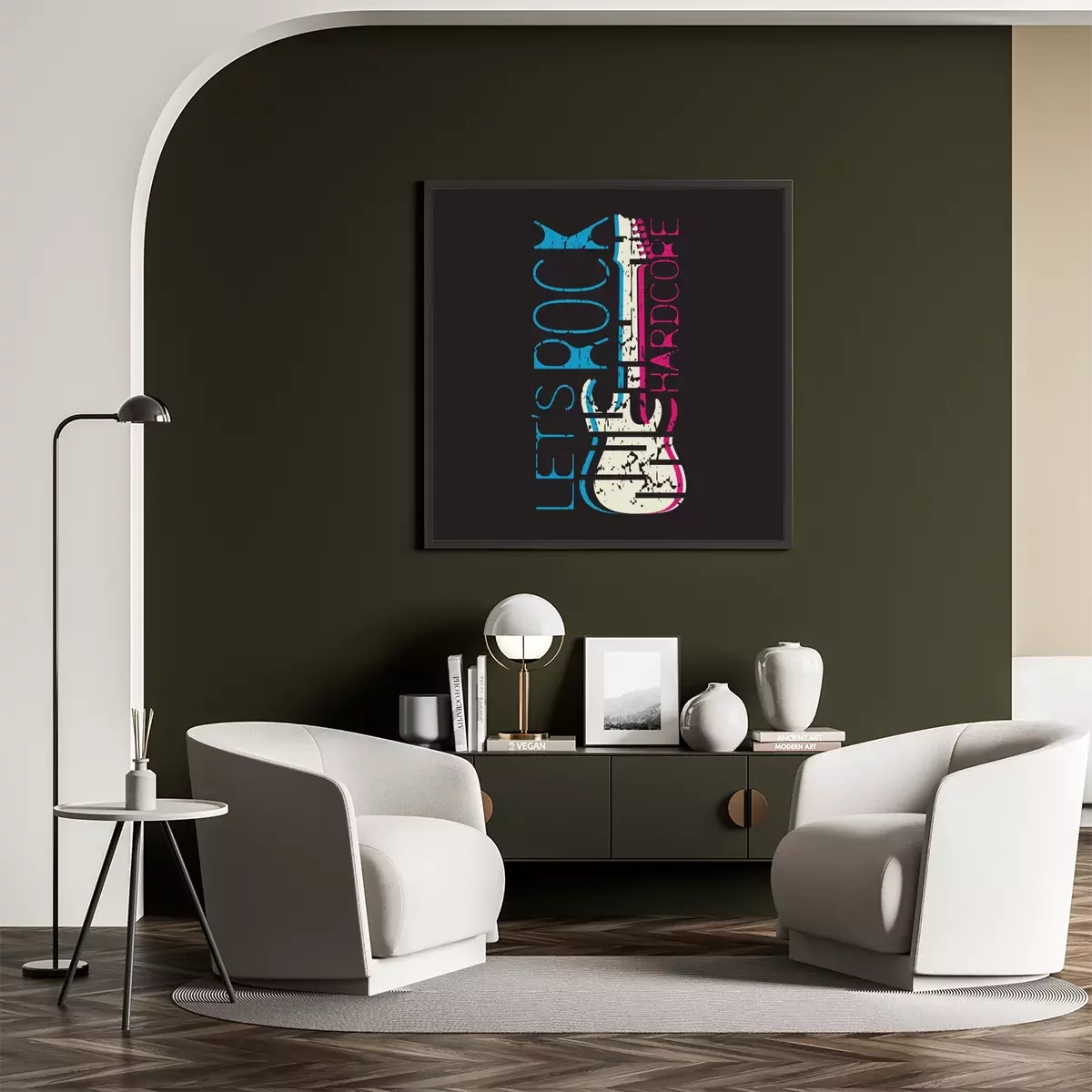 Poster : Let's rock, Hardcore. Rock graphic design for t-shirts or roasters, etc., typographic emblem. Vector image.