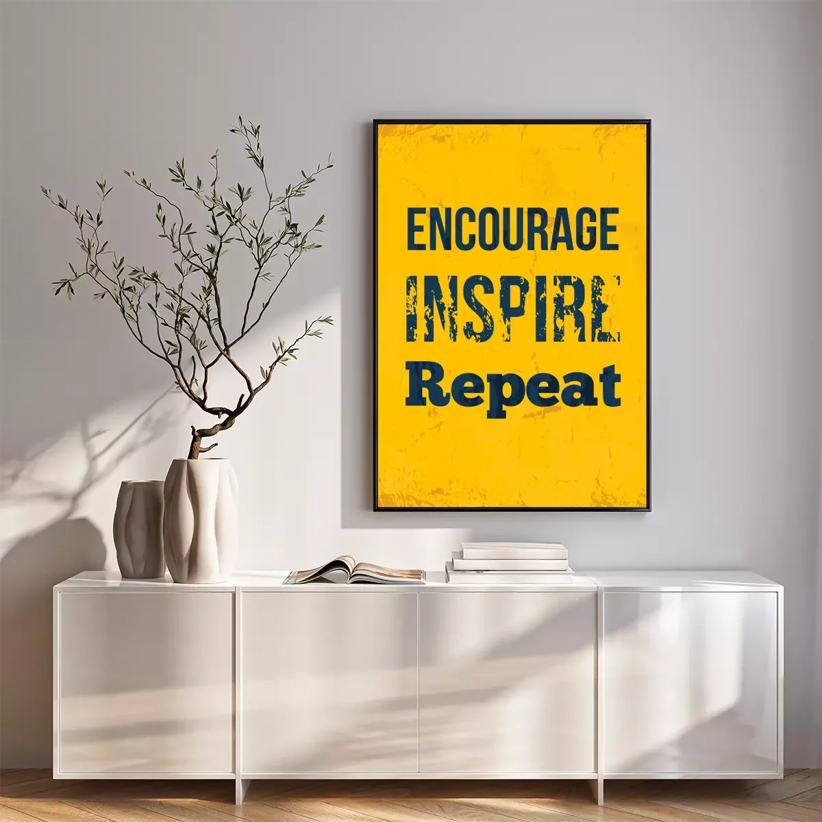 Poster : Lettrage typographique bleu marine sur fond jaune