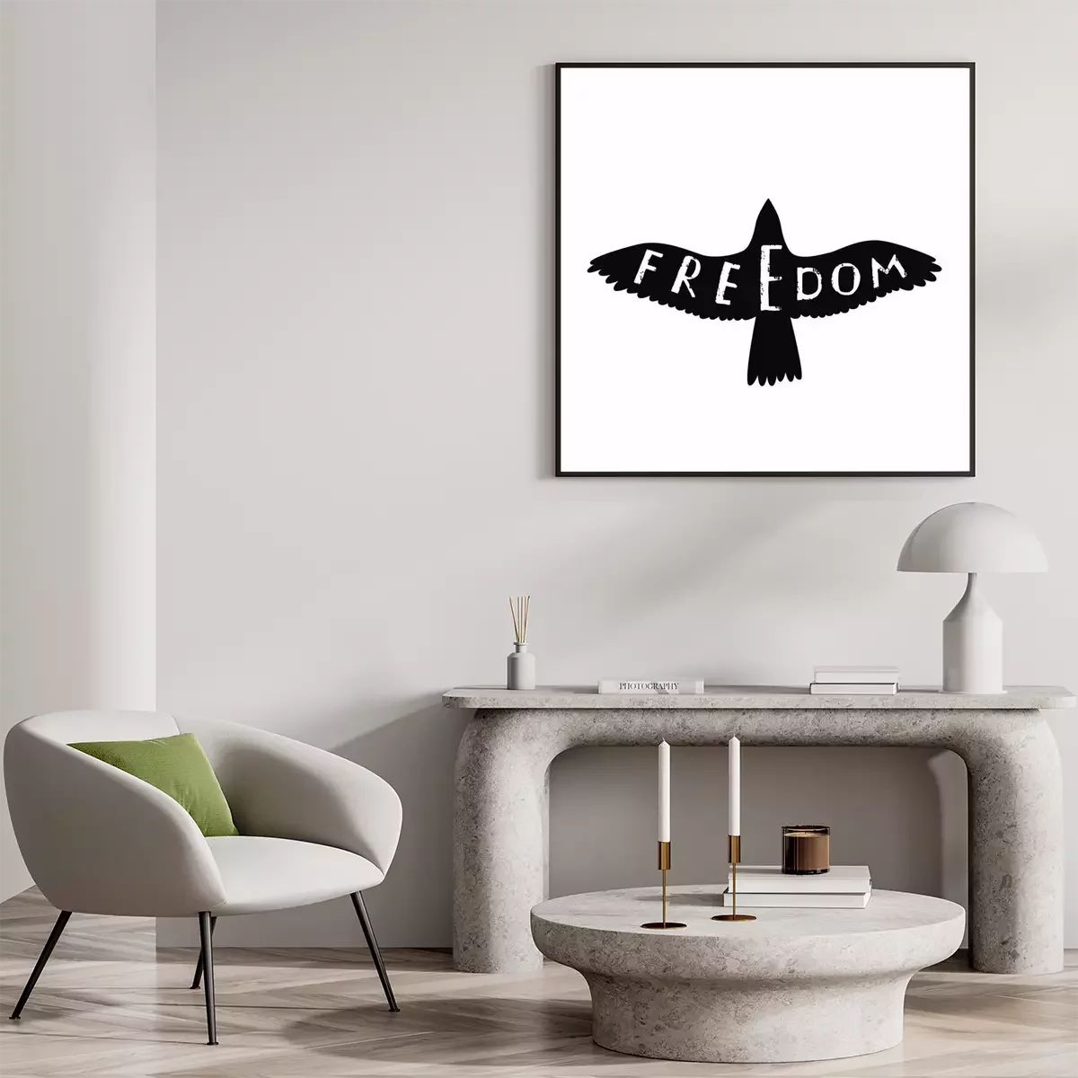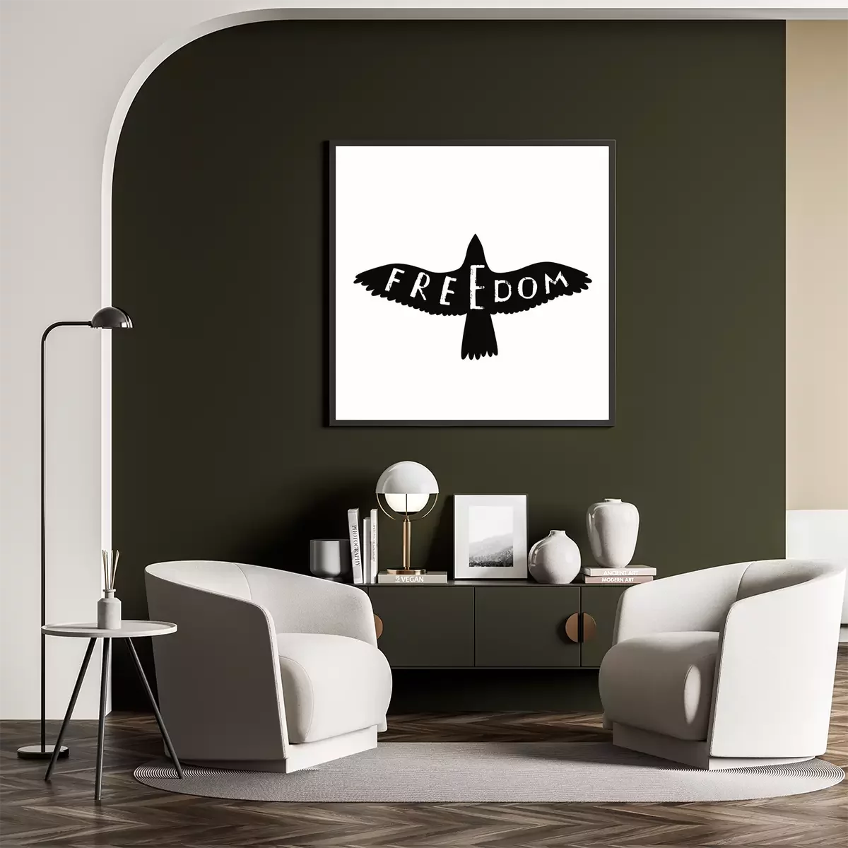 Poster  Liberté. Citation inspirée au sujet de la liberté dans l'oiseau de vol de forme.