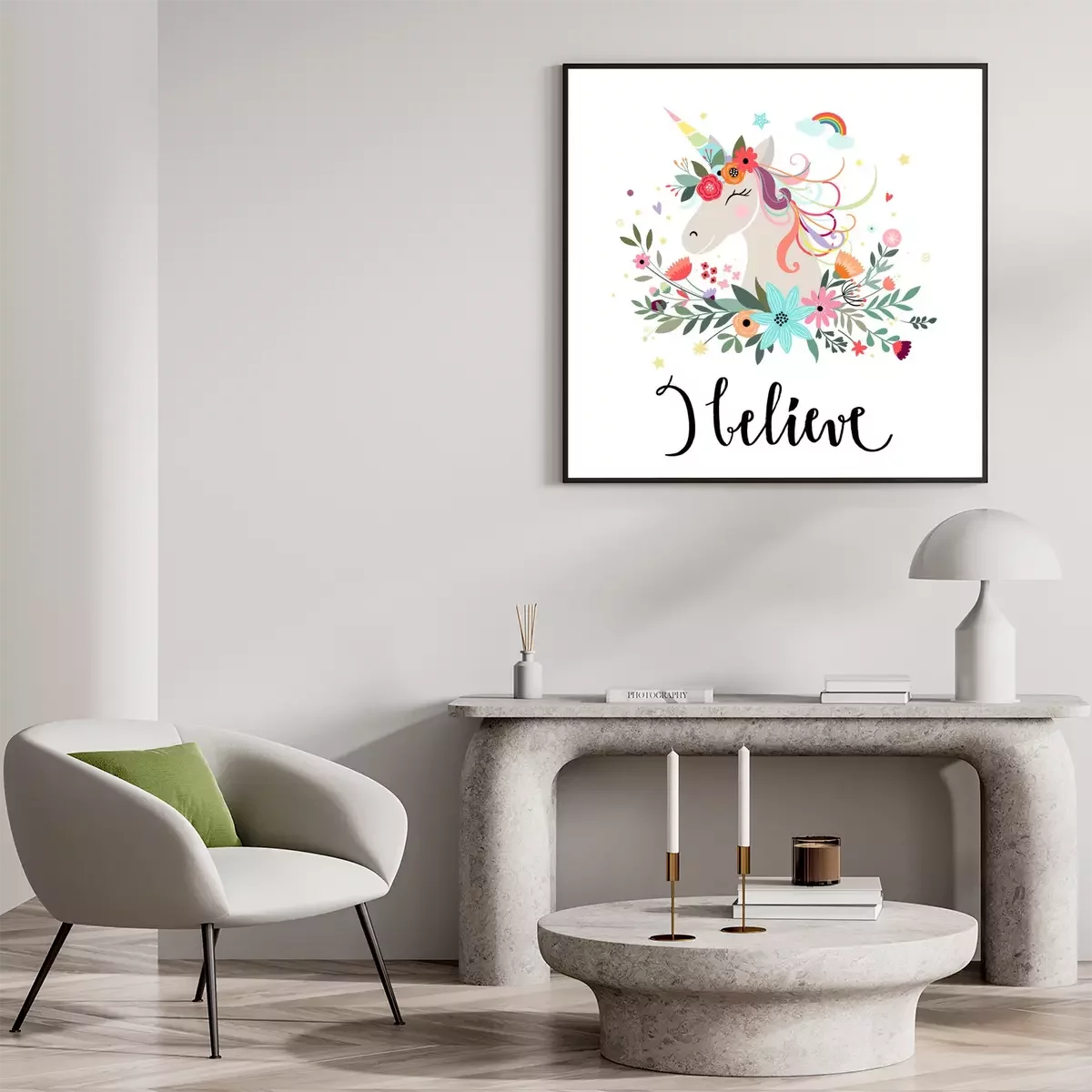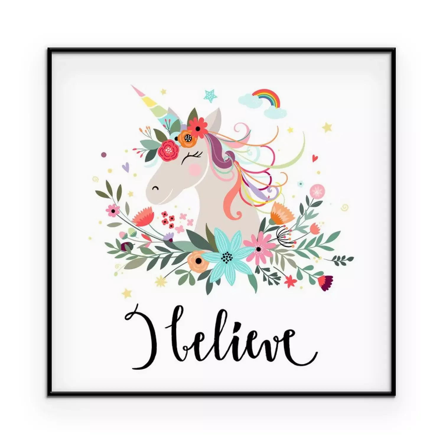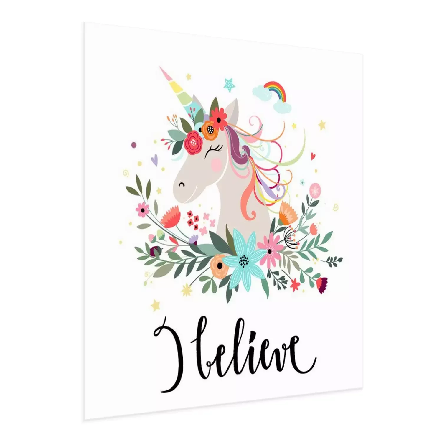 Poster : Licorne avec corne arc-en-ciel et fleurs