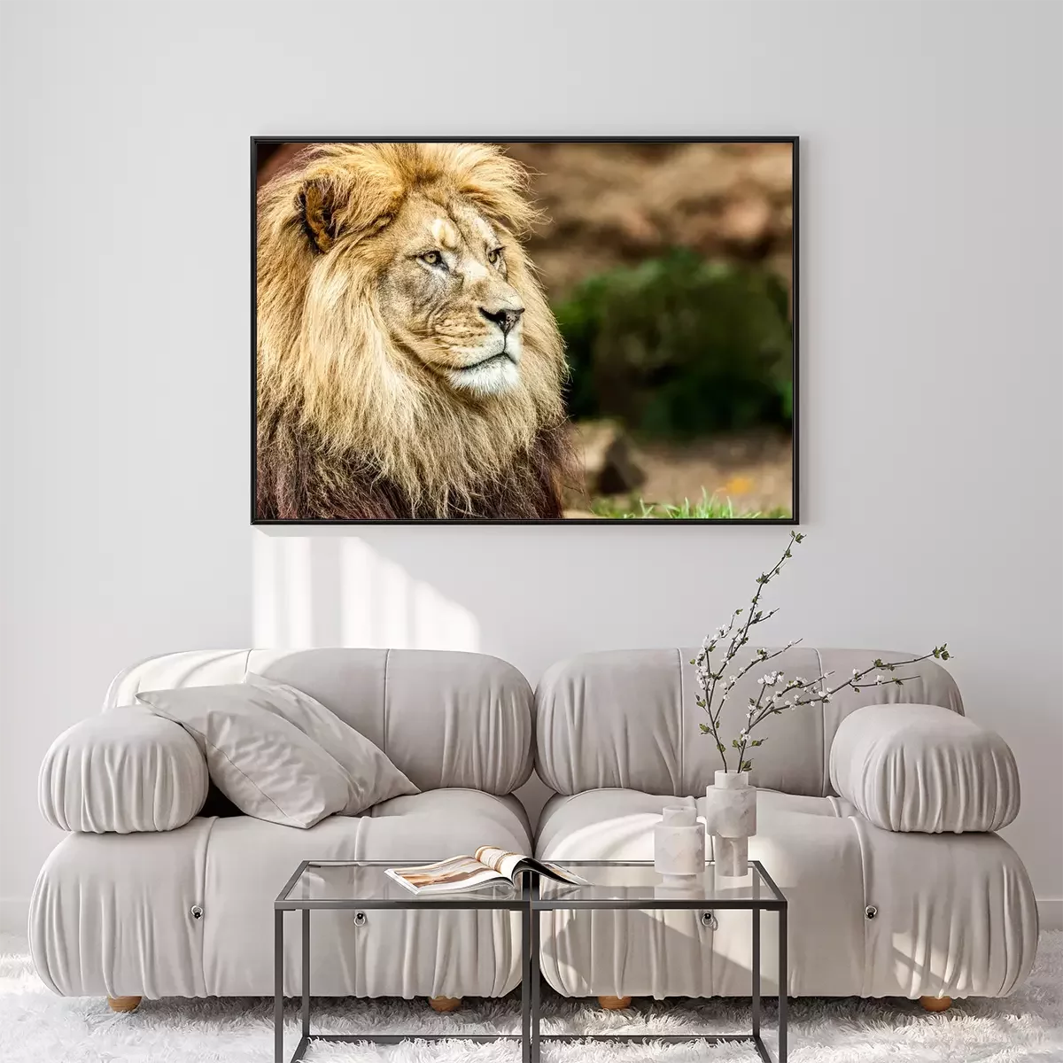 Poster  Lion assis parmi l'herbe