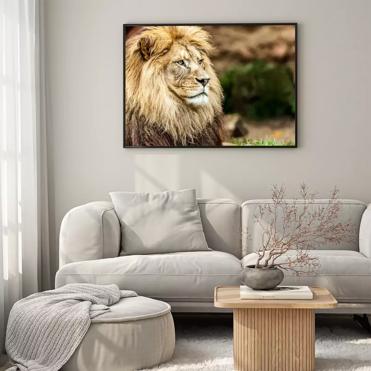 Poster : Lion assis parmi l'herbe