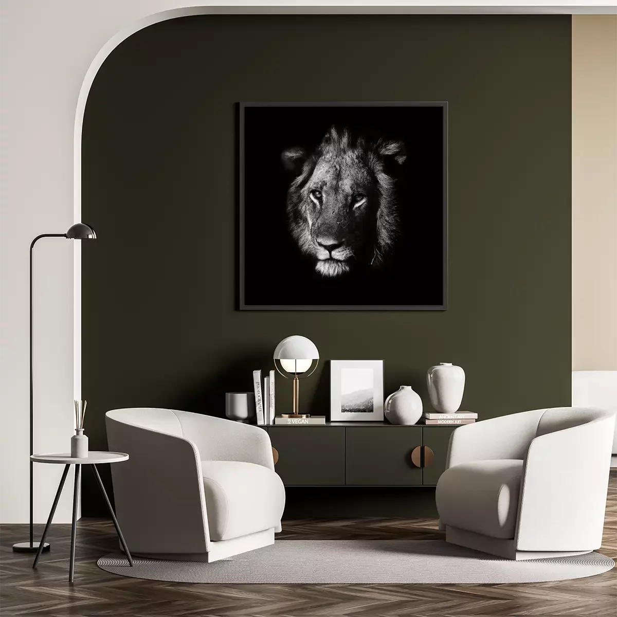 Poster : Lion sur fond noir