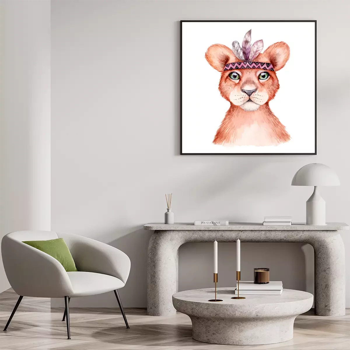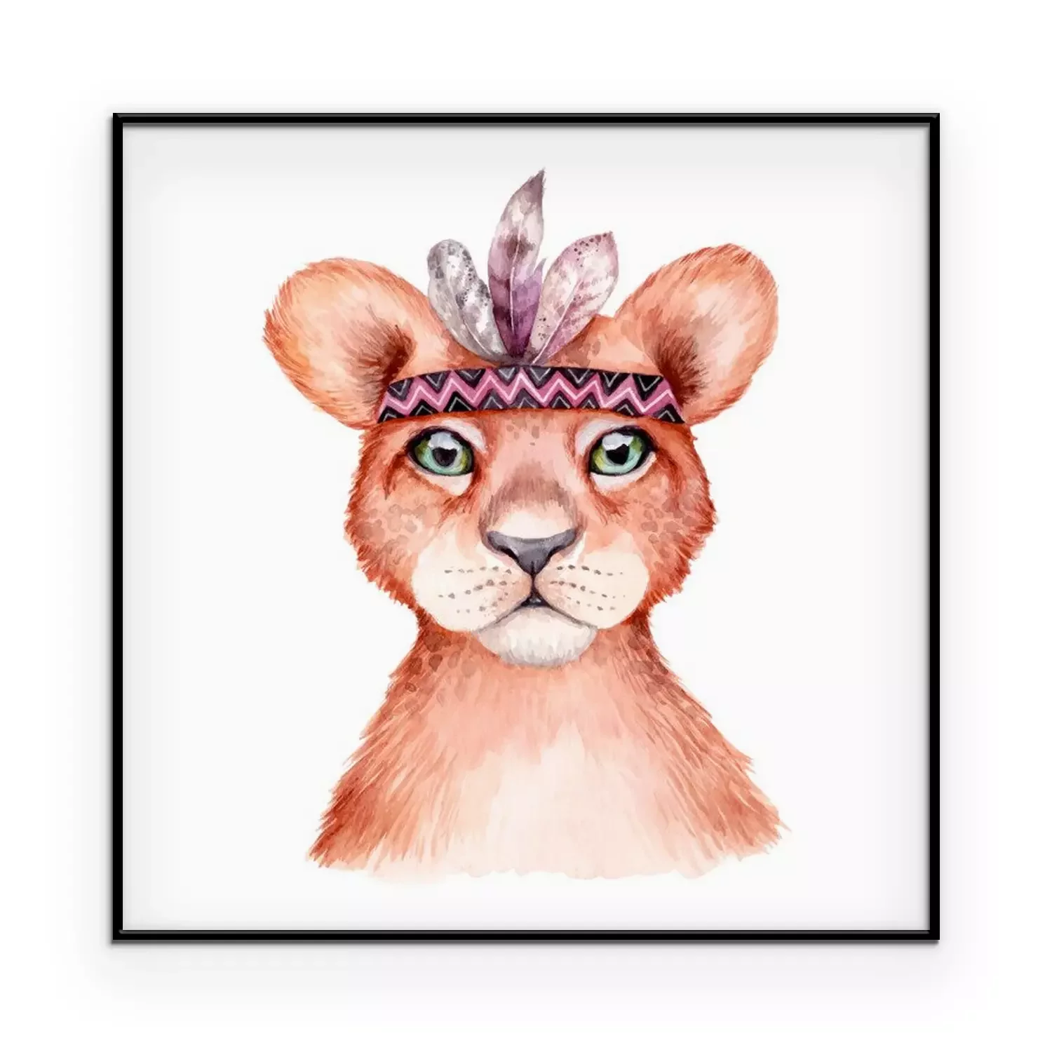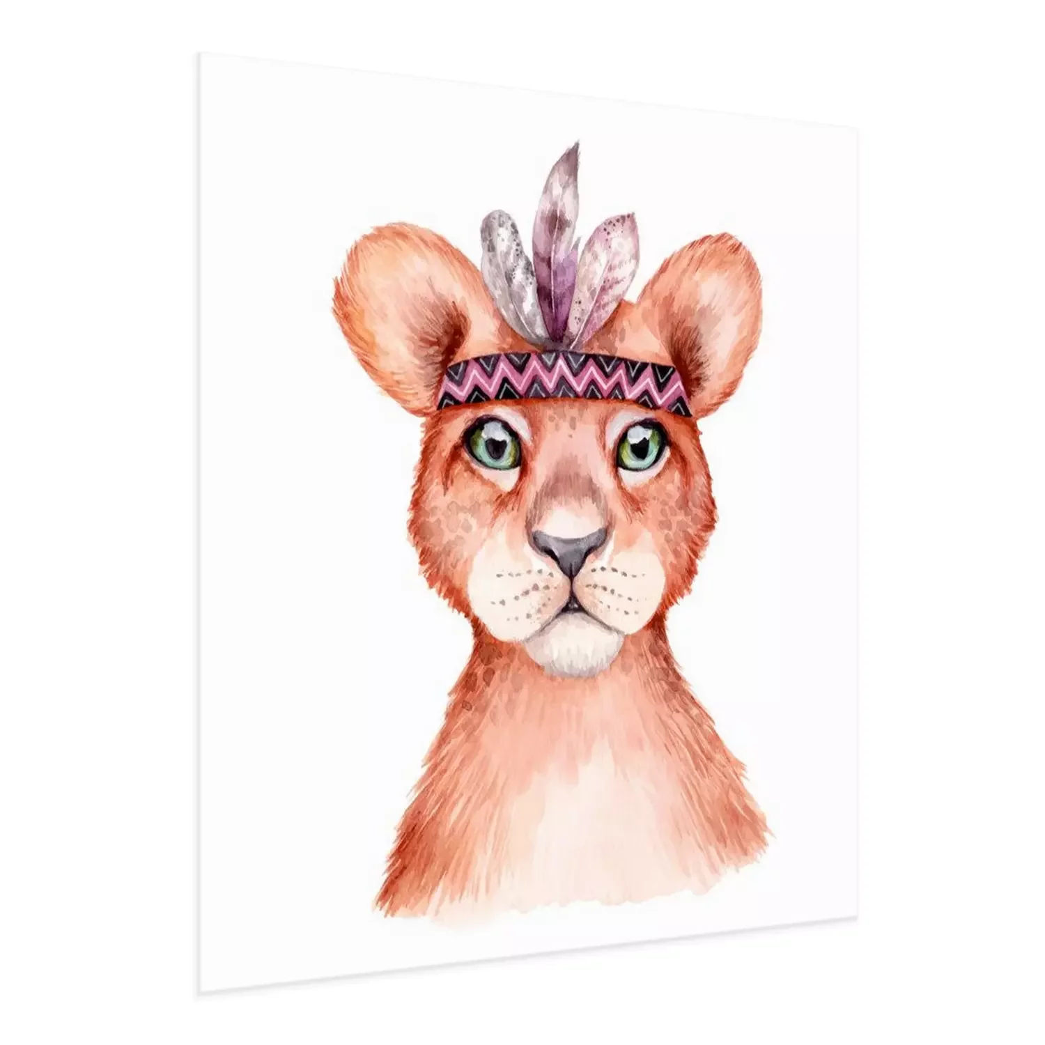 Poster : Lionceau aquarelle avec bandeau de plumes
