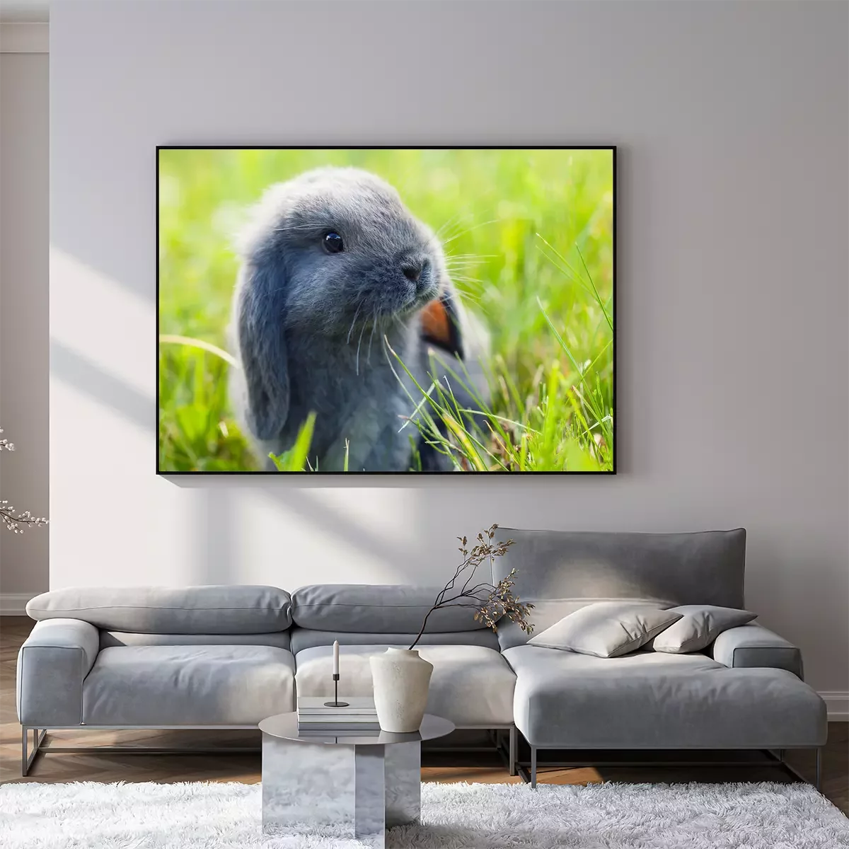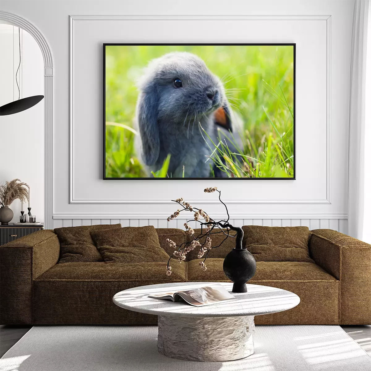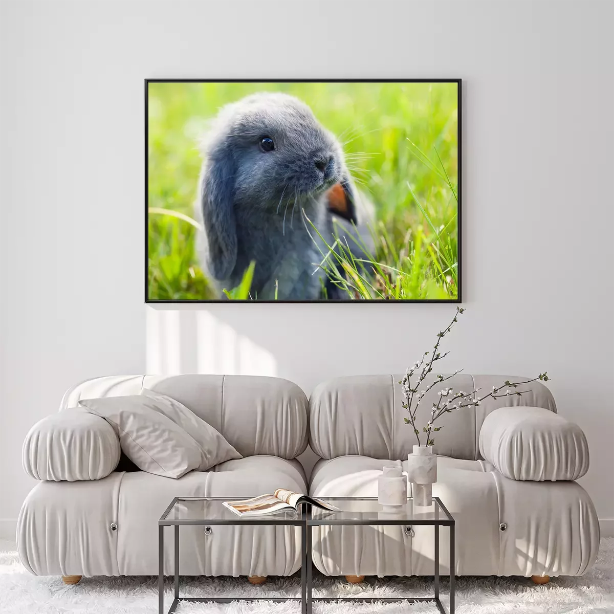 Poster  Little cute rabbit (bunny) sitting in the grass