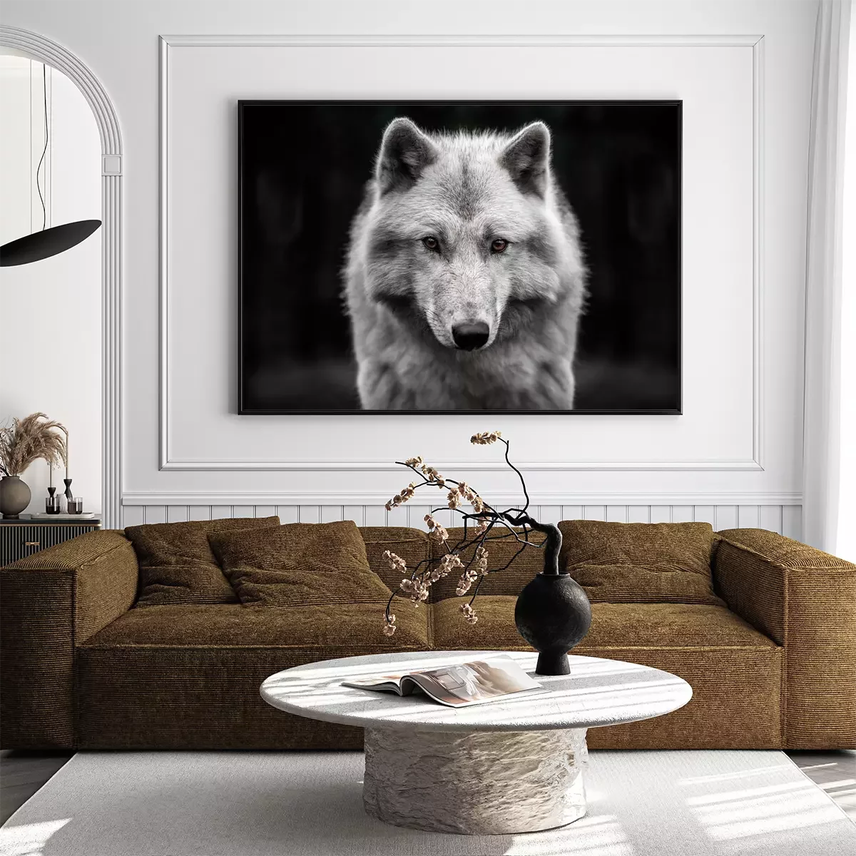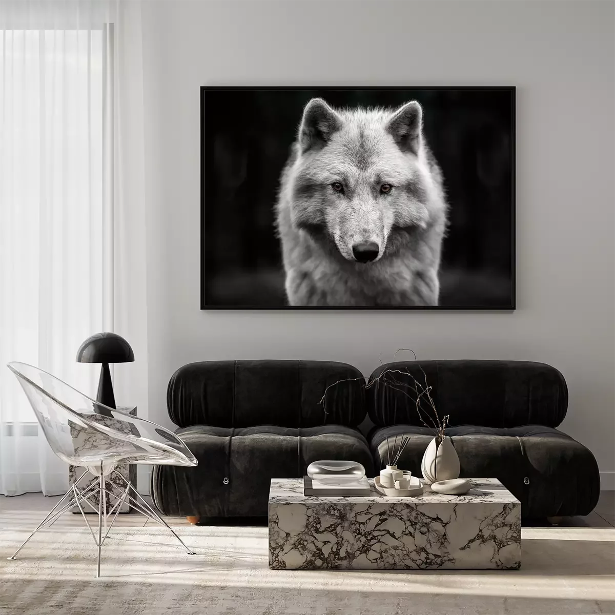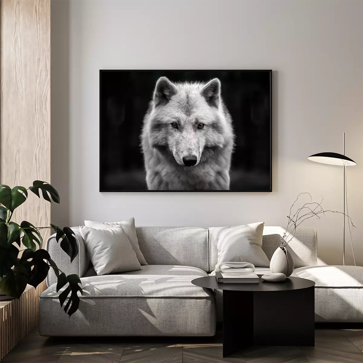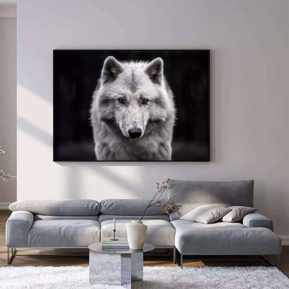 Poster : Loup arctique sur fond sombre