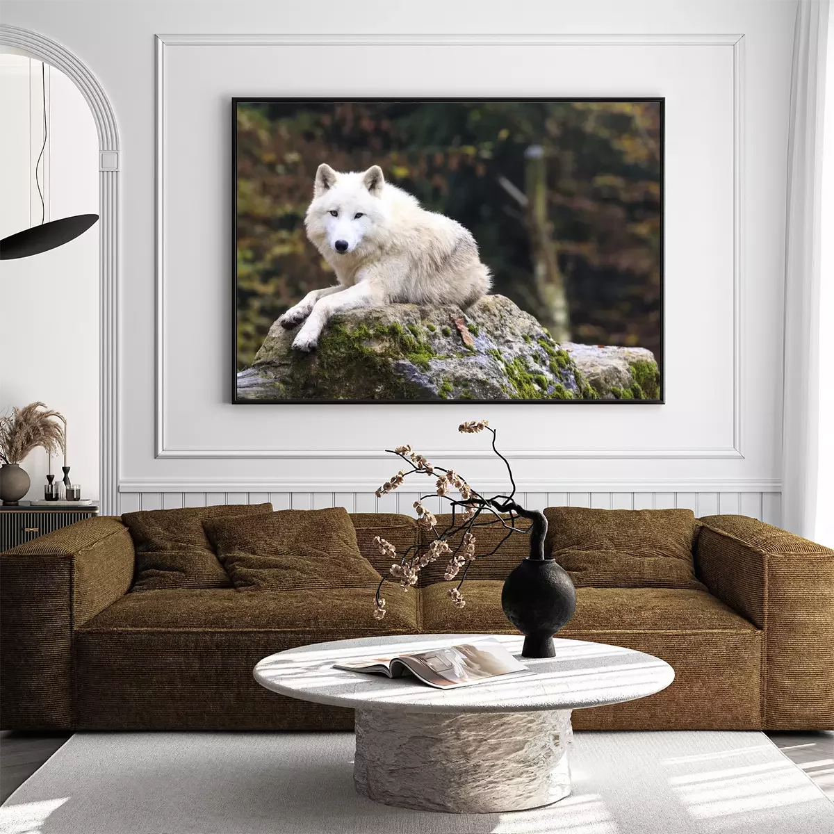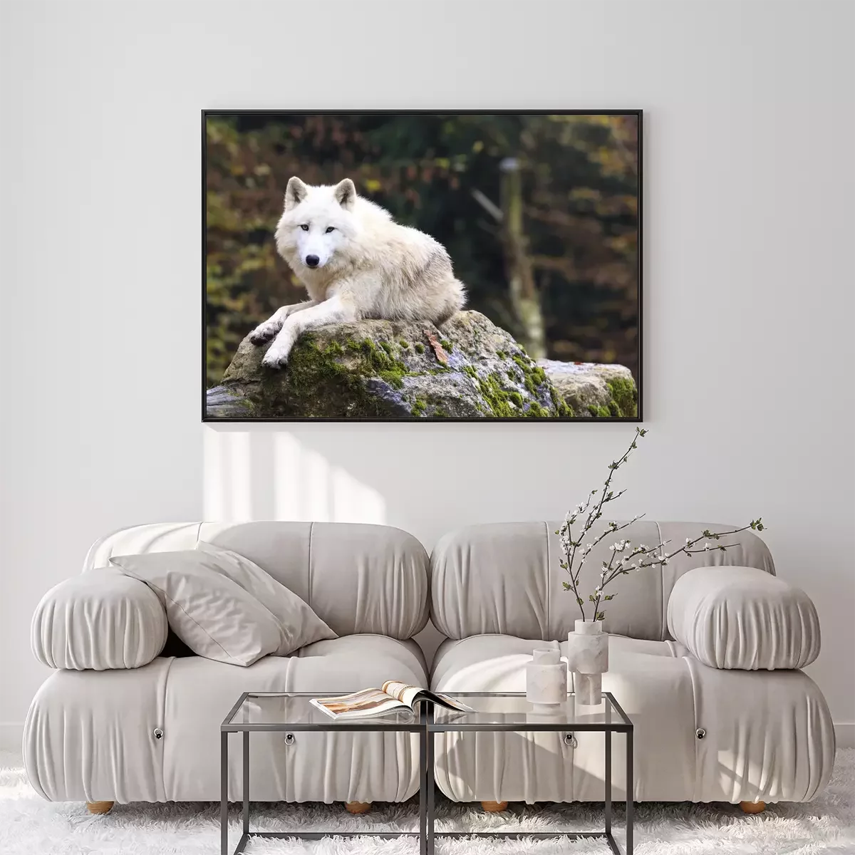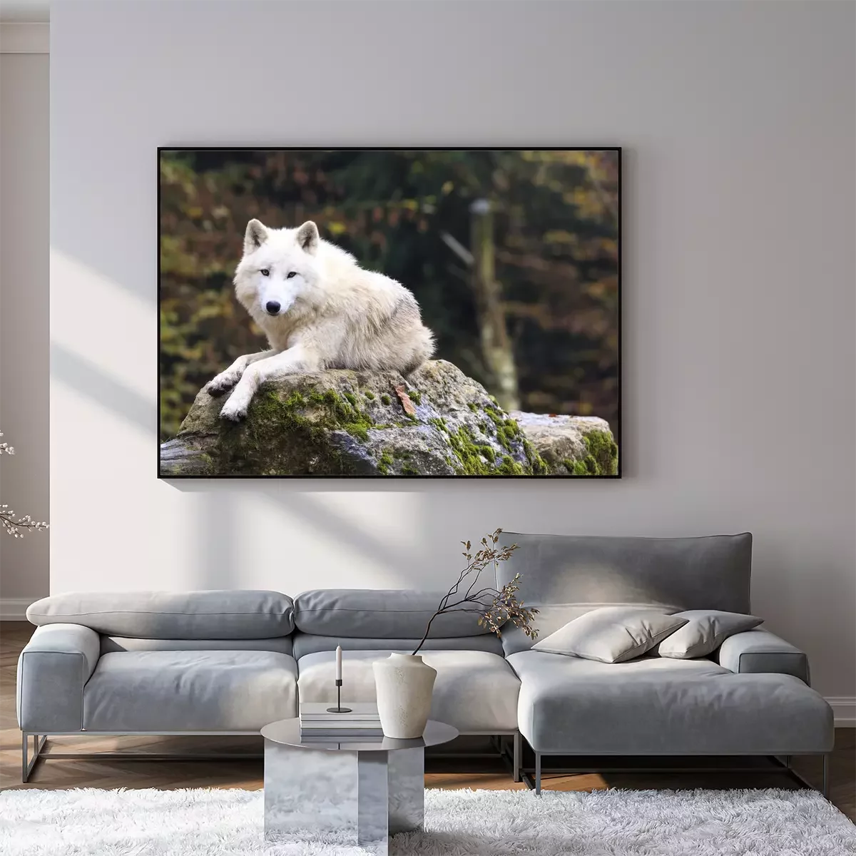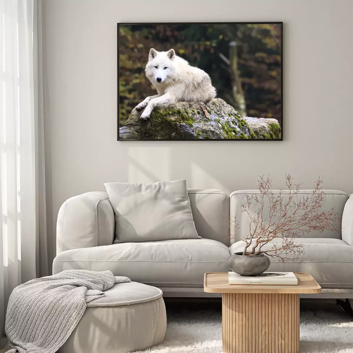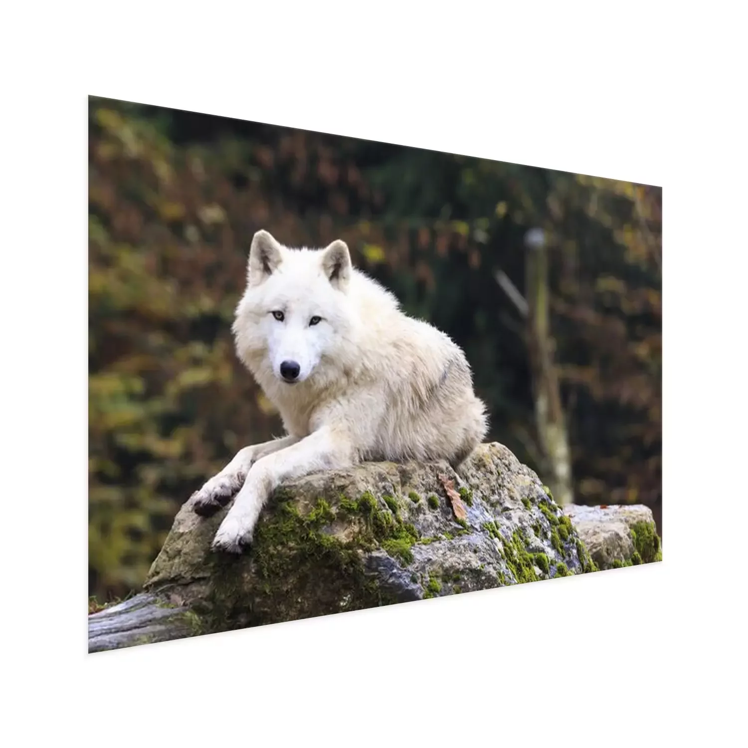 Poster  Loup blanc se reposant sur un rocher