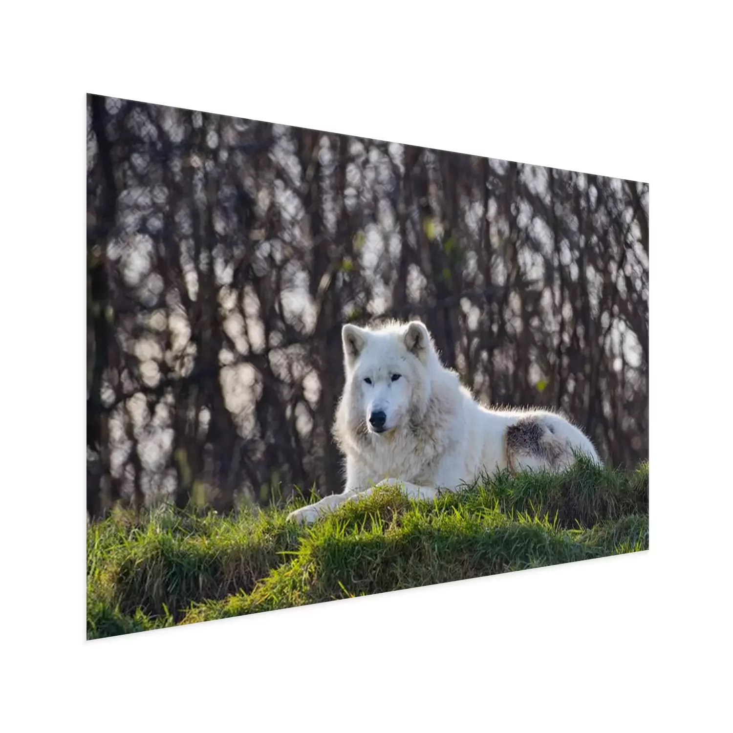 Poster : Loup blanc sur l'herbe