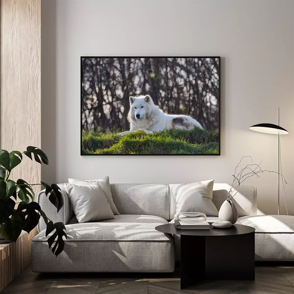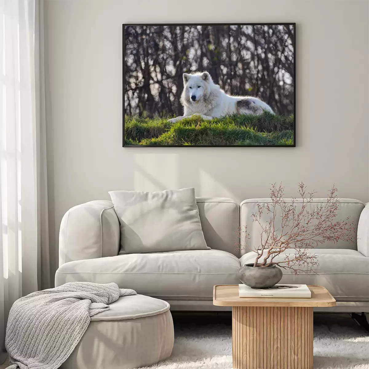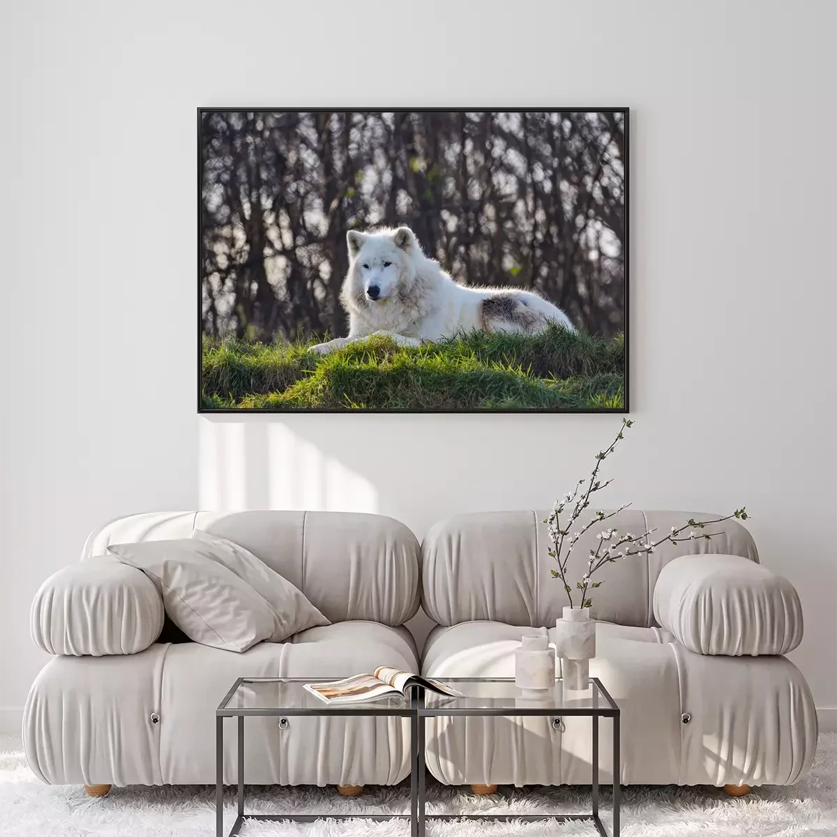 Poster  Loup blanc sur l'herbe