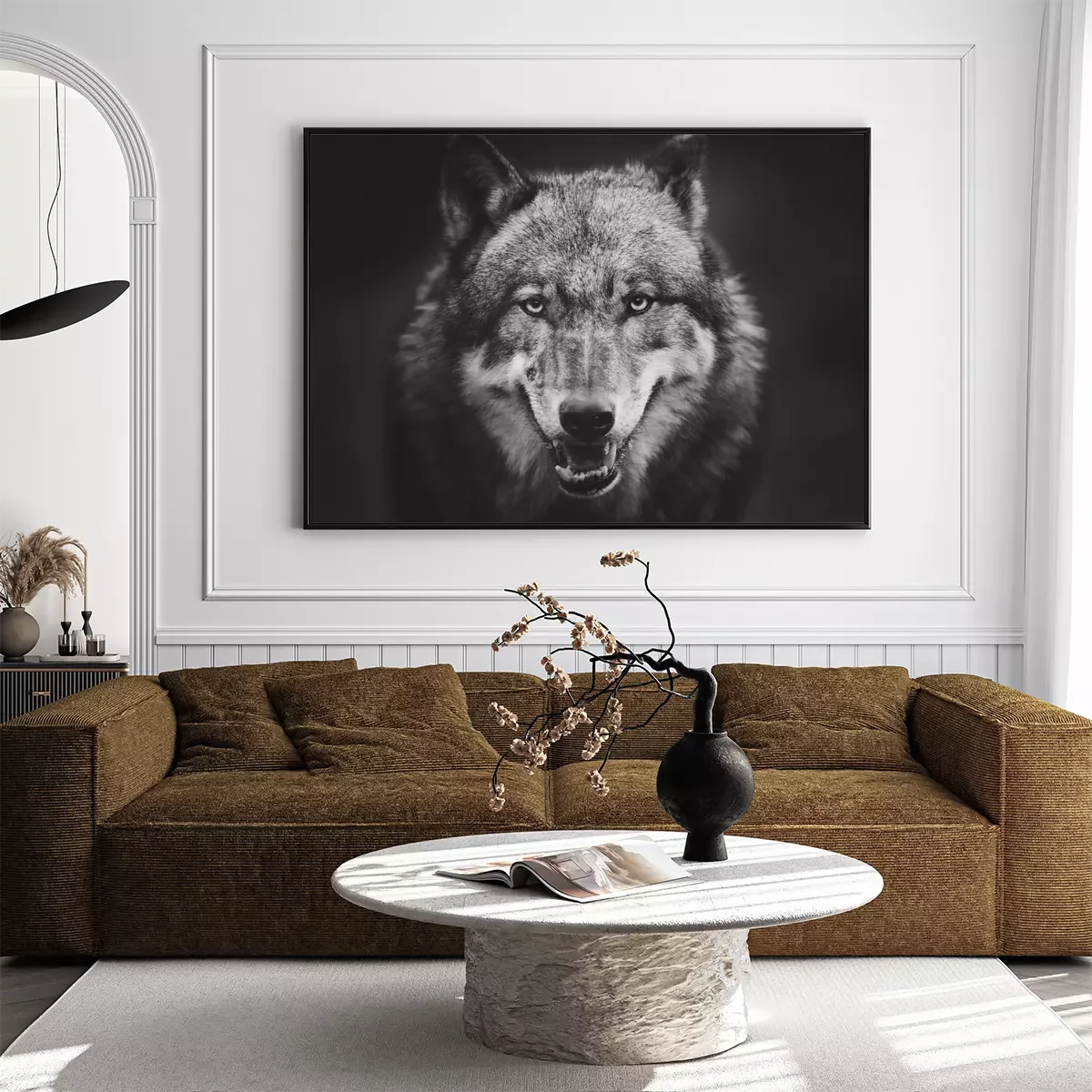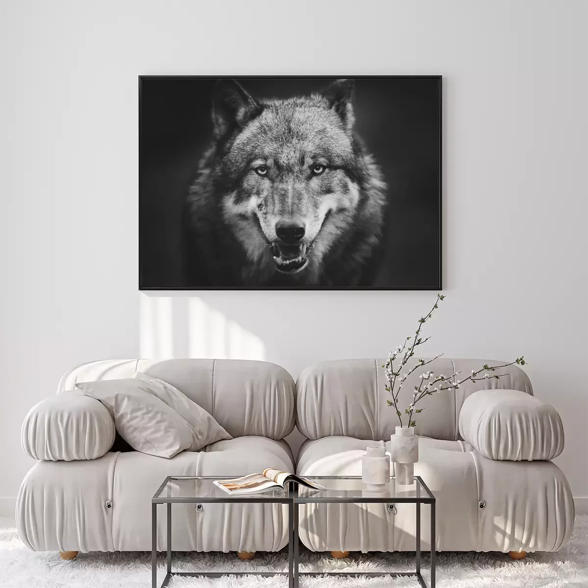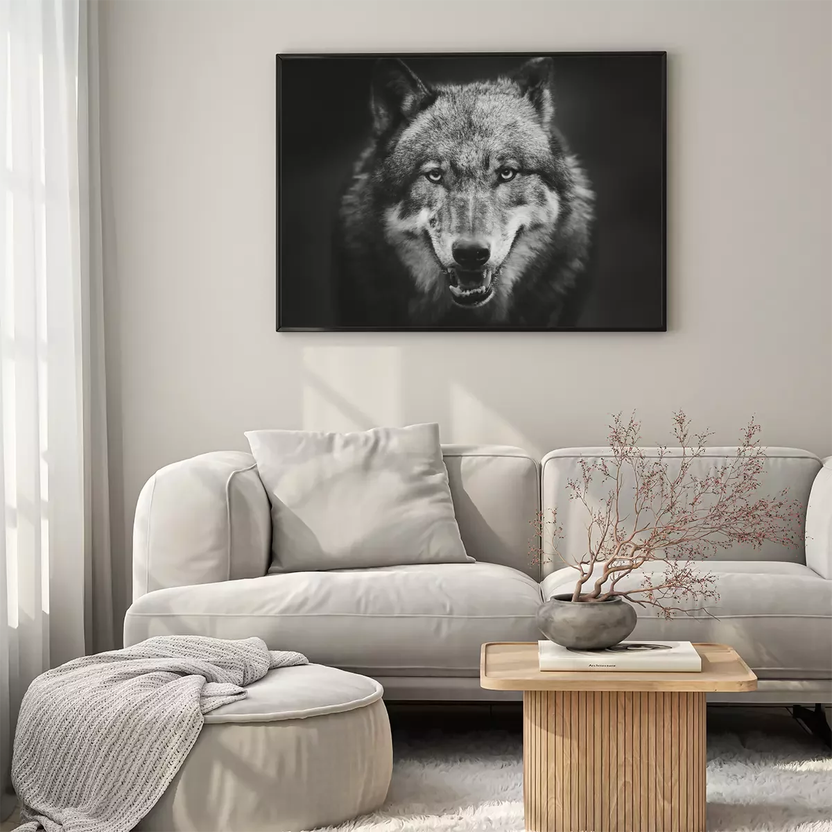 Poster  Loup gris sur fond sombre