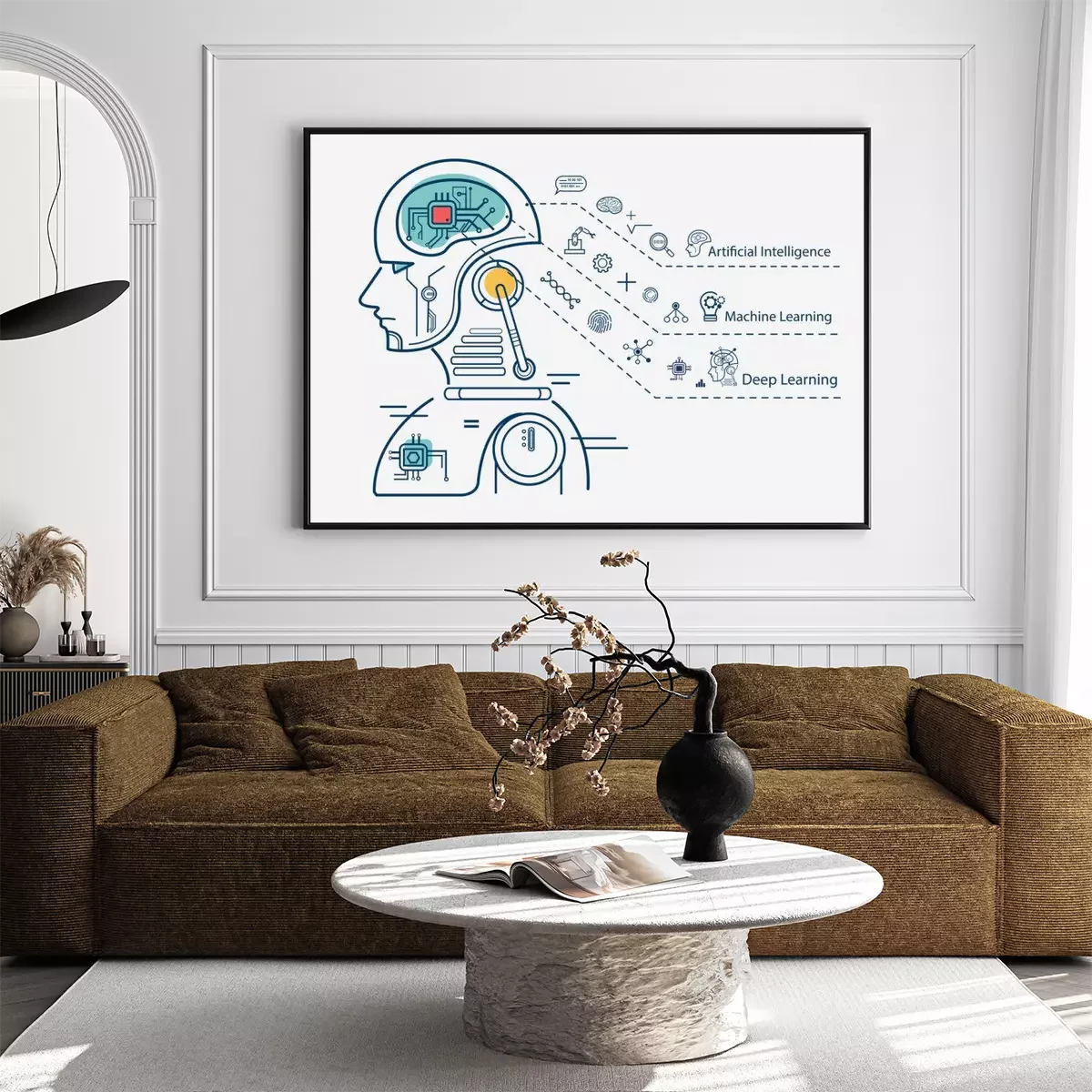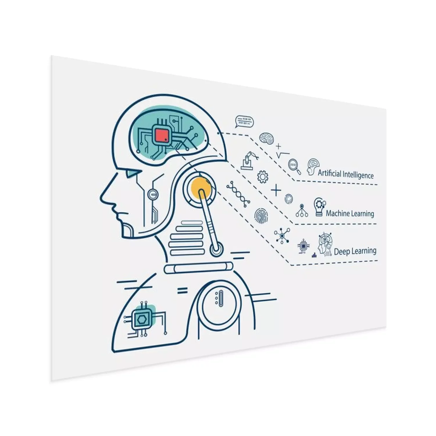 Poster  Machine learning 3 étape infographique, intelligence artificielle, Machine learning et Deep learning vecteur ligne plate bannière avec des icônes sur fond blanc.