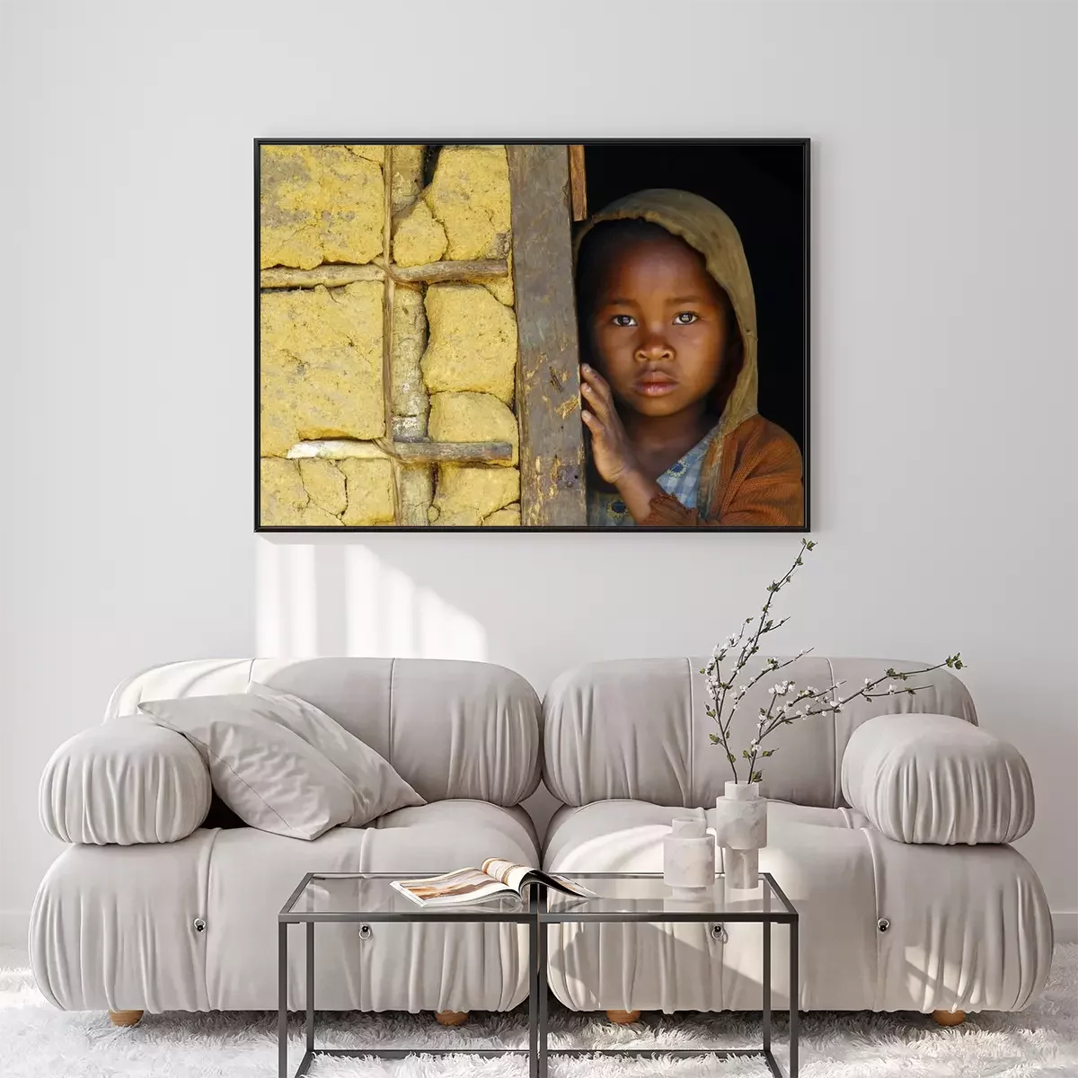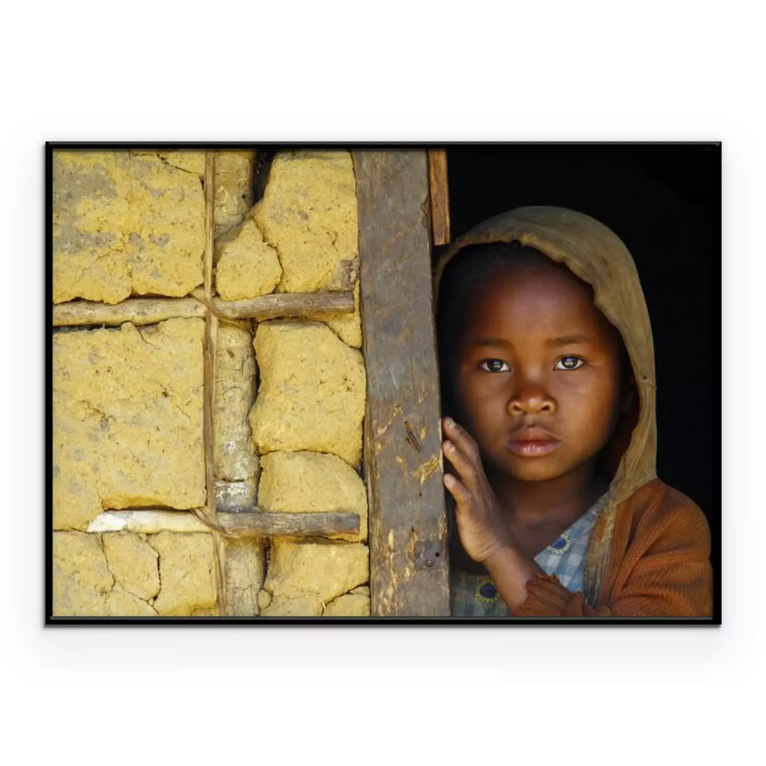 Poster  Madagascar-timide et pauvre fille africaine avec foulard