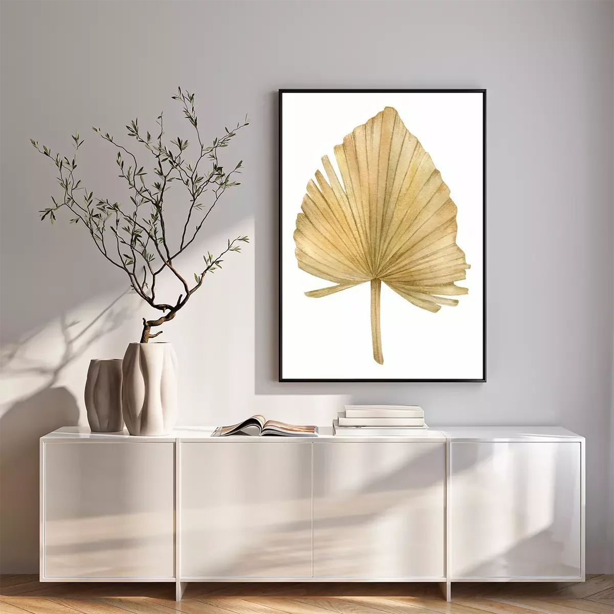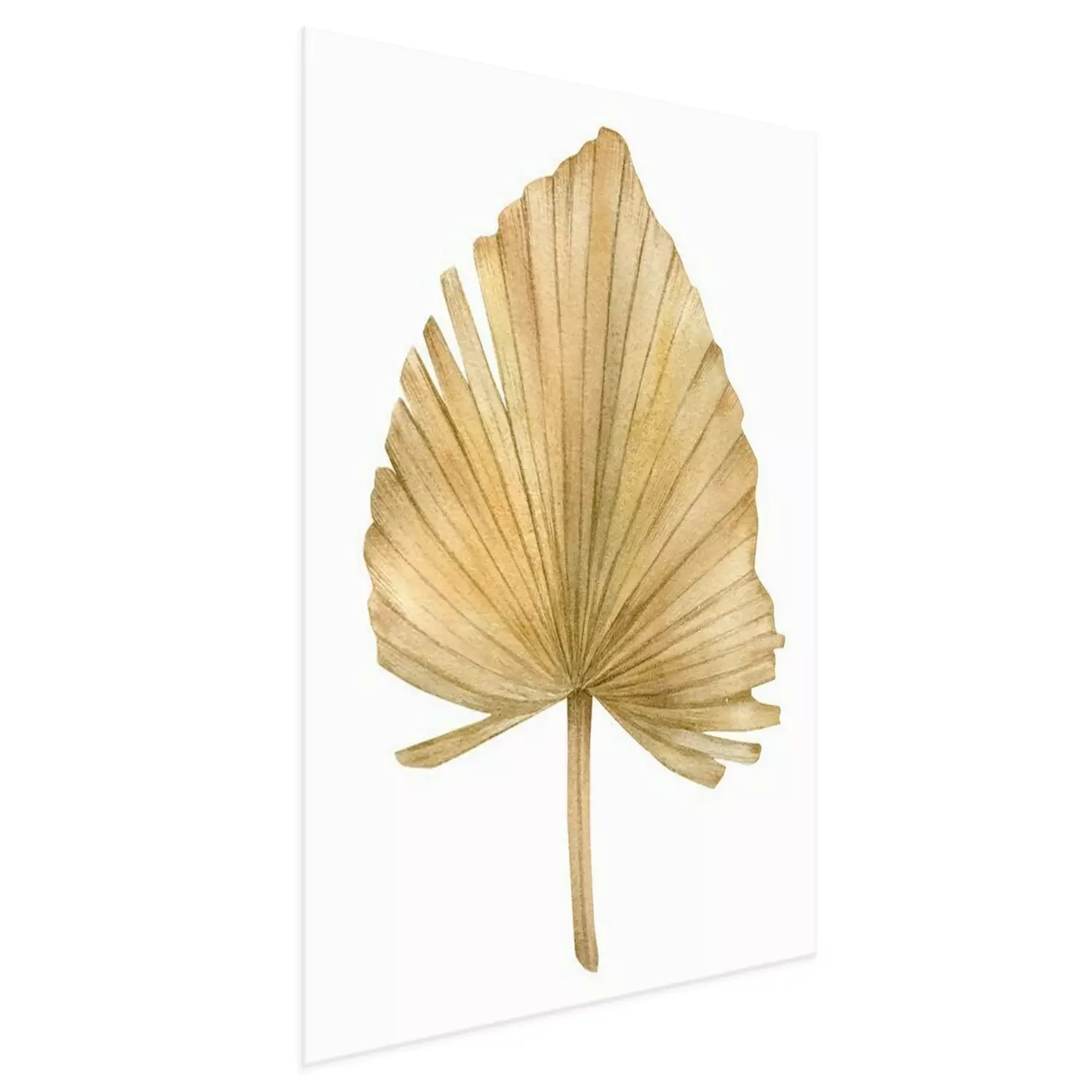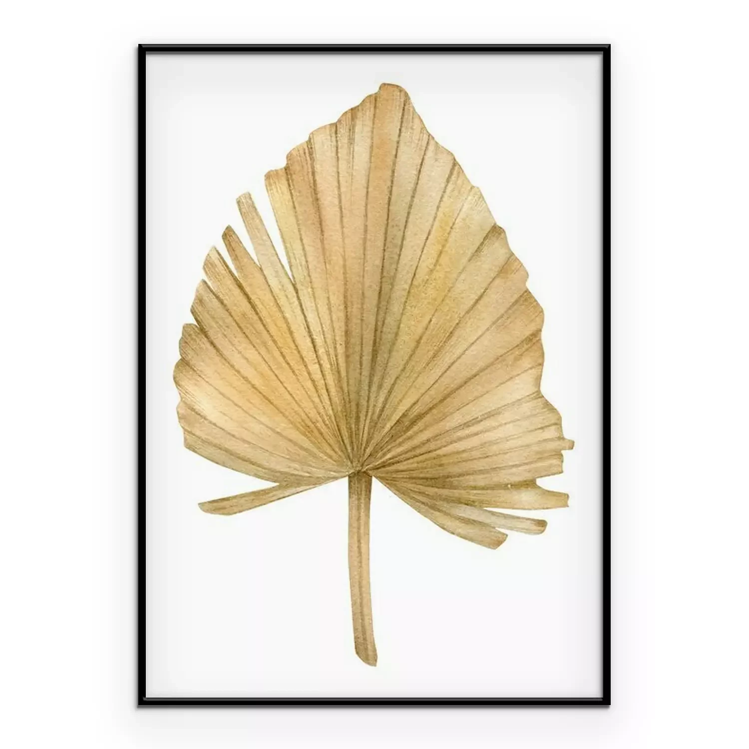 Watercolor golden dried fan palm leaf. Monstera leaf. Exotic beige clipart isolated on the white background. Hand-drawn illustration. California boho style.