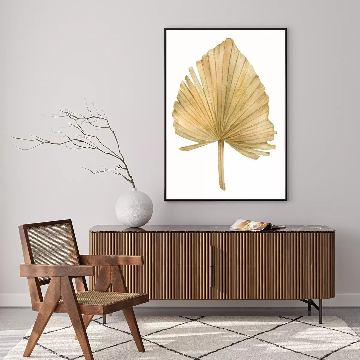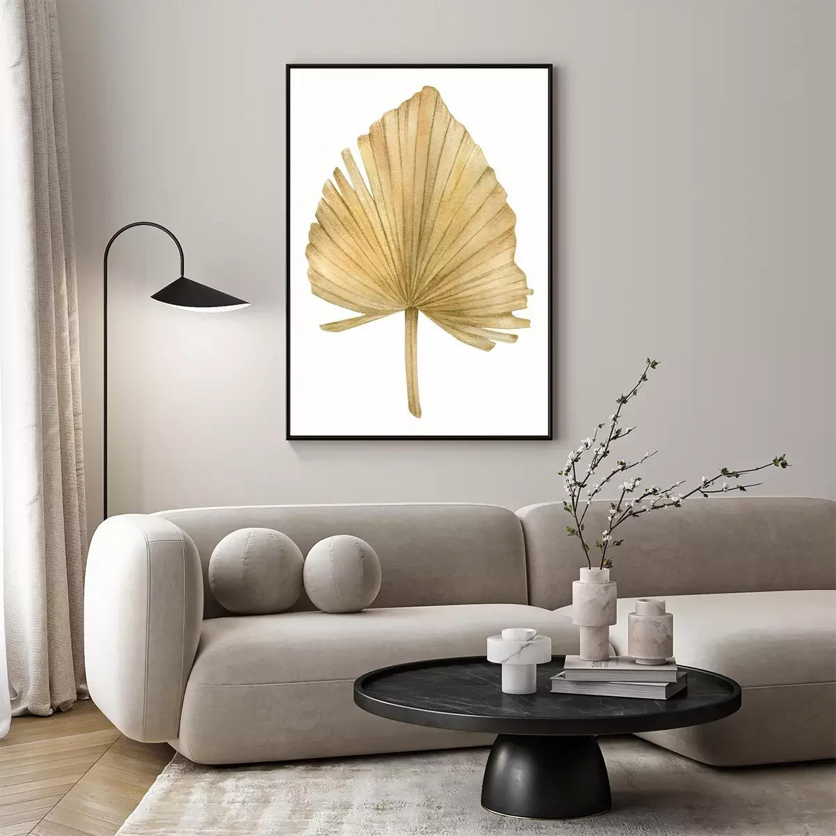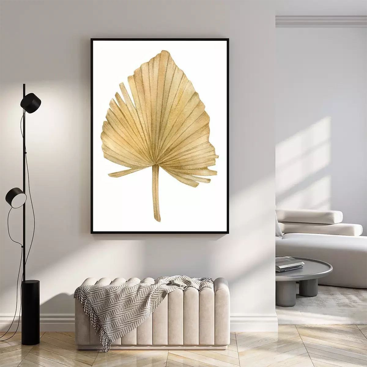 Watercolor golden dried fan palm leaf. Monstera leaf. Exotic beige clipart isolated on the white background. Hand-drawn illustration. California boho style.