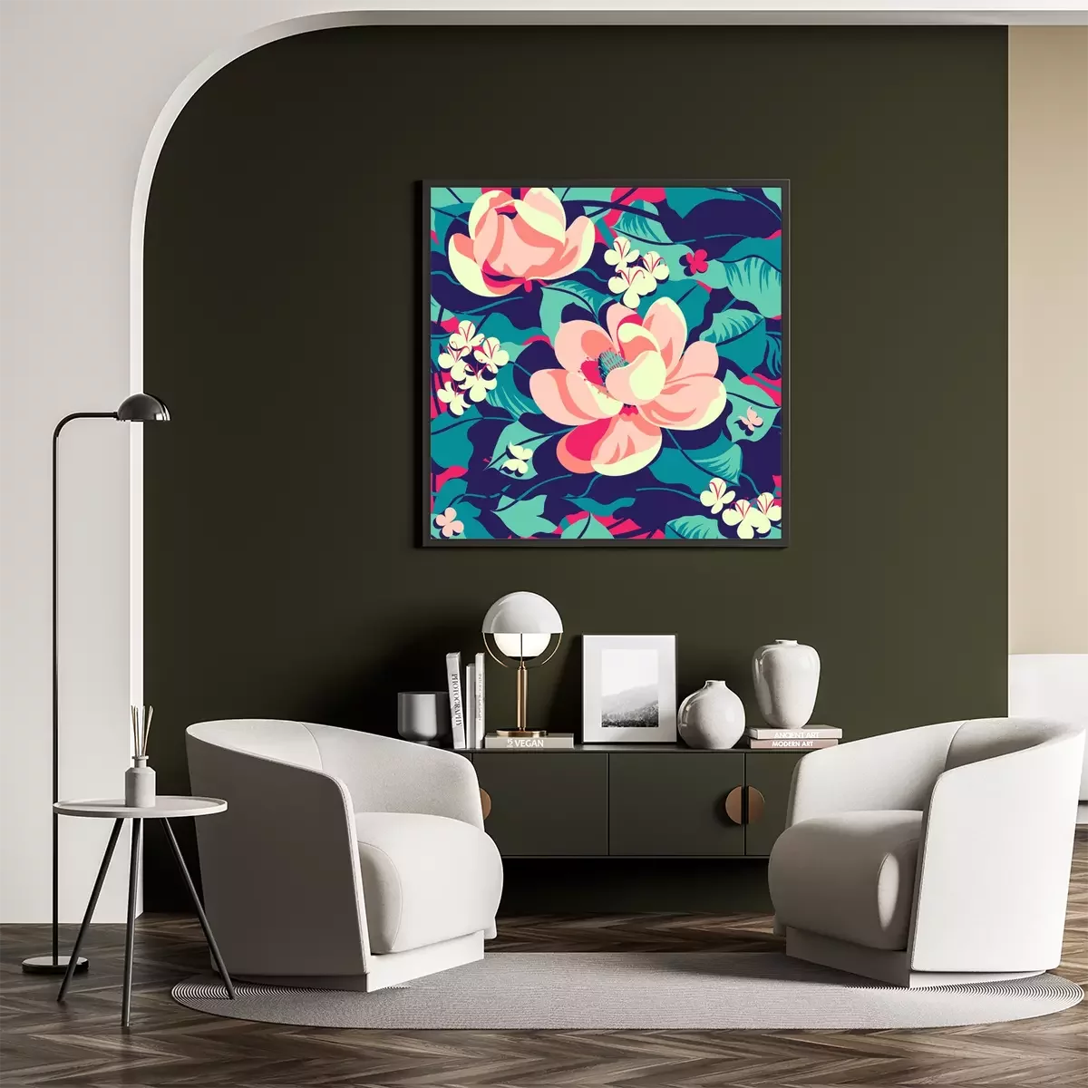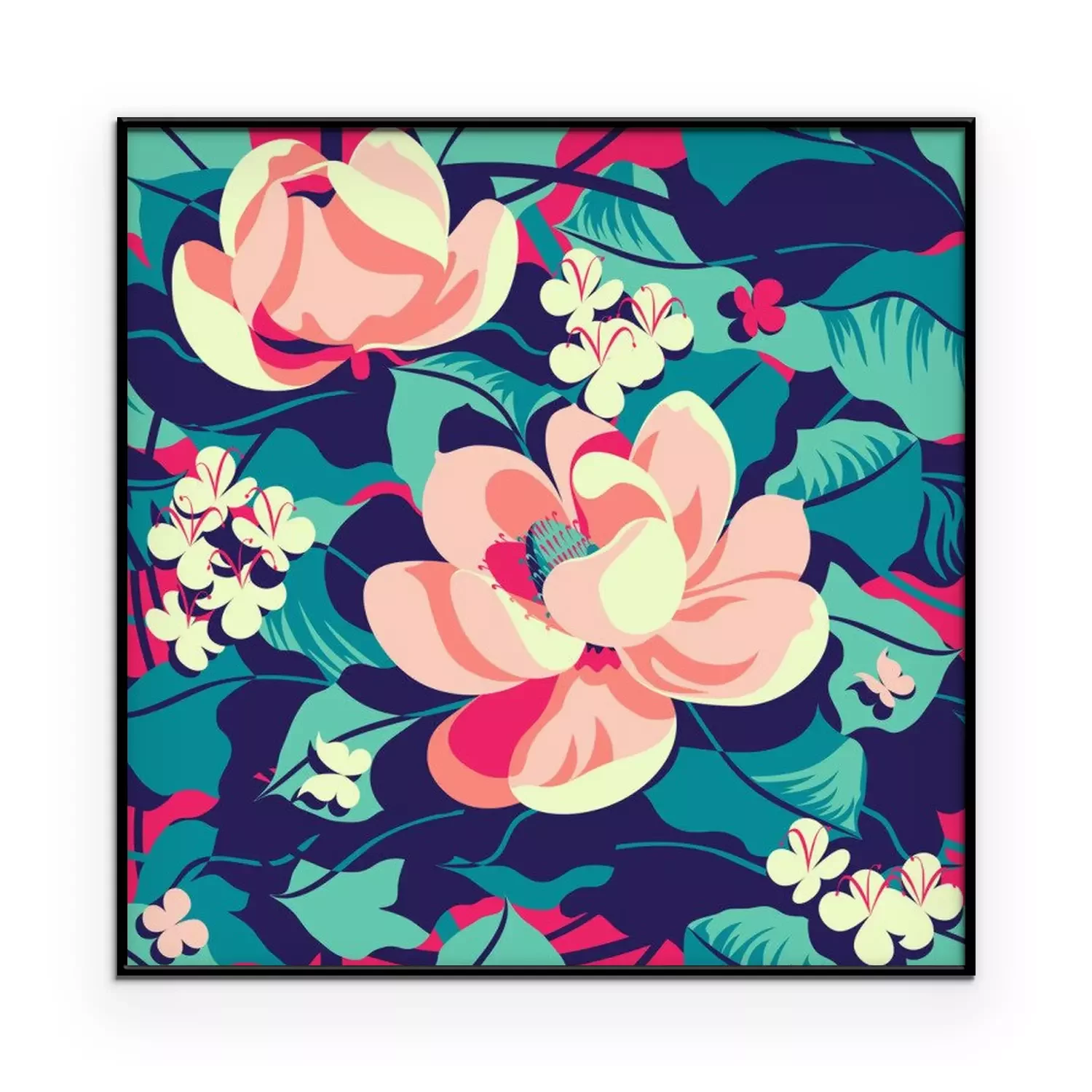 Poster  Magnolias colorés sur fond de feuilles vertes