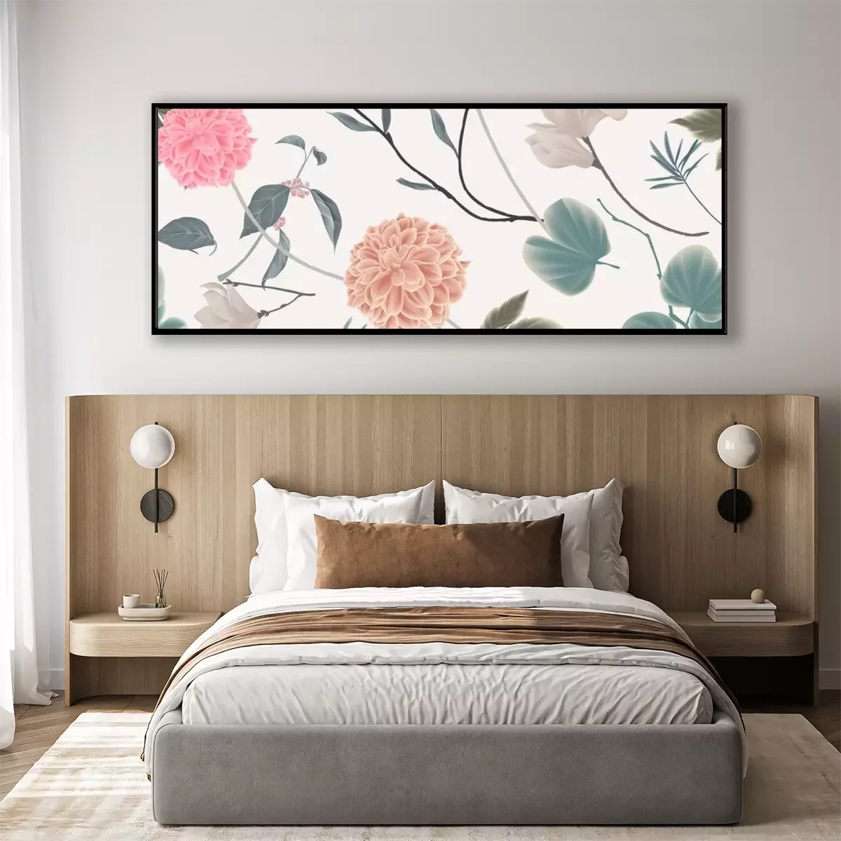 Poster  Magnolias et dahlias parmi les feuilles éparses