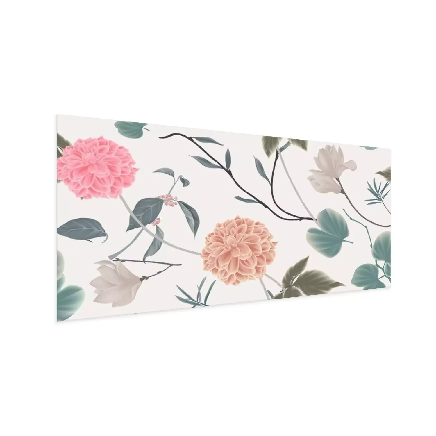 Poster : Magnolias et dahlias parmi les feuilles éparses