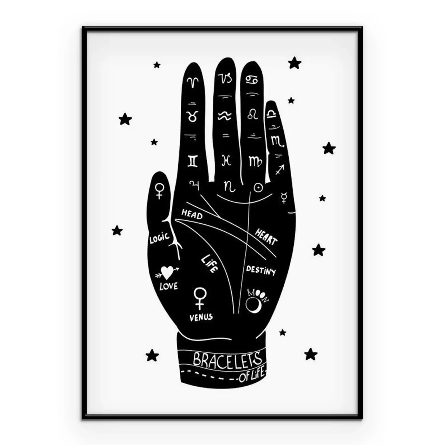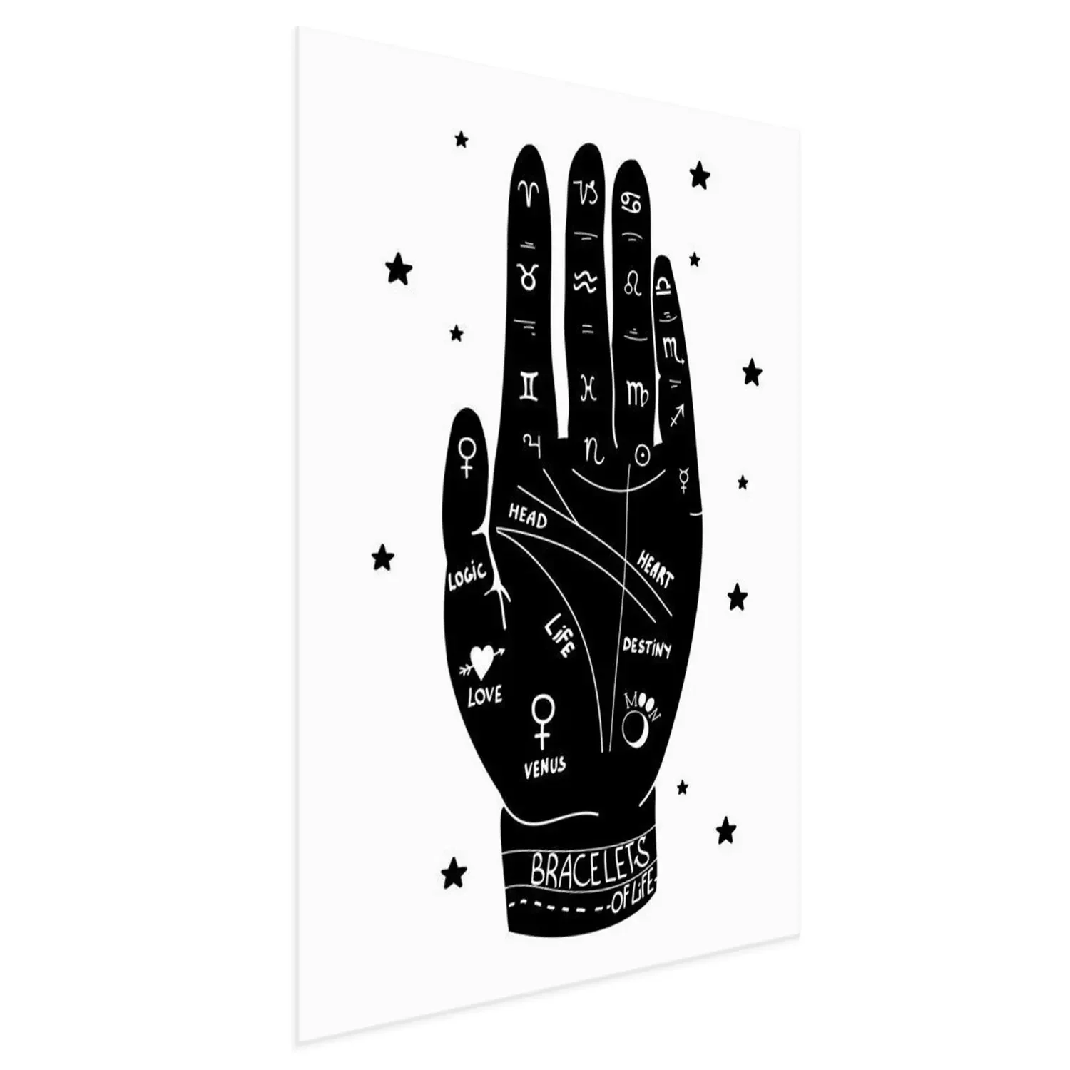 Poster  Main humaine et lignes utilisées pour la divination