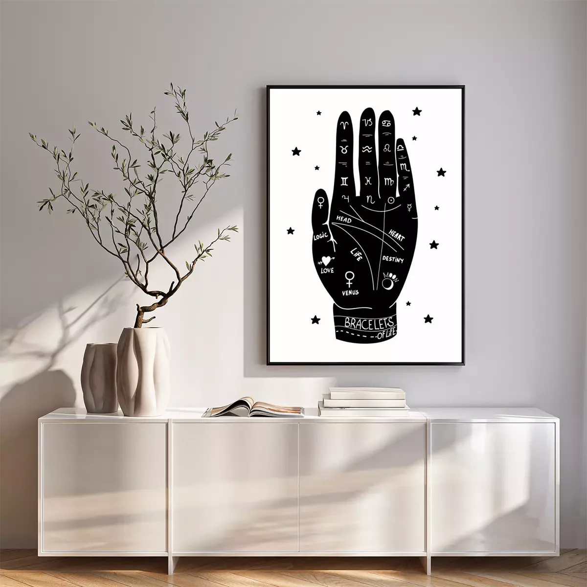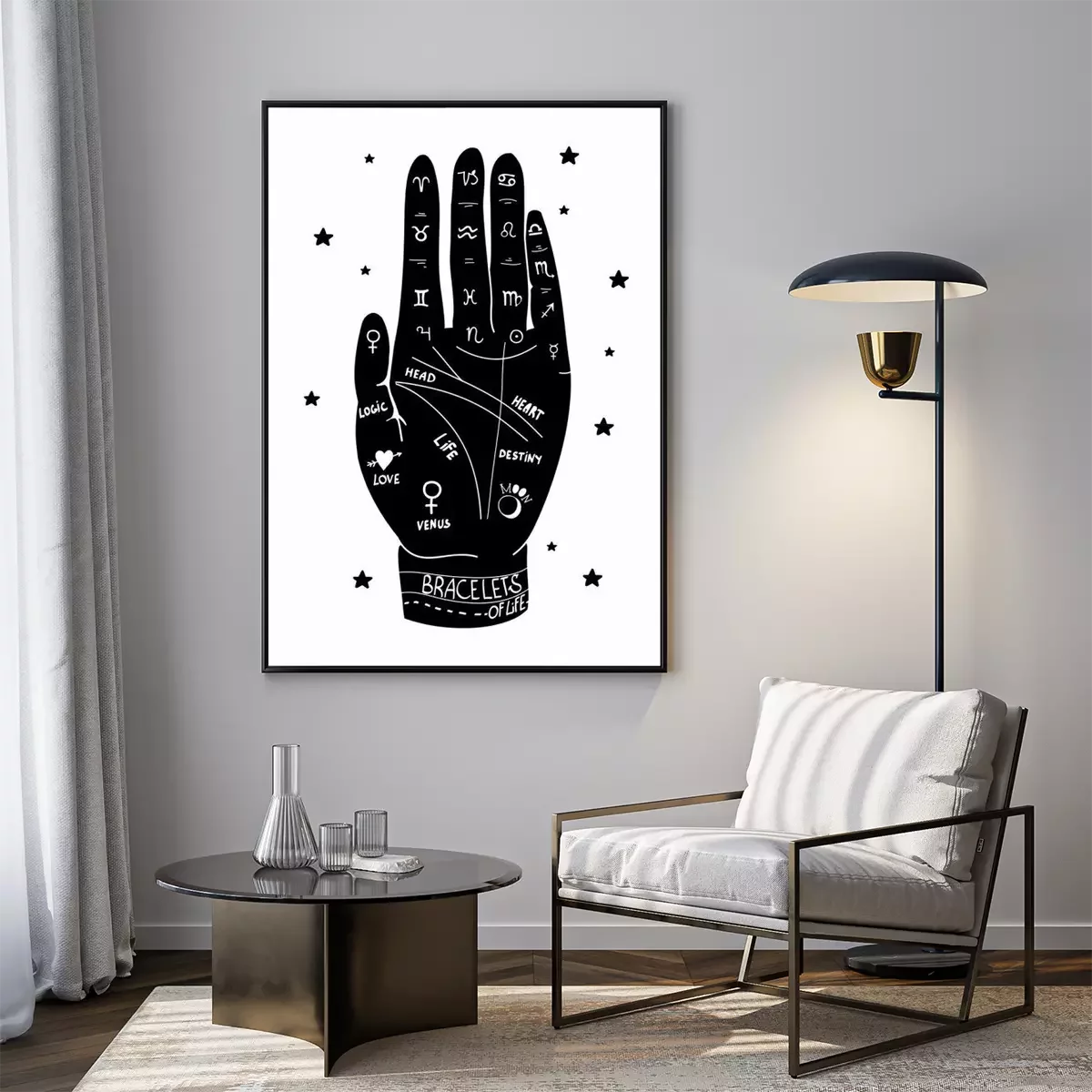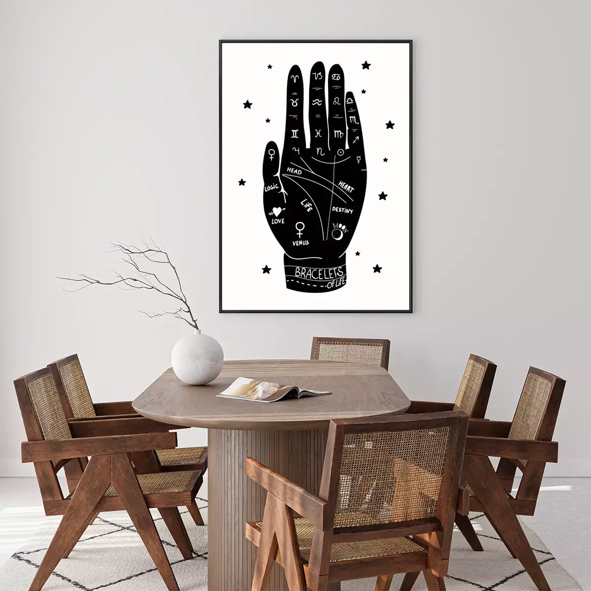 Poster : Main humaine et lignes utilisées pour la divination