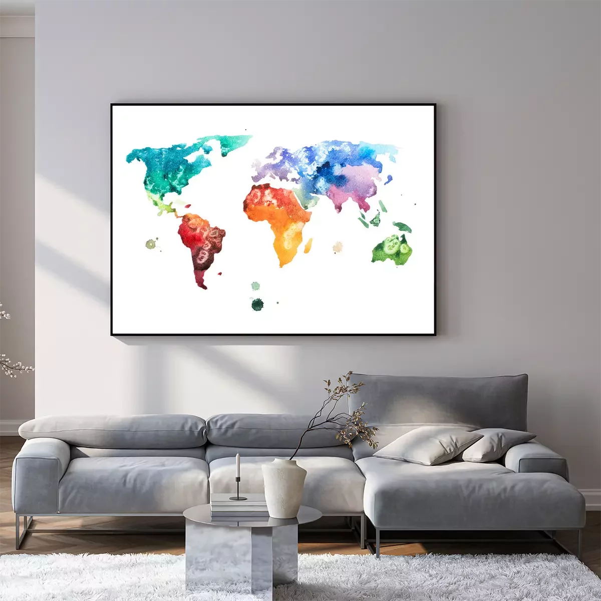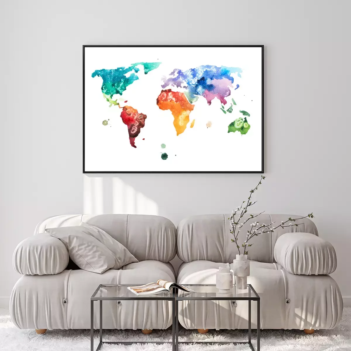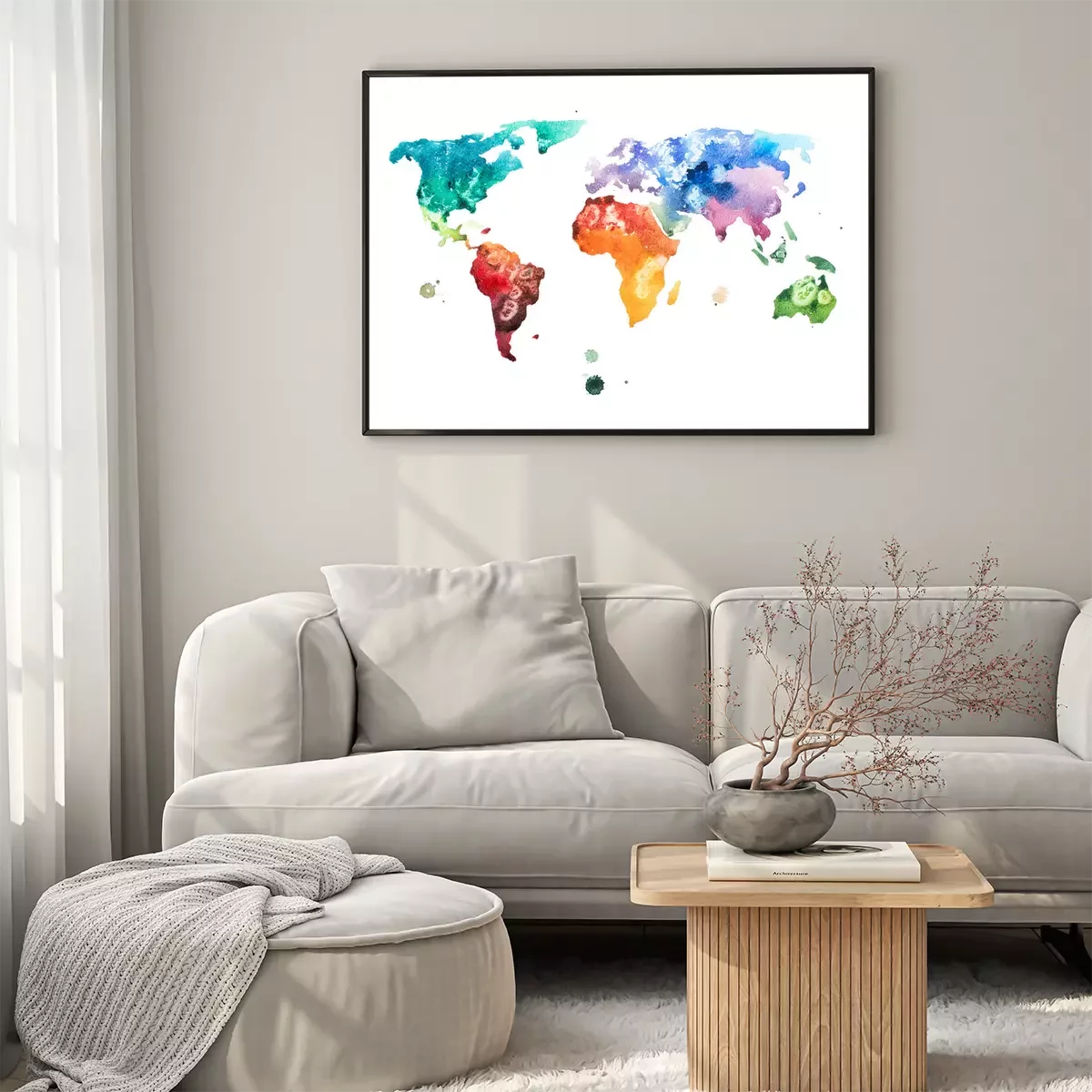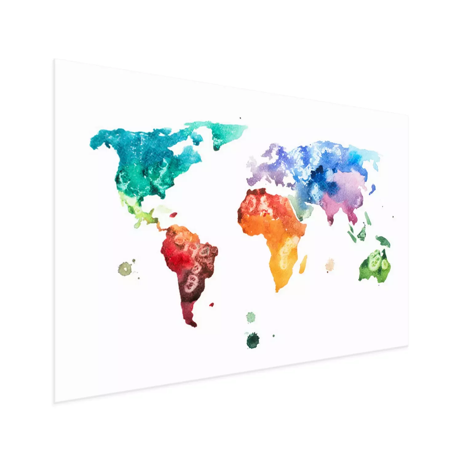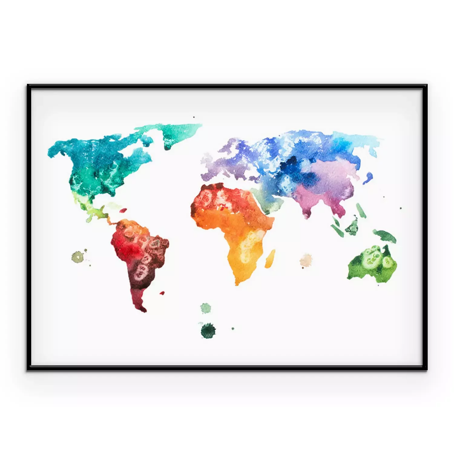 Poster : Main, tiré, aquarelle, mondiale, carte, aquarelle, illustration.