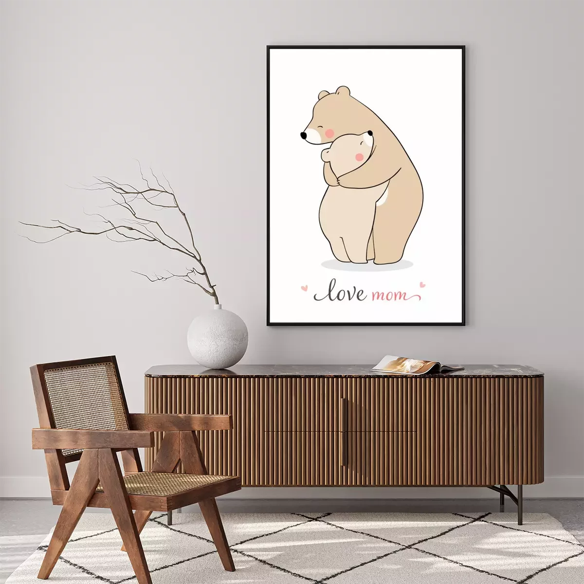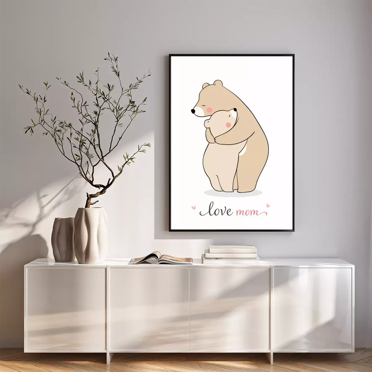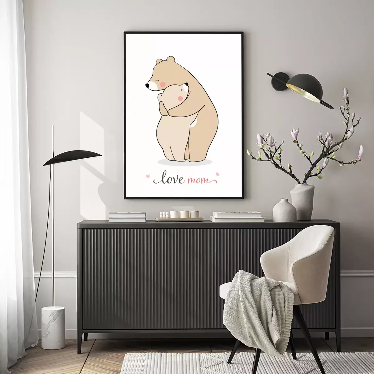 Poster  Maman ours en peluche et bébé ours en peluche dans une étreinte