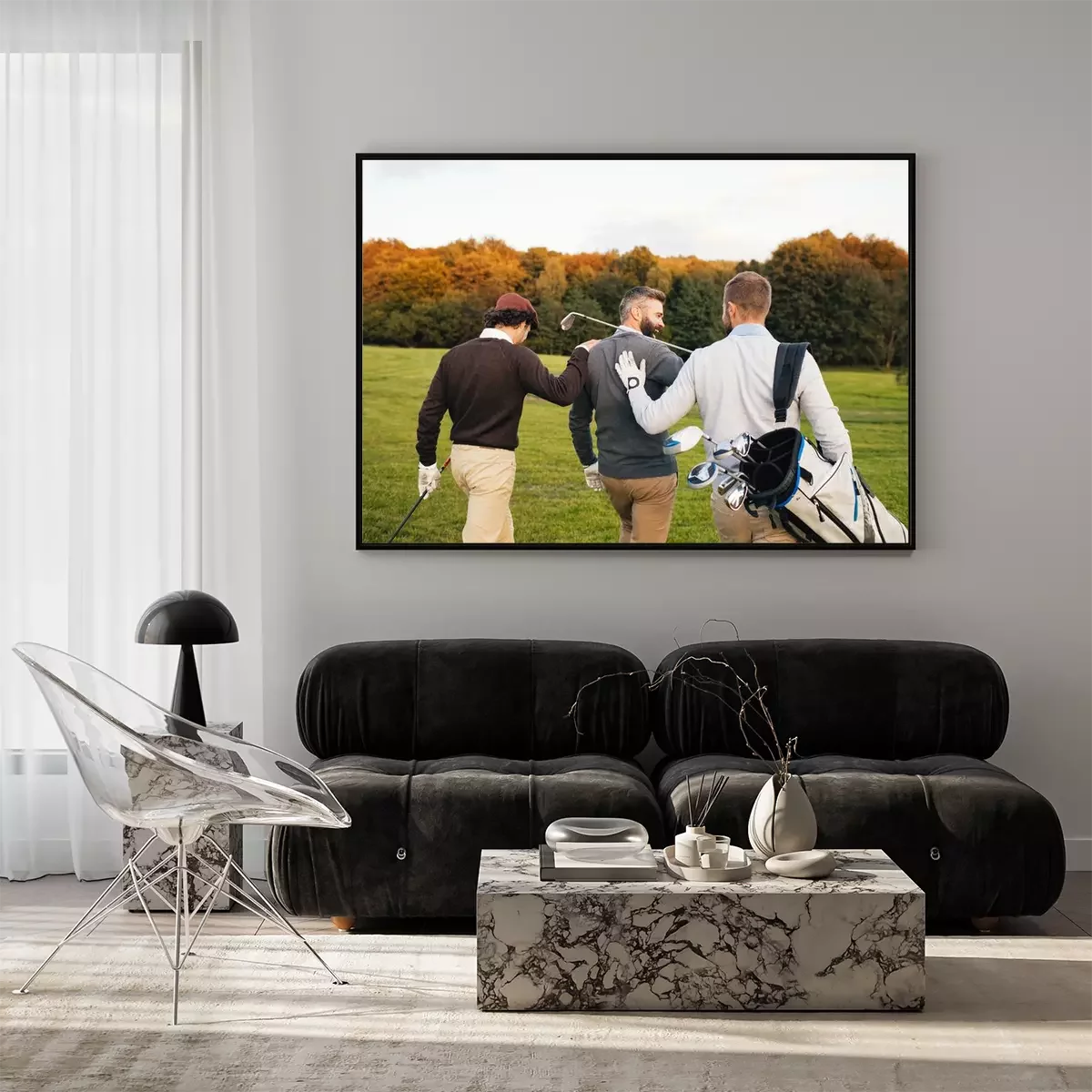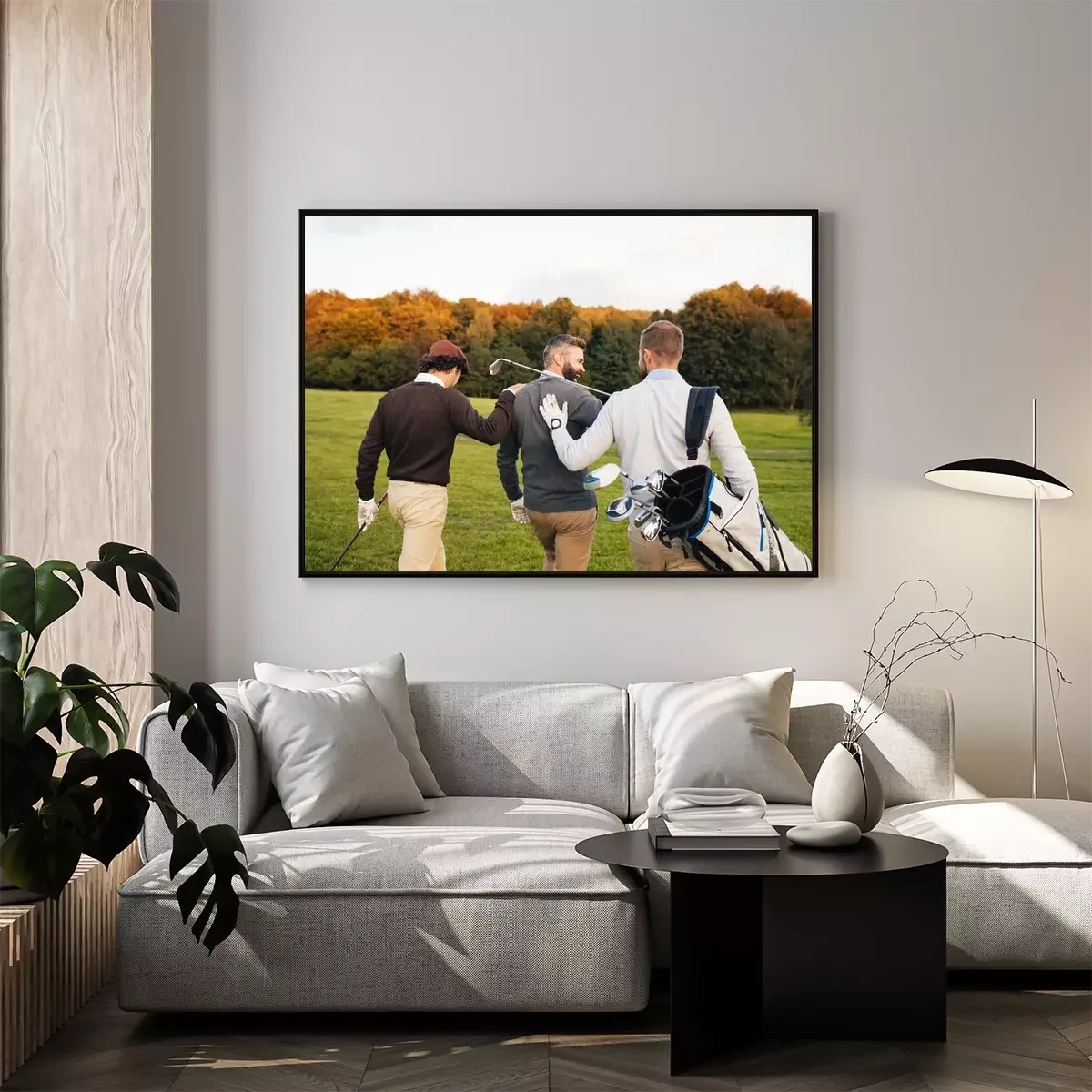 Poster : Mans jouant au golf sur un terrain de golf au soleil