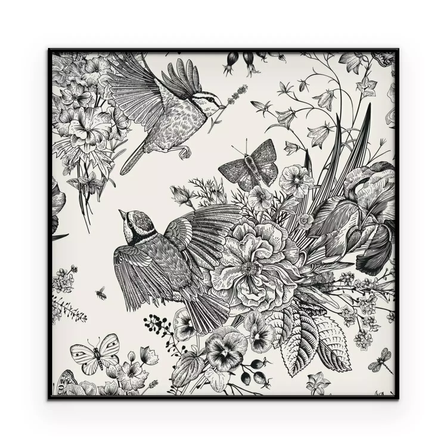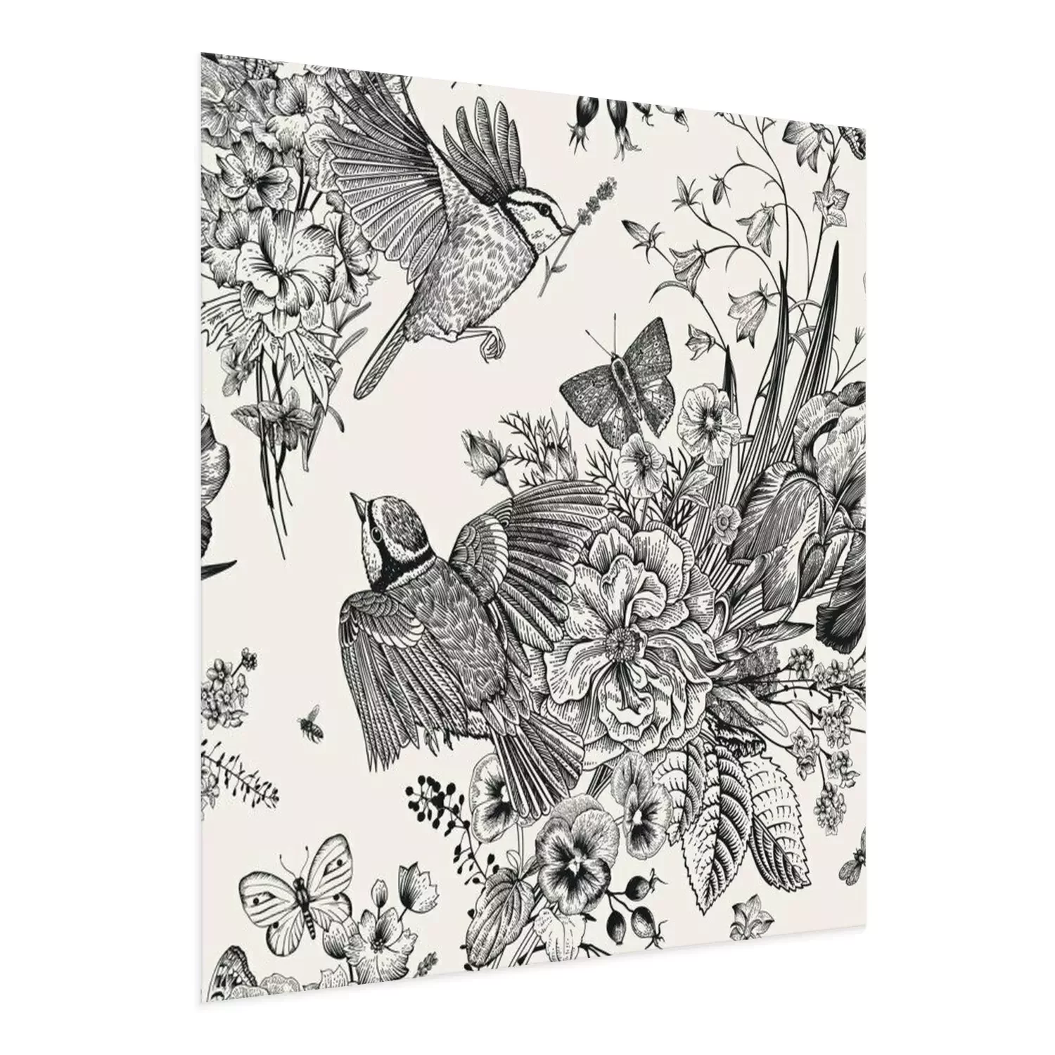 Poster  Mésange et bouquets de fleurs