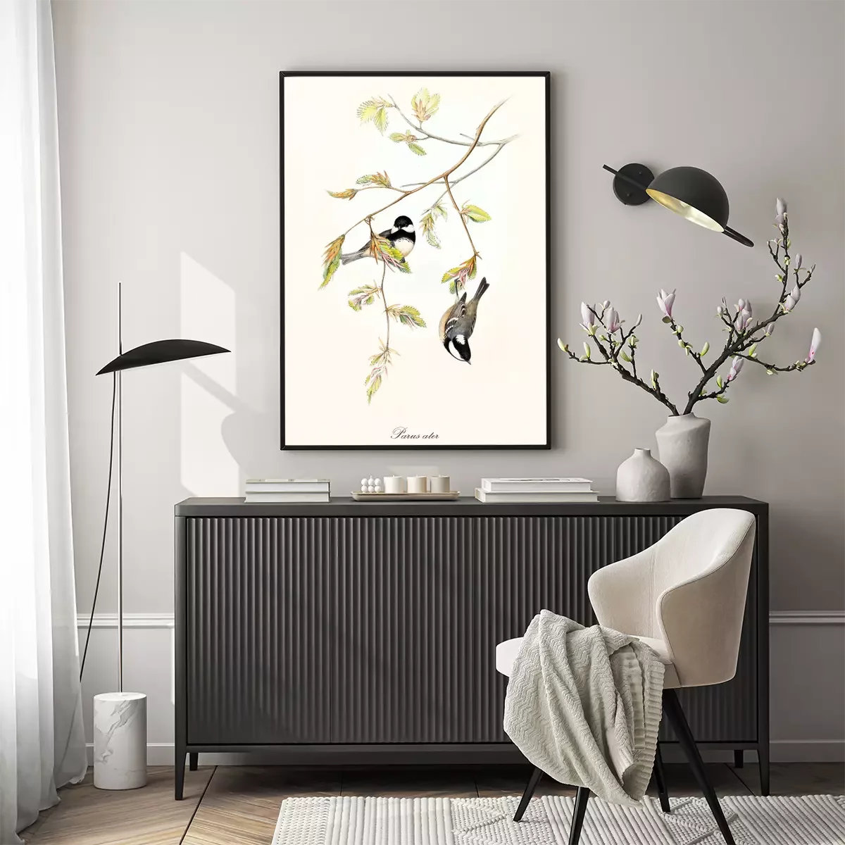 Poster : Mésange sur des branches d'arbres