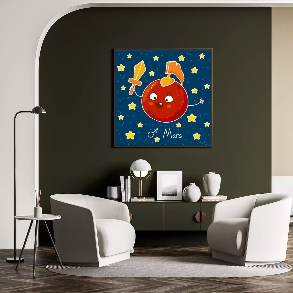 Poster  Mignon, bande dessinée, mars, espace, fond