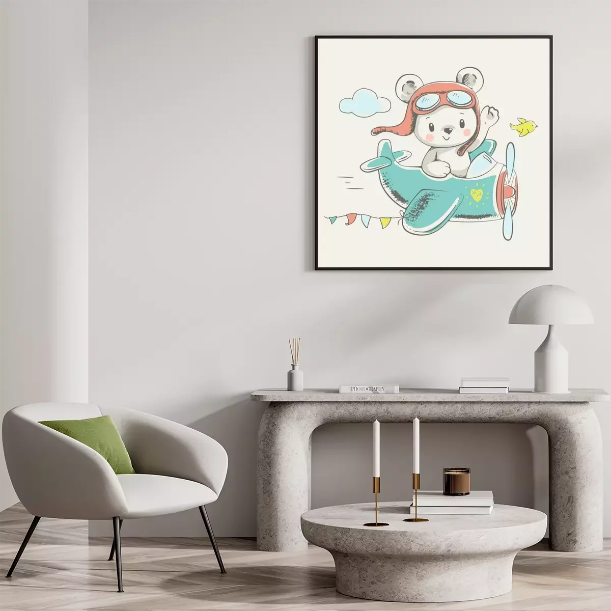 Poster  Mignon, peu, ours, voler, plan, dessin animé, main, dessiné, Peut être utilisé pour l'impression de t-shirt de bébé, la conception d'impression de mode, les enfants portent, salutation de fête de nais