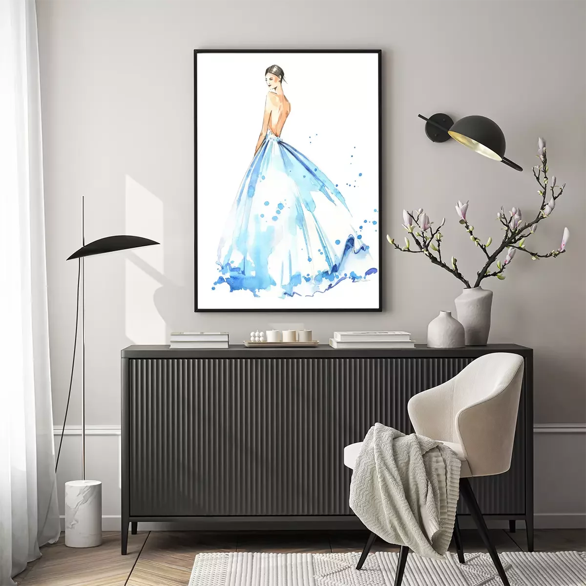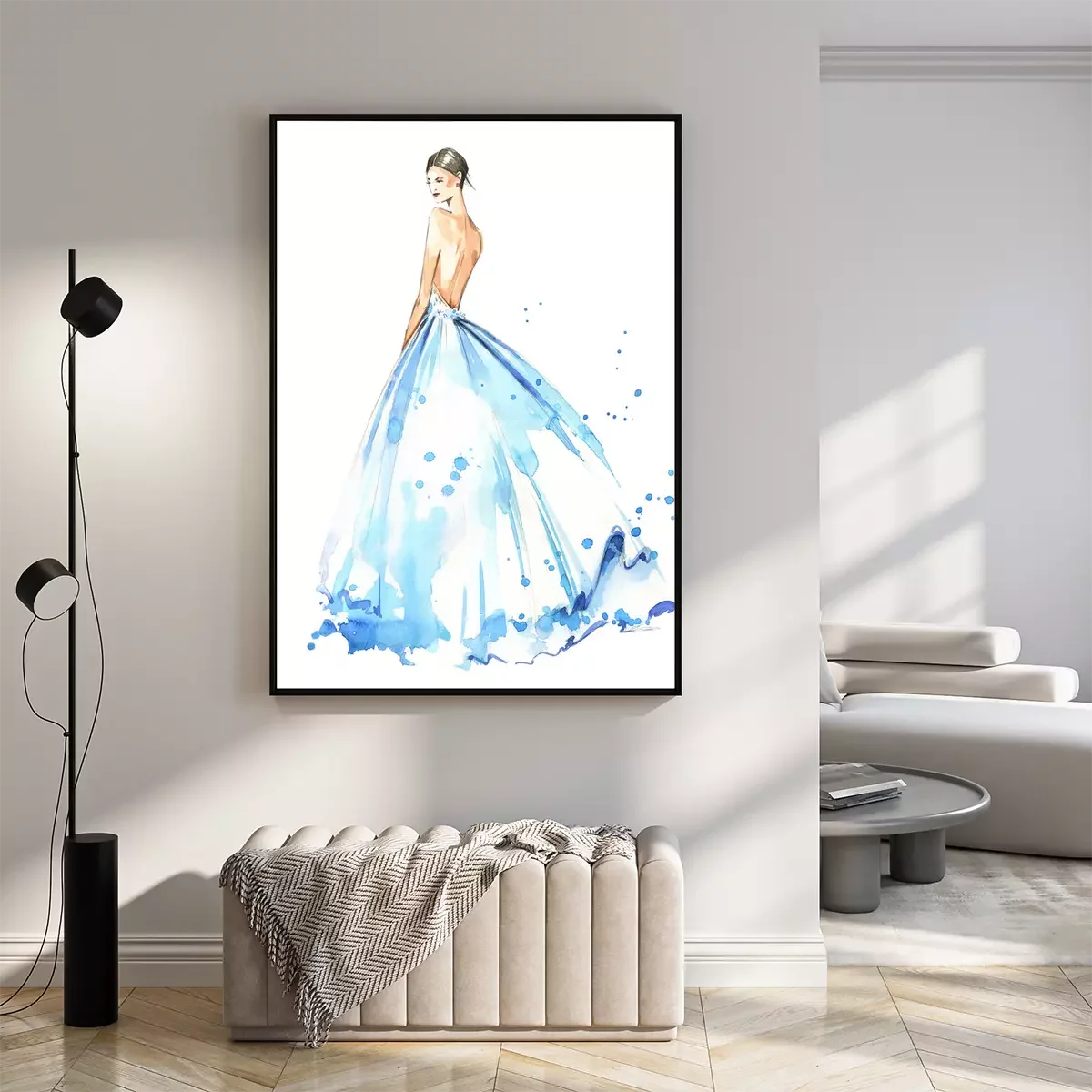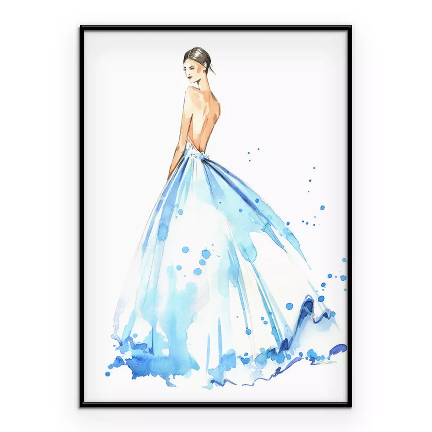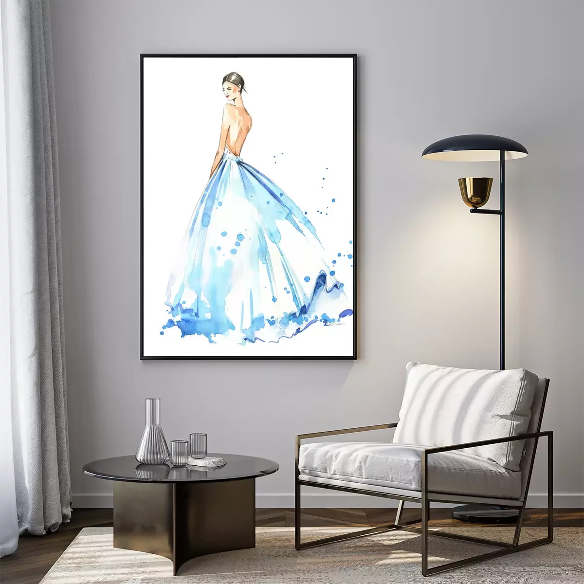Young woman wearing long evening dress, bride. Watercolor illustration